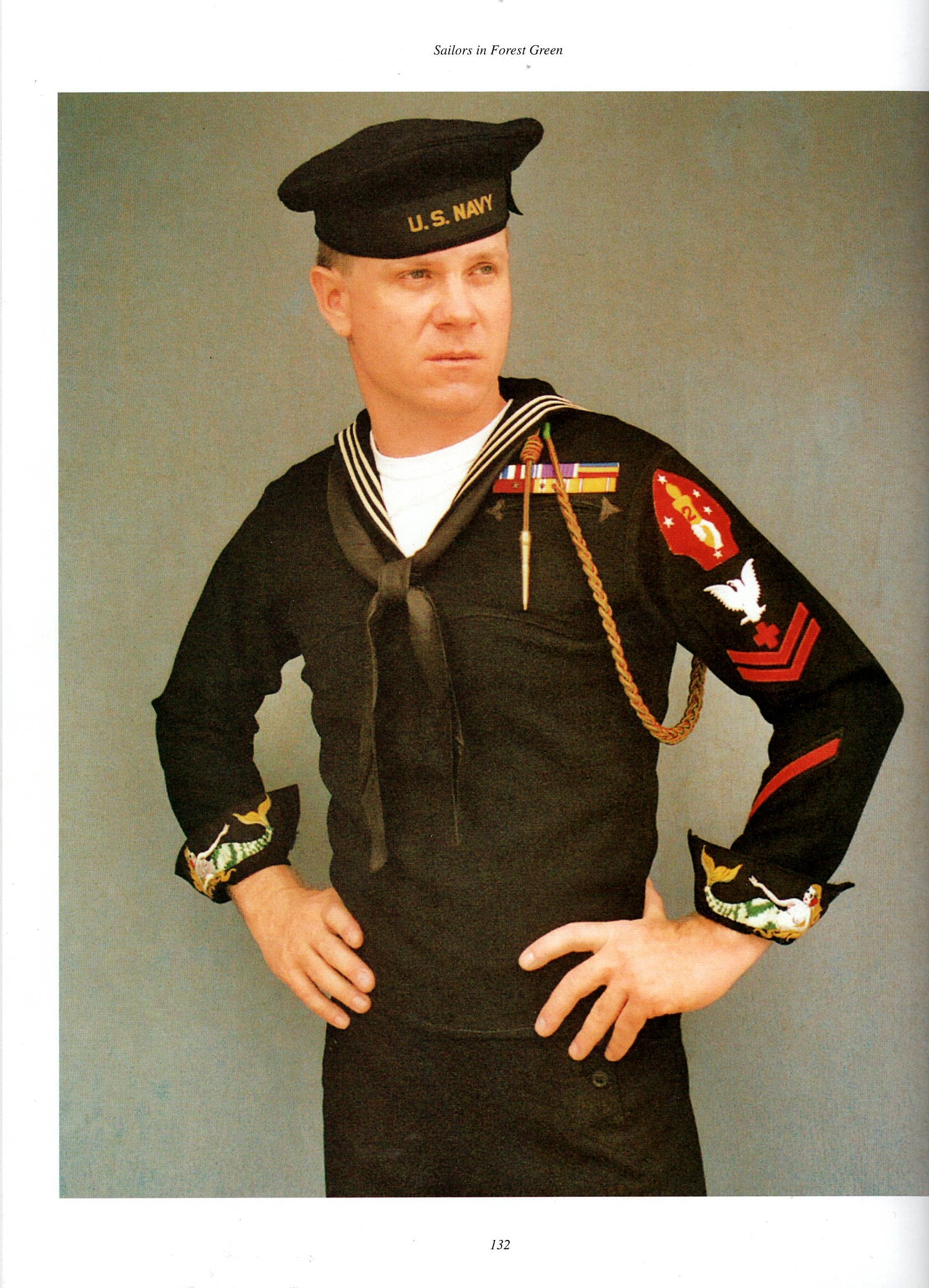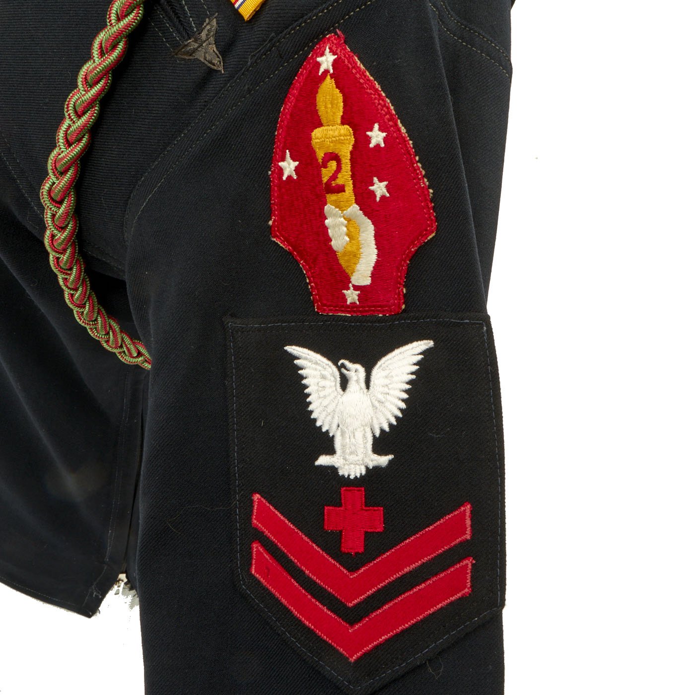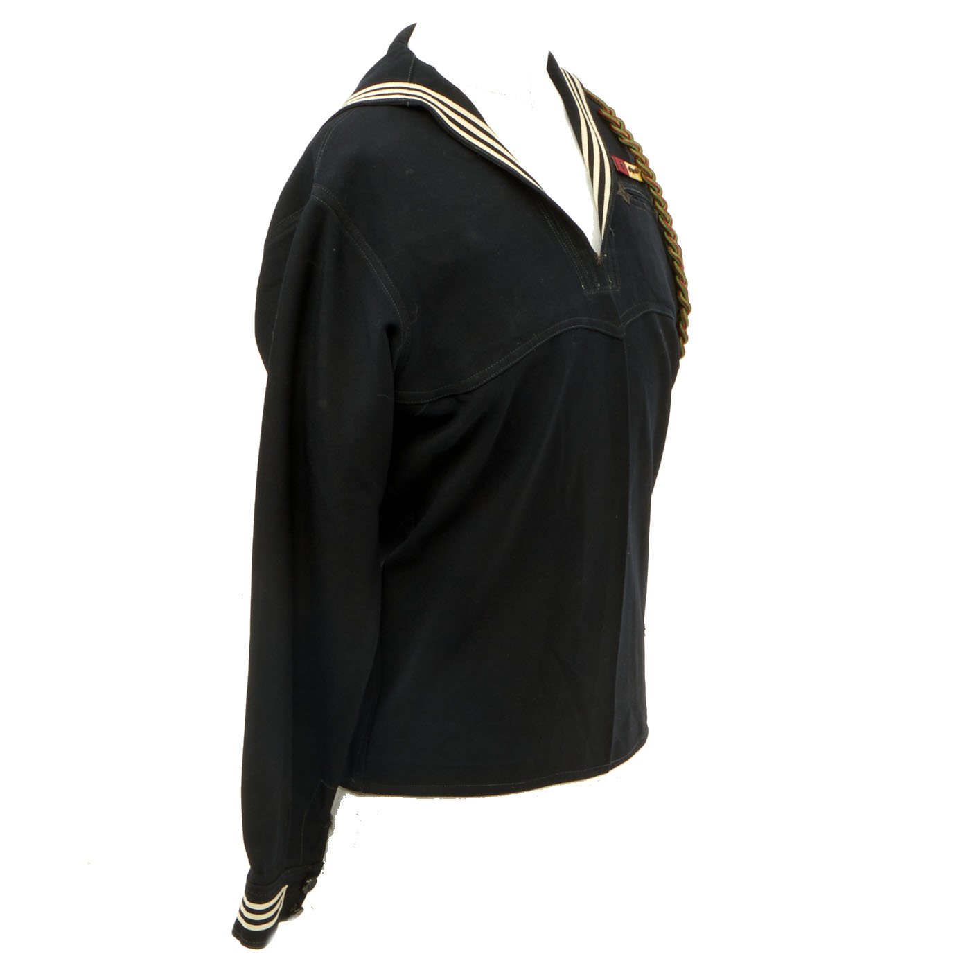 Original Item: Only One Available. This very USN WWII uniform jumper is featured on page 132-133 in the book Sailors in Forest Green; USN Personnel Attached to the USMC, Volume 1 by Jeff Warner.