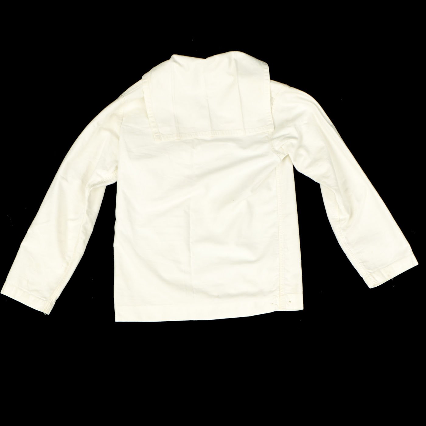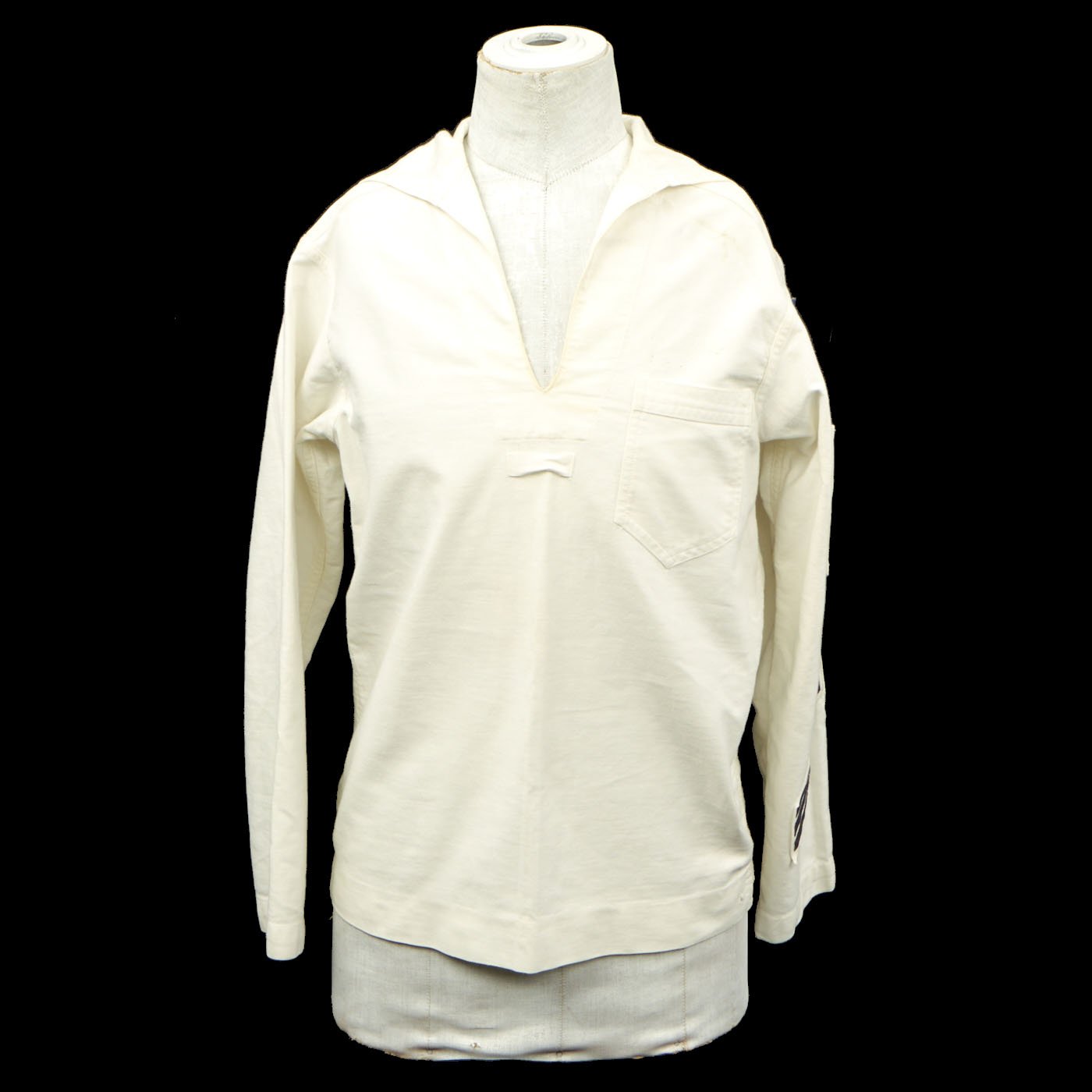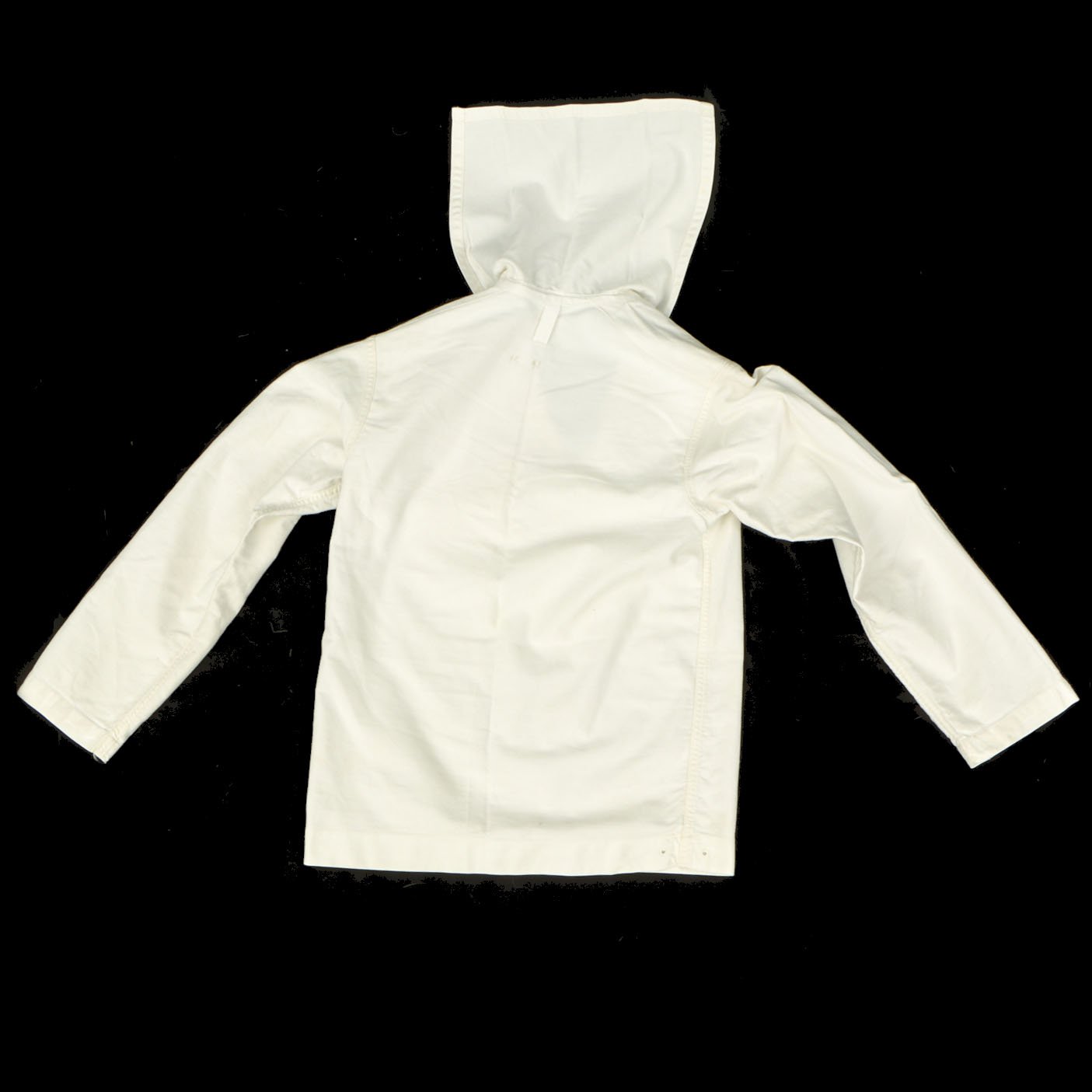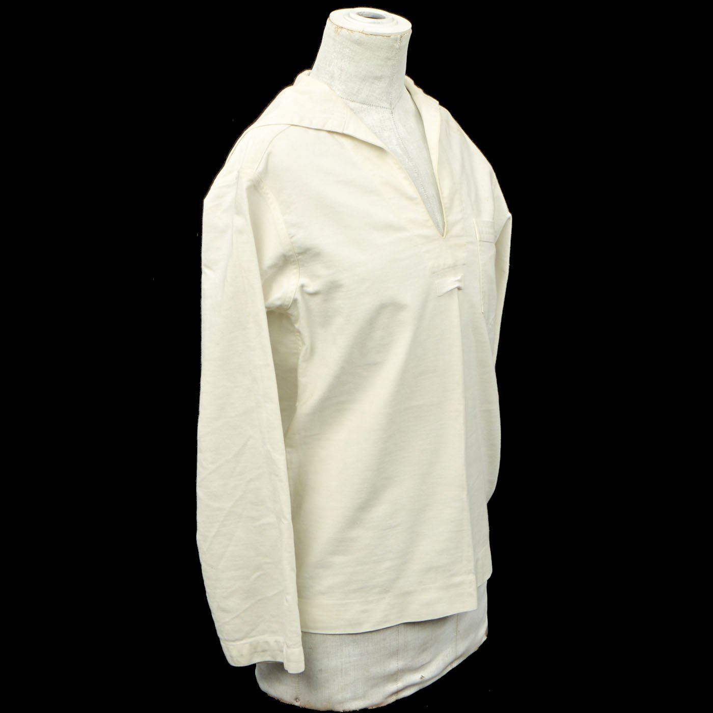 Original Item: Only One Available. This very USN WWII uniform jumper is featured on page 131 in the book Sailors in Forest Green; USN Personnel Attached to the USMC, Volume 1 by Jeff Warner. This is an excellent condition pharmacist's mate first class wearing the Navy Undress White uniform. This uniform appears as it was worn in 1945. The original owner of this uniform joined the Naval Reserve in 1932. Three service stripes indicate twelve years service. He was attached to the First Marine Division and authorized to wear the divisional patch.