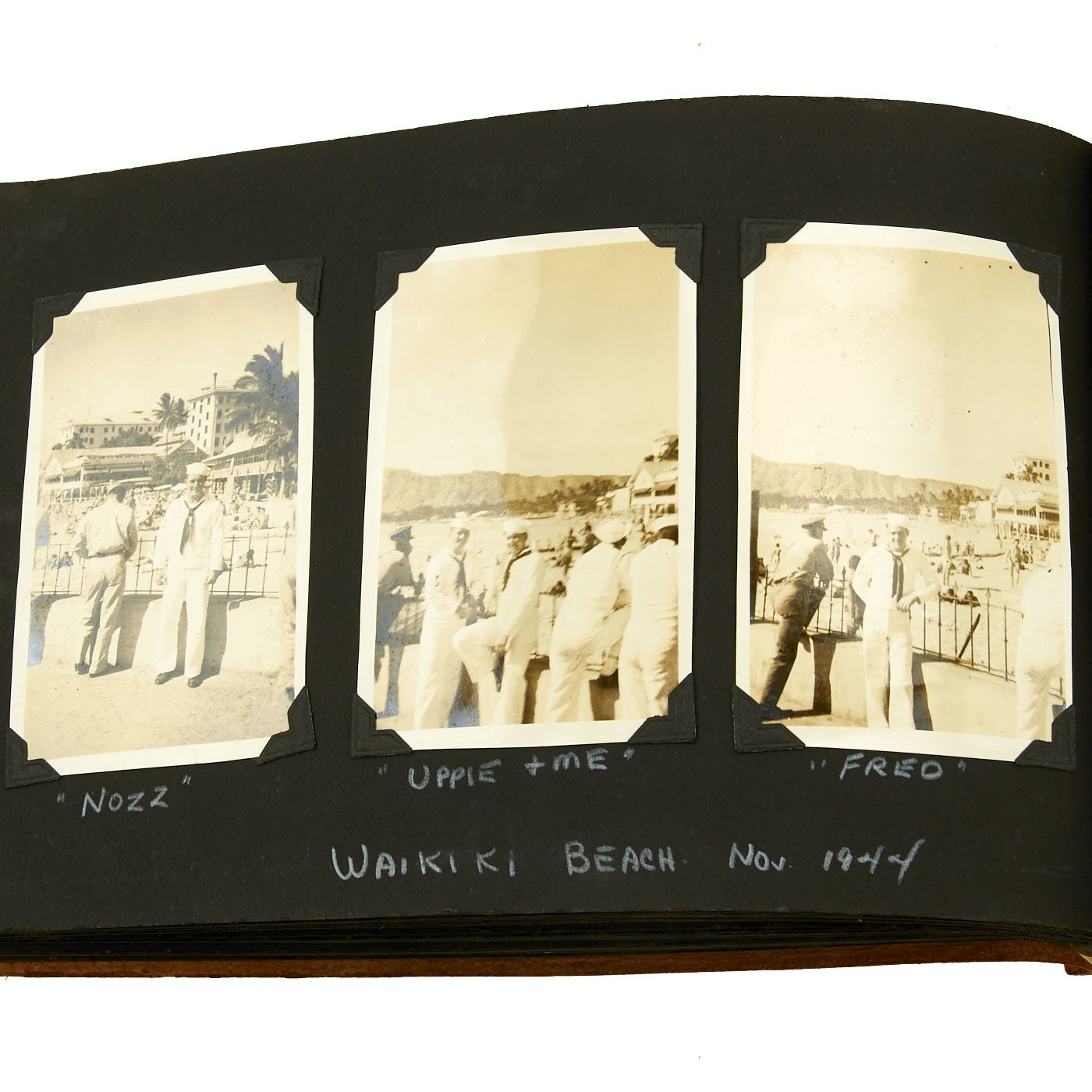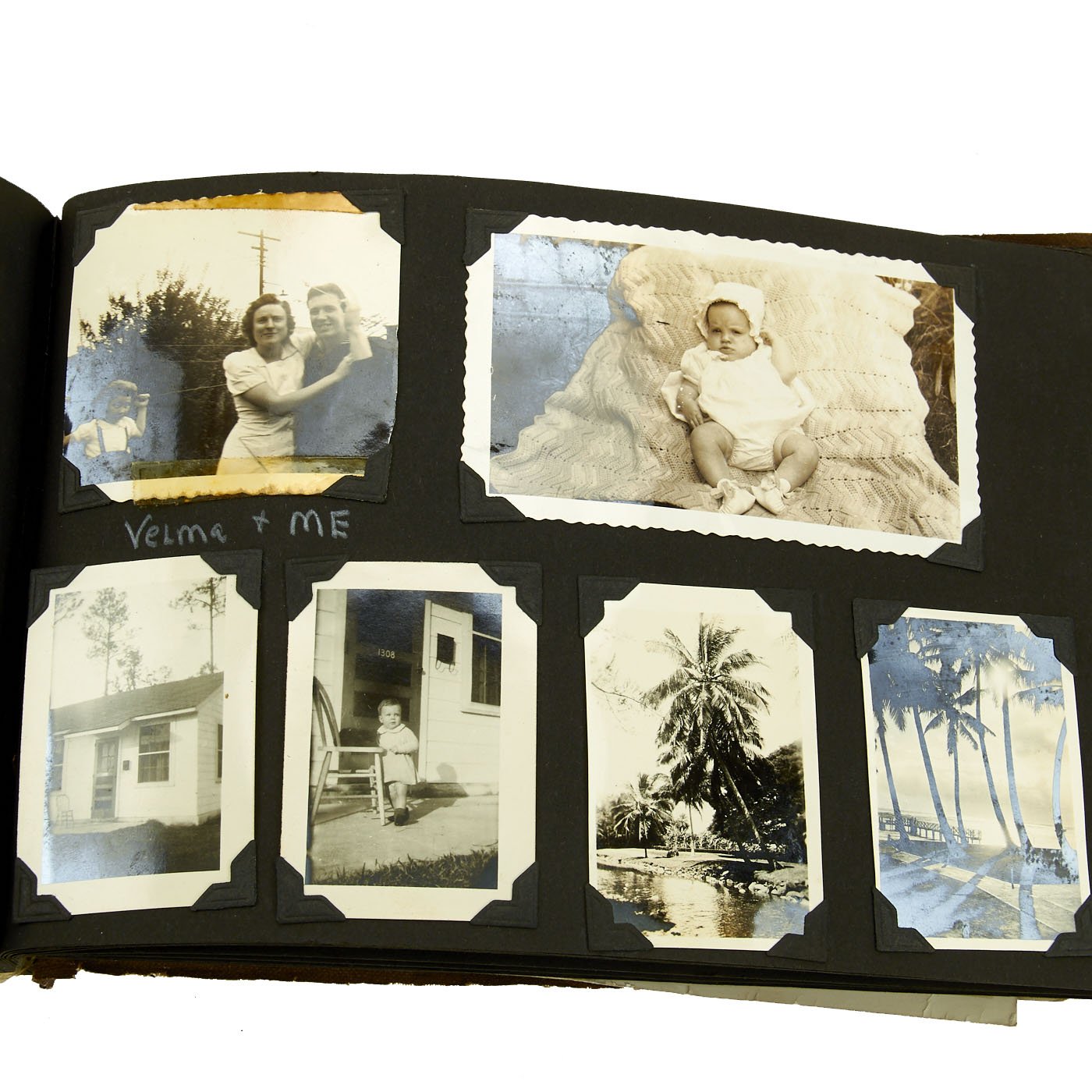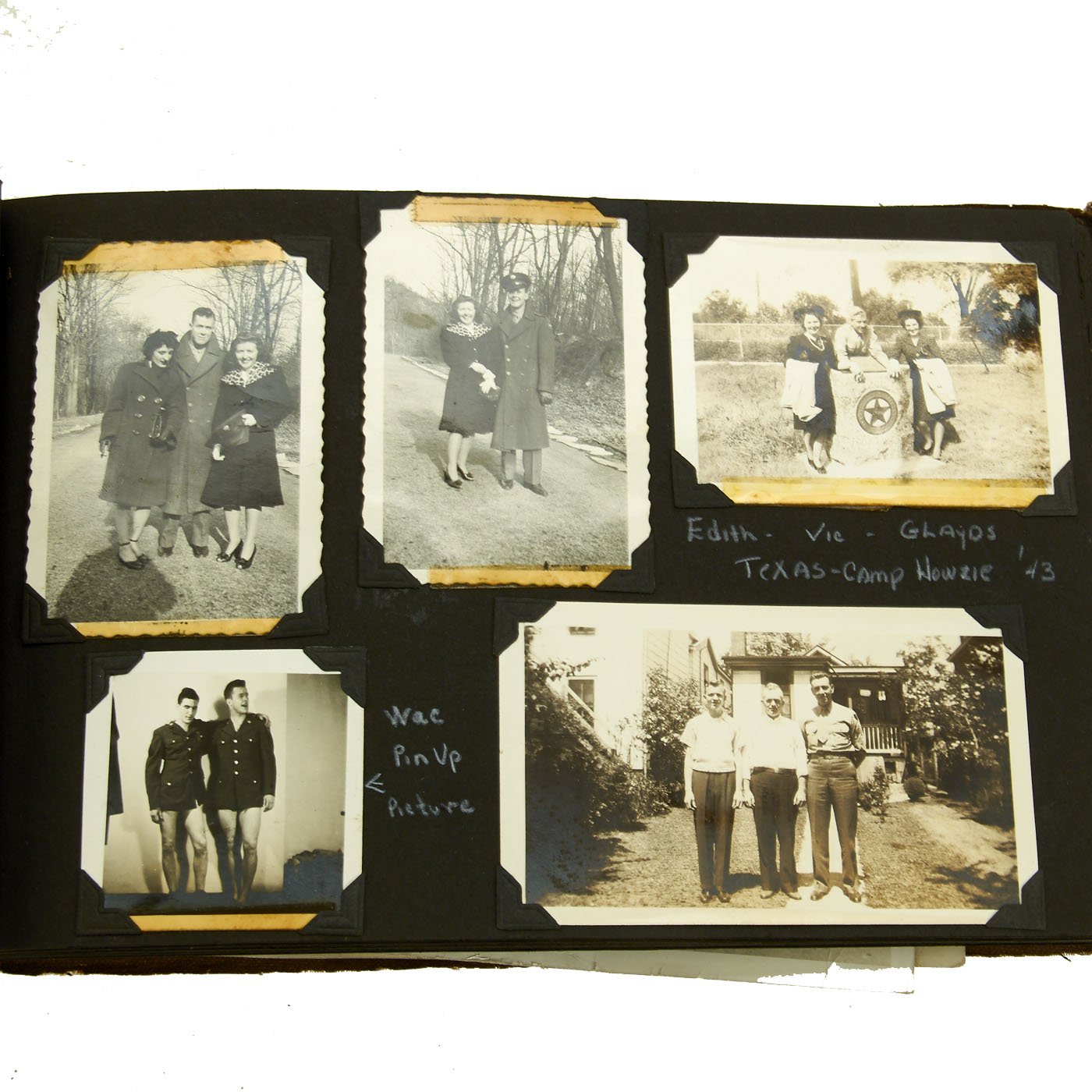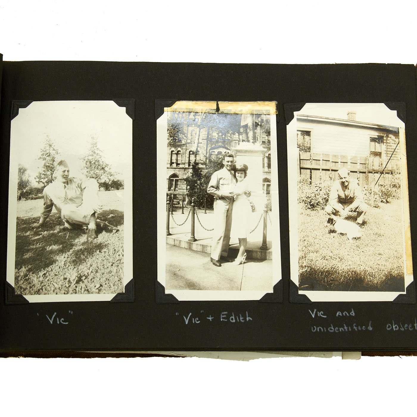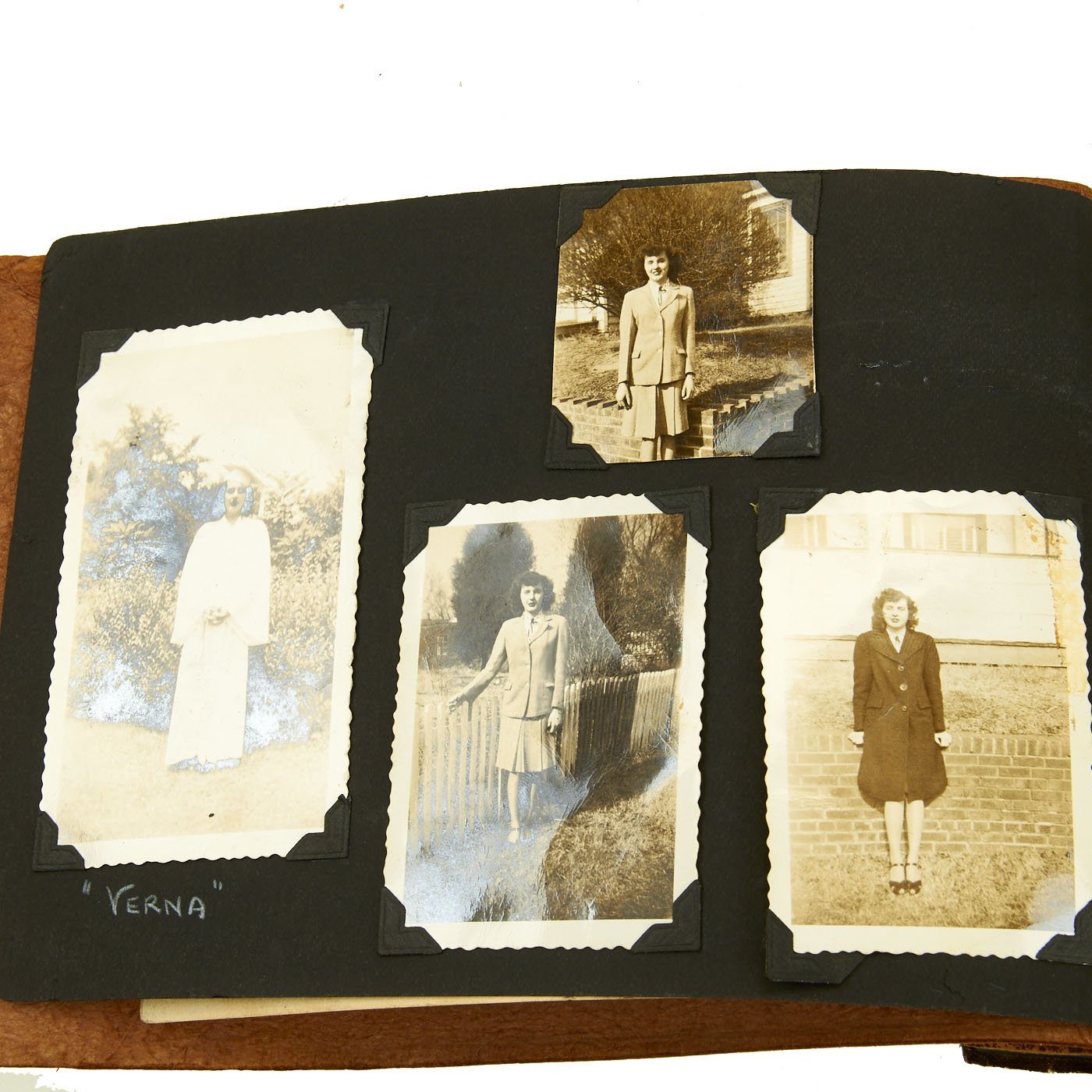 - Fantastic WWII photo album with 60 pages and 116 photographs it measures 11 x 7” and features a hand painted leather cover.