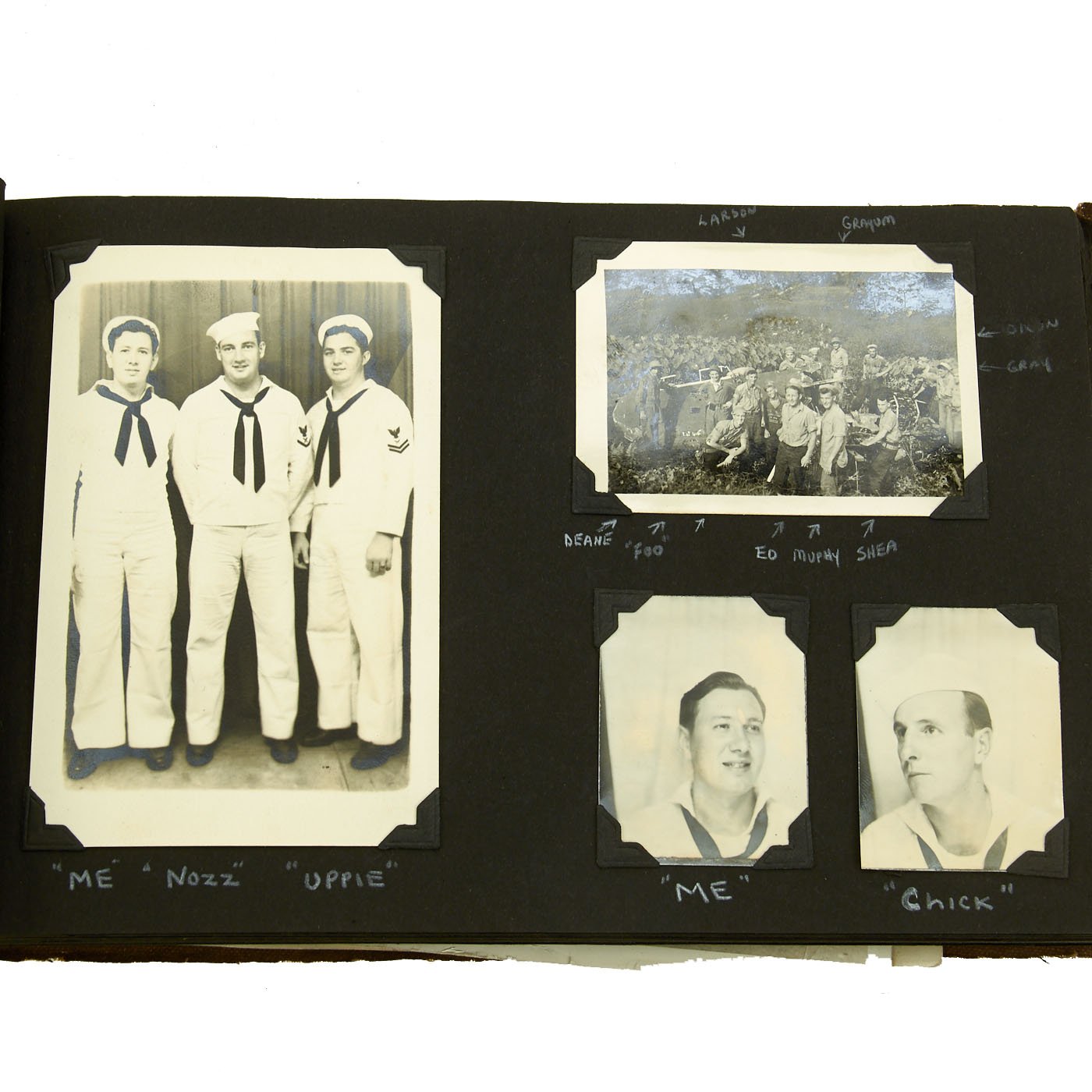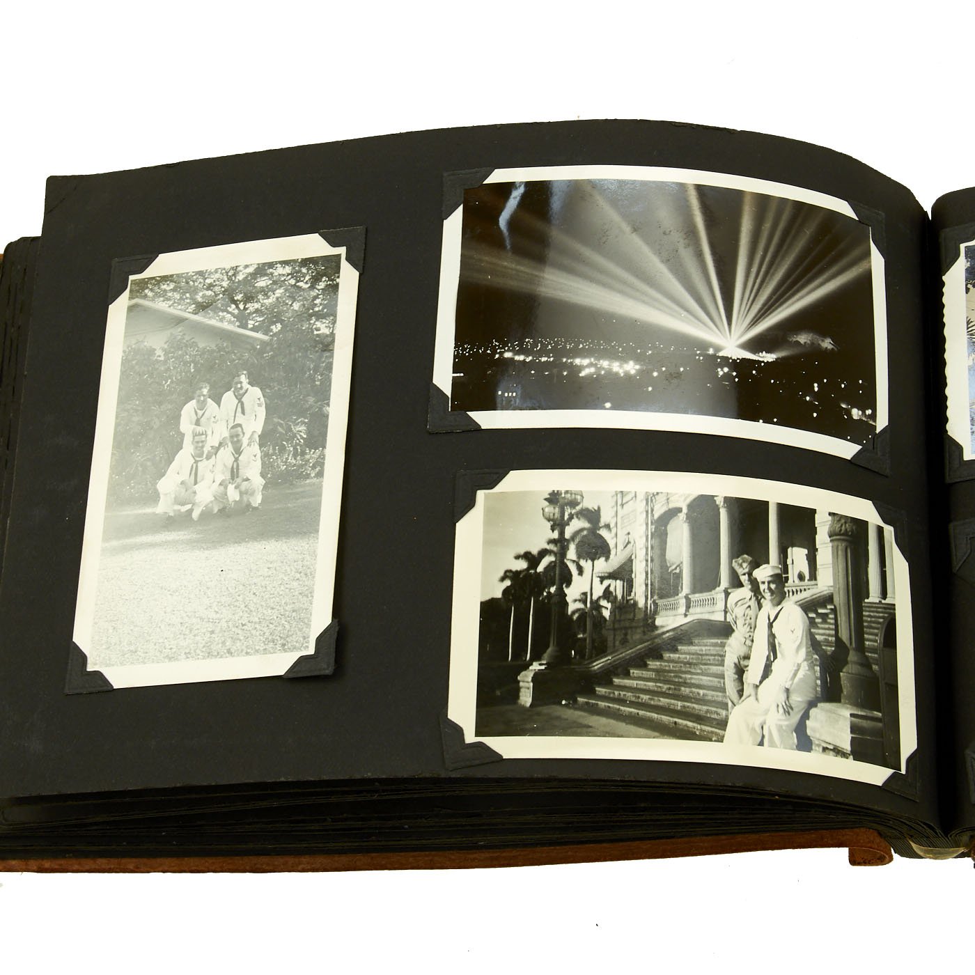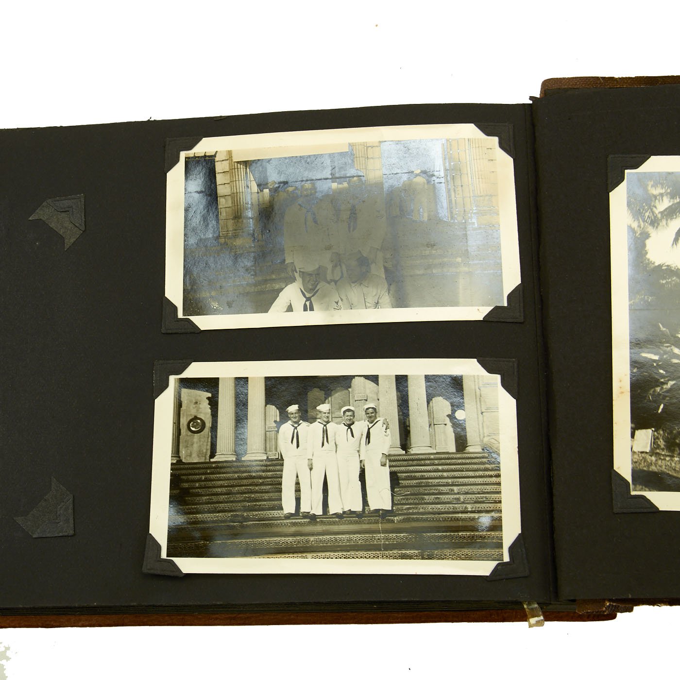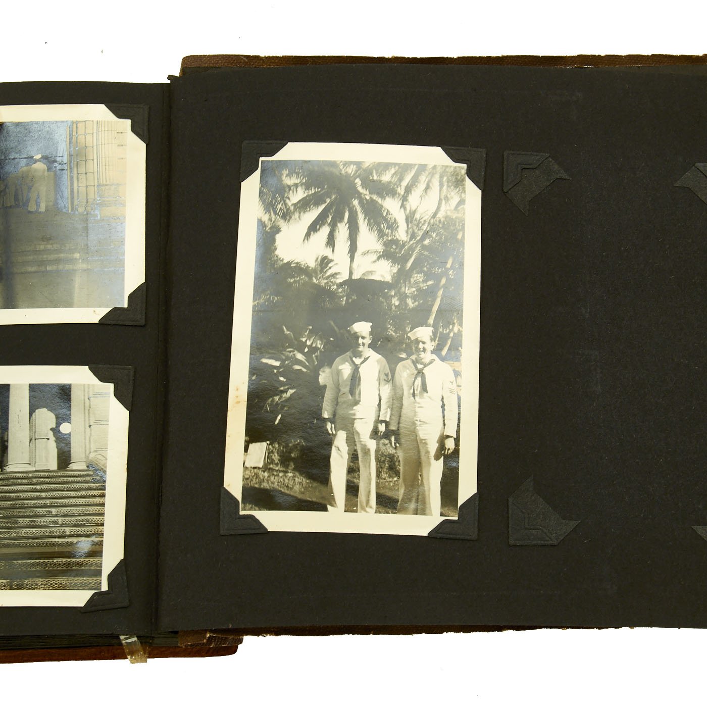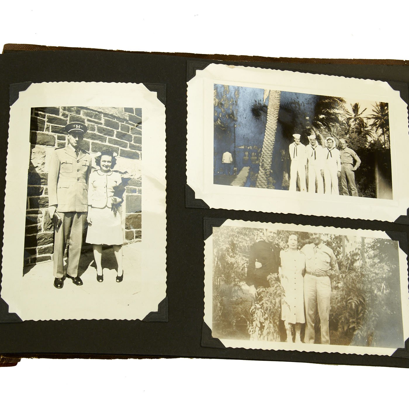 - Fantastic WWII photo album with 60 pages and 116 photographs it measures 11 x 7” and features a hand painted leather cover.