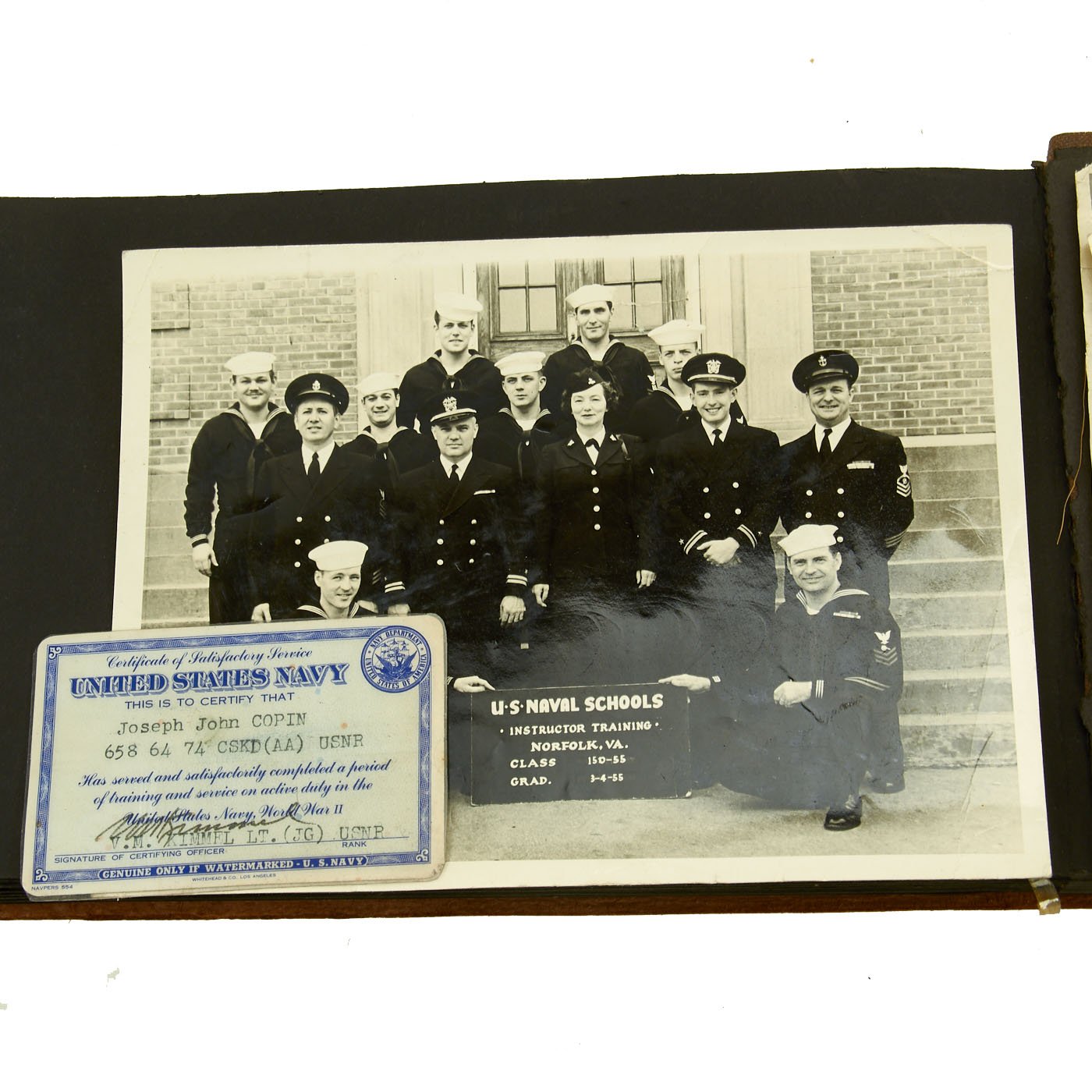 Original Items: One-of-a-kind set. Joseph John Copin NSN 6586474 CSKD CHIEF STOREKEEPER (DISBURSING) served during World War Two from 1942 trough the end of the war. This is a collection of a few of his items which were obtained directly from his estate. The grouping includes the following:
