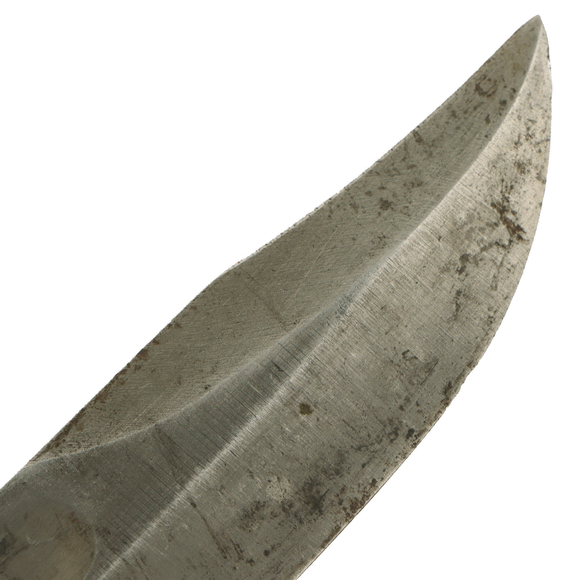 About 65% of the original blade finish is still present, with the usual wear from the scabbard and use. It has been sharpened at least once, possibly during the period. It has a heavy steel pommel with cross pinned tang. The blade is in good condition, and is still sharp.