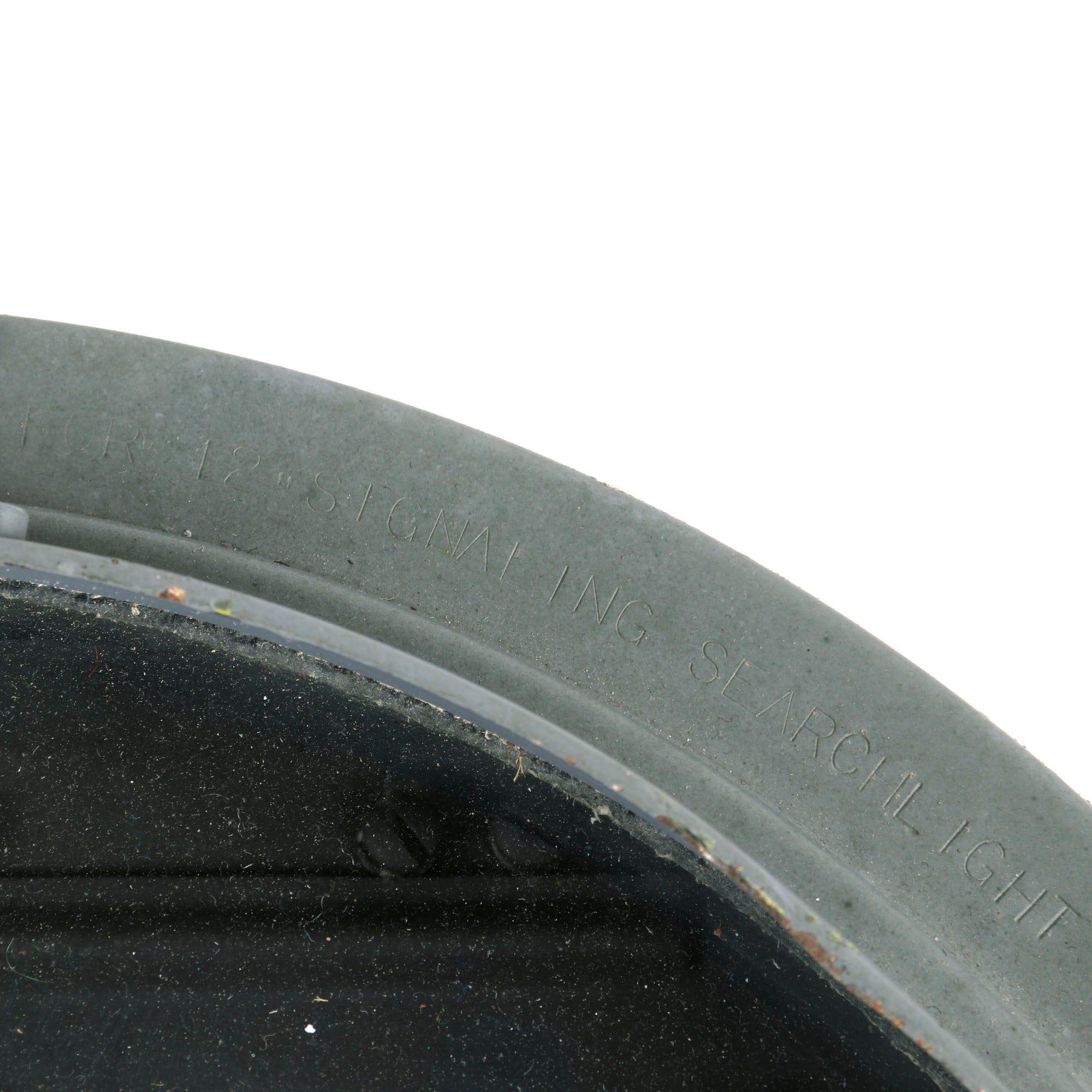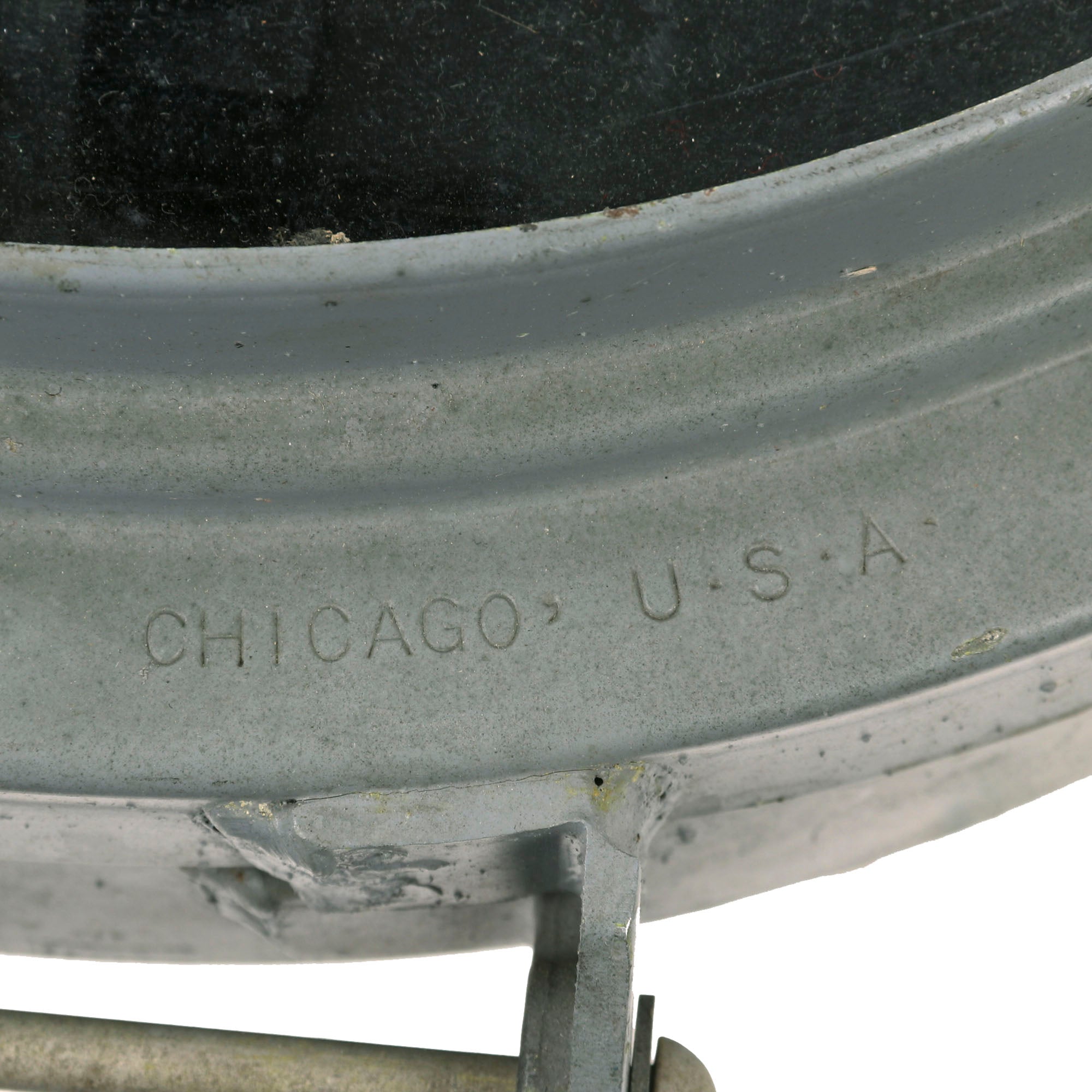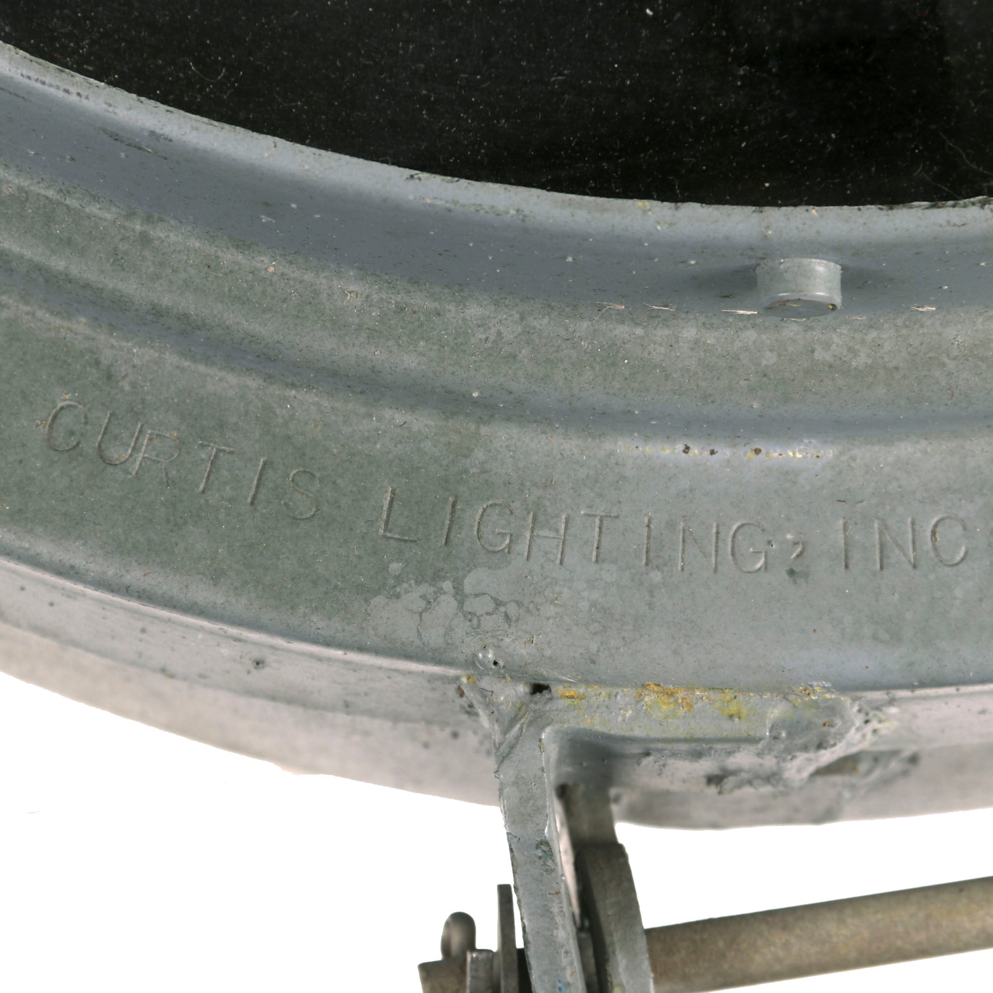This example is made by CURTIS LIGHTING INC., and is marked around the ring on the front with the maker and model information. IT does hot look to have ever been installed on a searchlight, though there is some wear from age and storage. One of the handles for actuating the shutter has been bent, and there is light wear to the paint ina areas. Measures approximately 22" x 17" x 4".