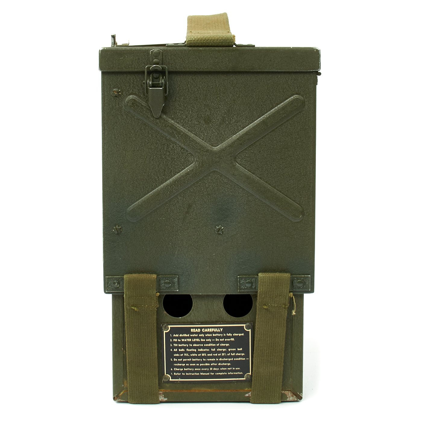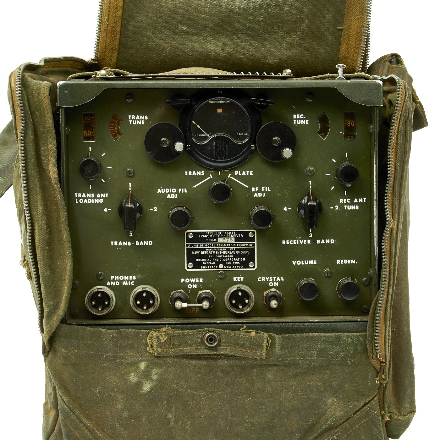 The TBY as used by the USMC and Navy during WWII. When carried in its canvas backpack it was slightly splash proof but still not up to the task of amphibious landings unless the individual operators provided additional waterproofing. This era was before MFP – Moisture Fungus Proofing – so we would imagine their life expectancy in a humid Pacific island jungle would be rather short before rain, humidity, fungus, rust, sand and salt water corrosion destroyed them, meaning a pristine example such as this unit is exceptionally rare.