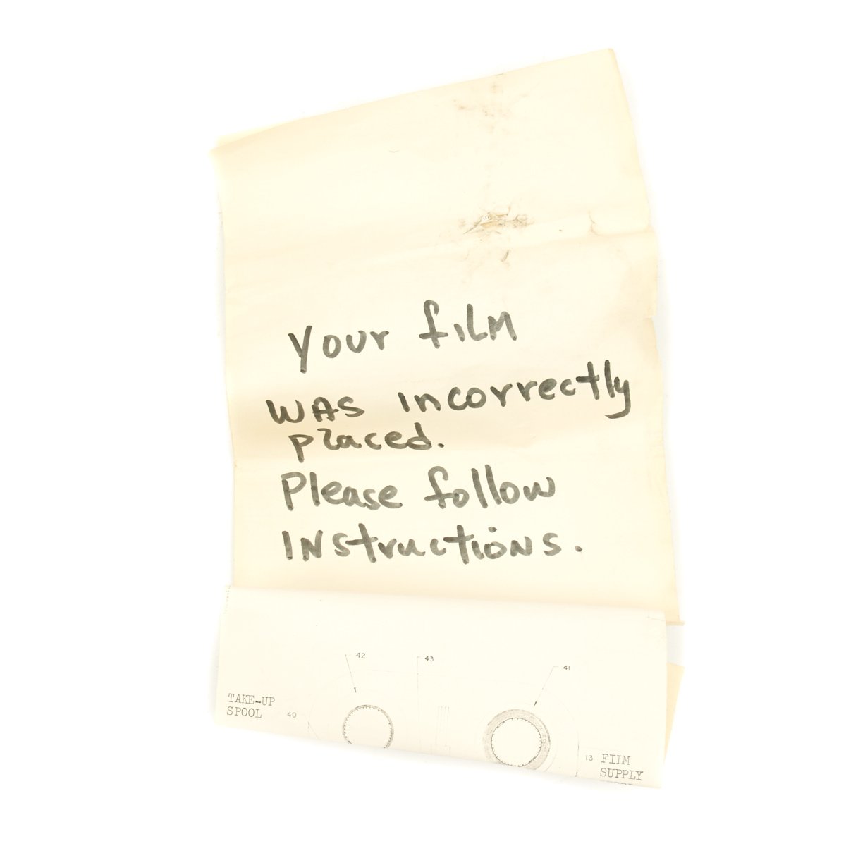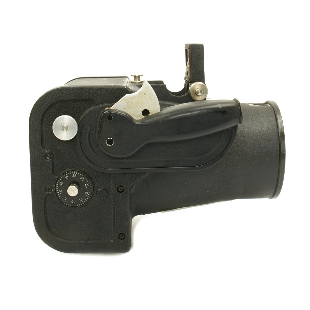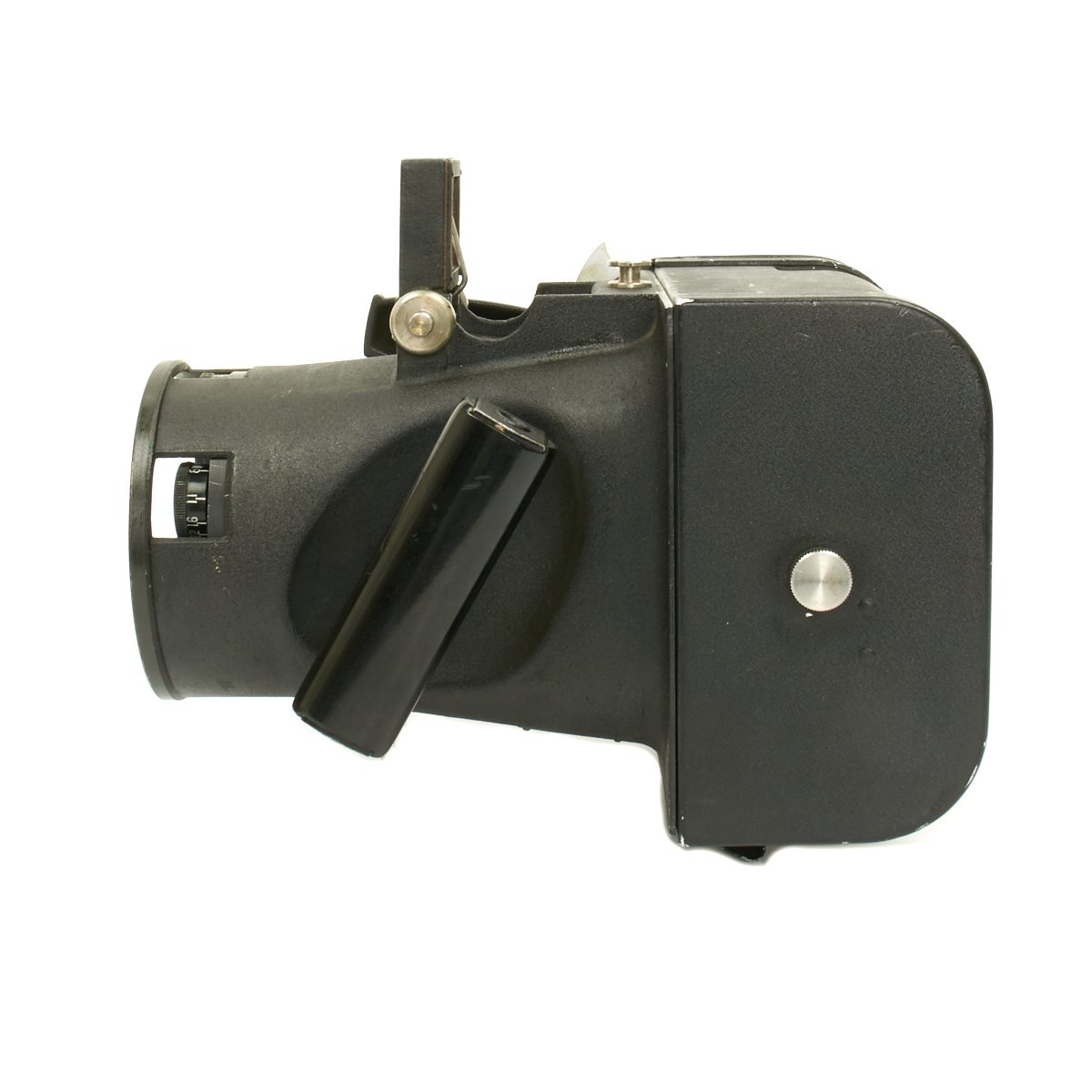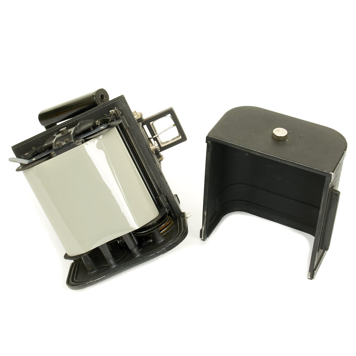 This camera is offered in very good condition. It comes with an original case, two filters (red, yellow), various accessories and three unopened rolls of original Kodak 5 1/4 inch by 20ft film from the 70s. There is also a roll loaded in the camera, which has doubtlessly been completely exposed. It has a small portion of the original manual, detailing how film was loaded. The rest of the manual was missing.