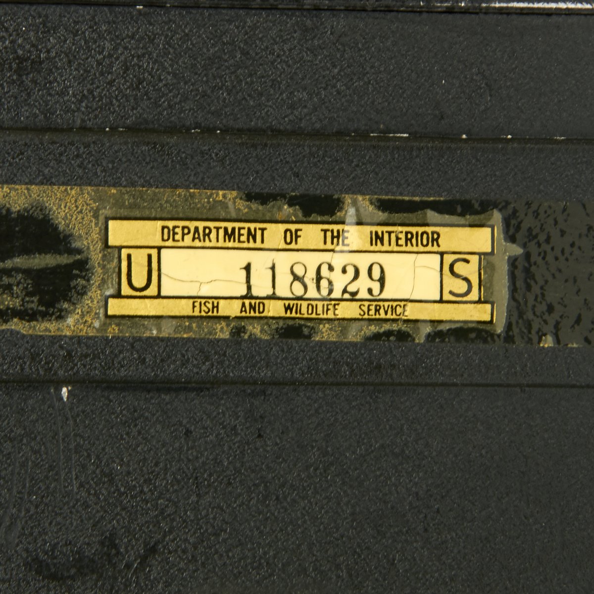 This camera also saw service after the war with the US. Fish and Wildlife Service, as indicated by a label on the back of the camera, along with inventory number 118629. We do not know if it functions though it does appear to operate normally. The aperture control is definitely still functional, though we have no way to verify the ISO control functionality. Apparently, new film for this camera is still available on the market.