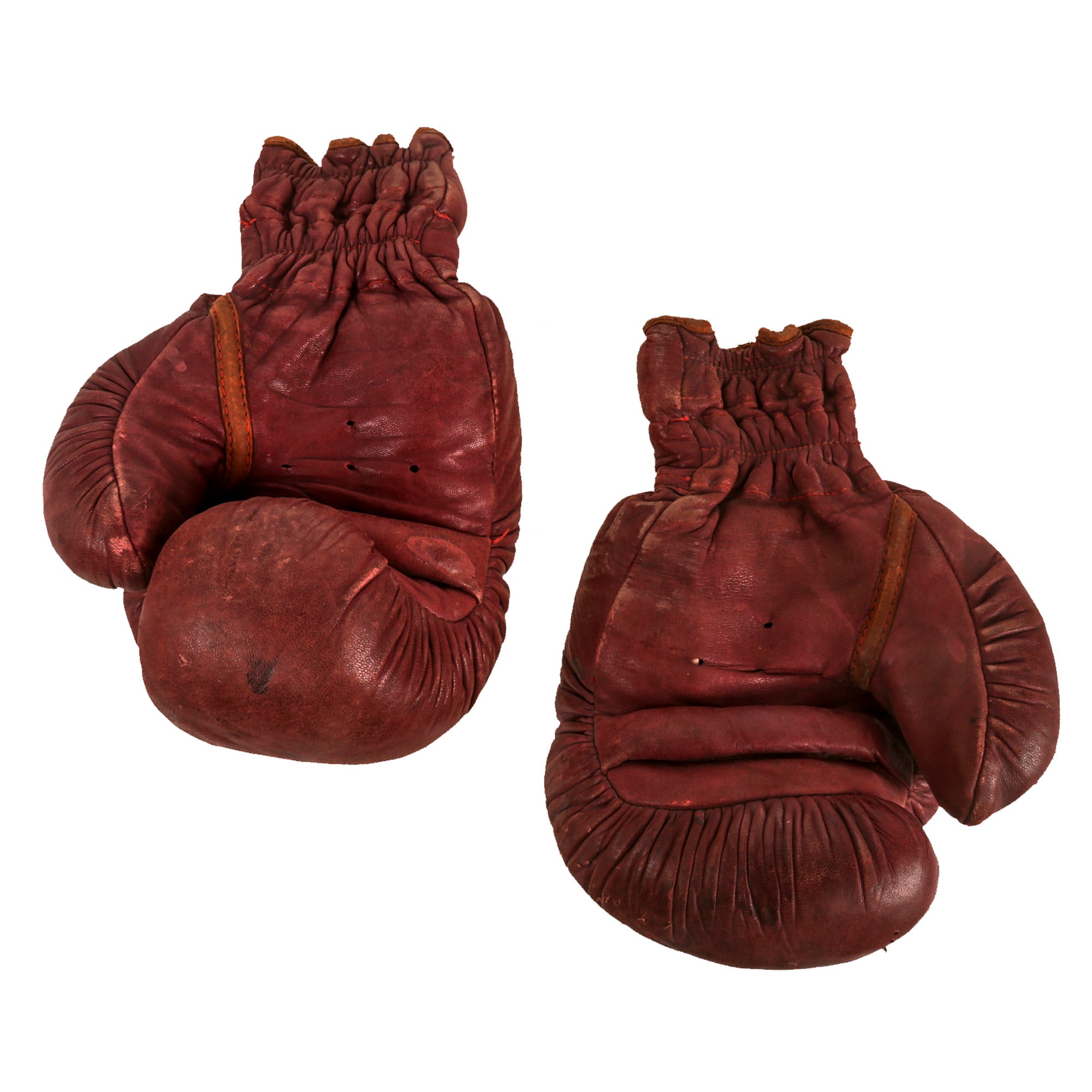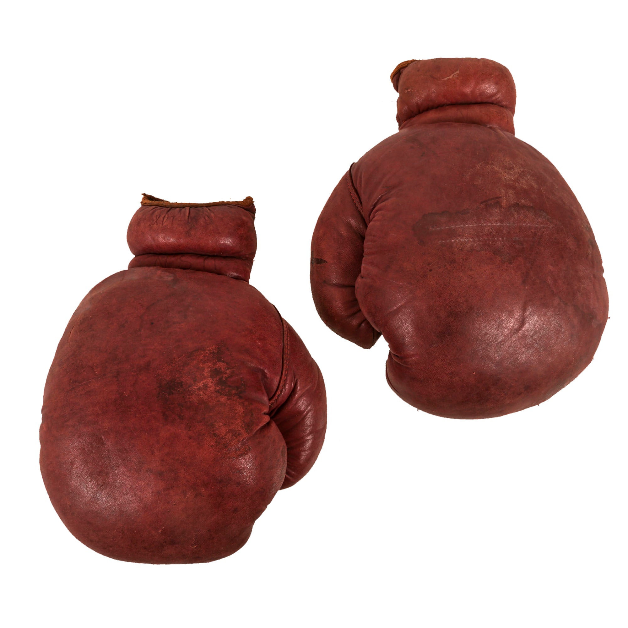 A fantastic set of Navy-marked boxing gloves, ready for further research and display.