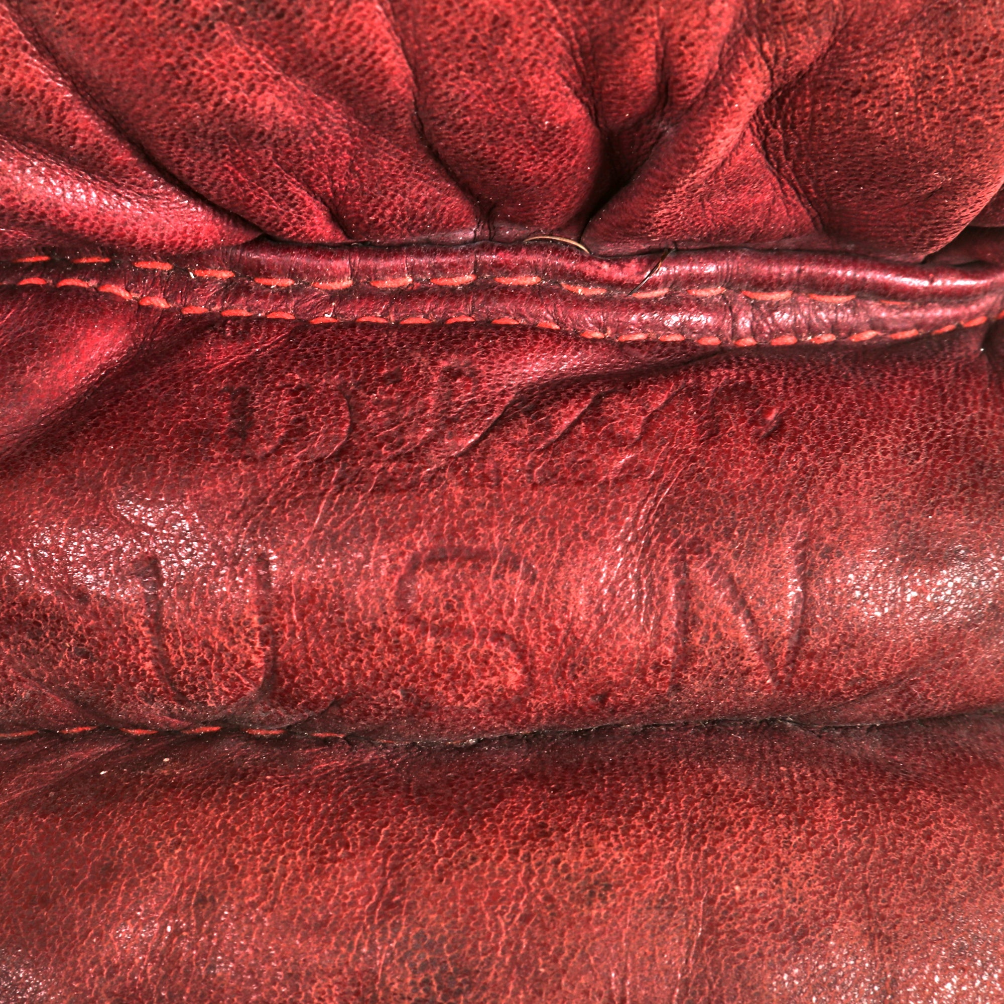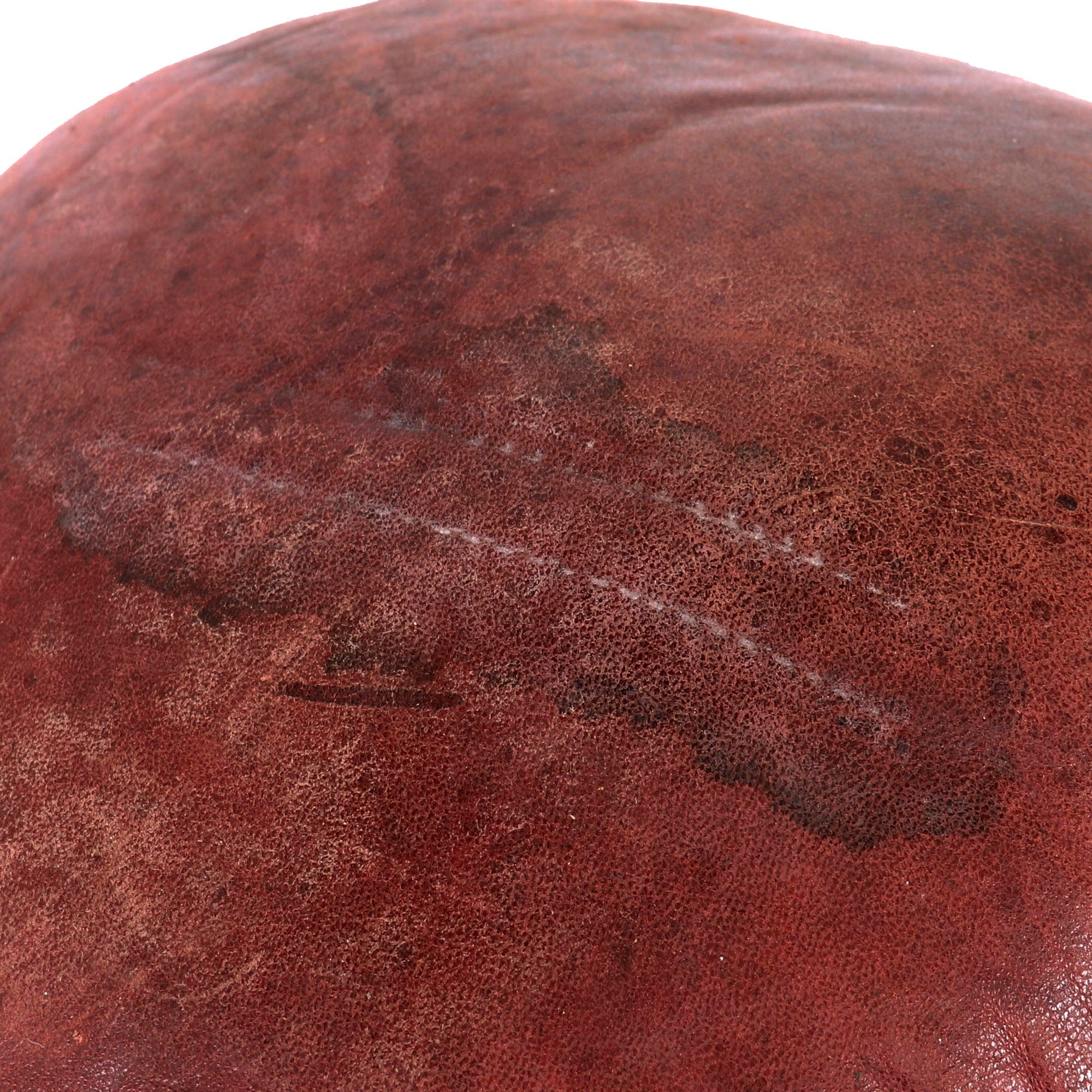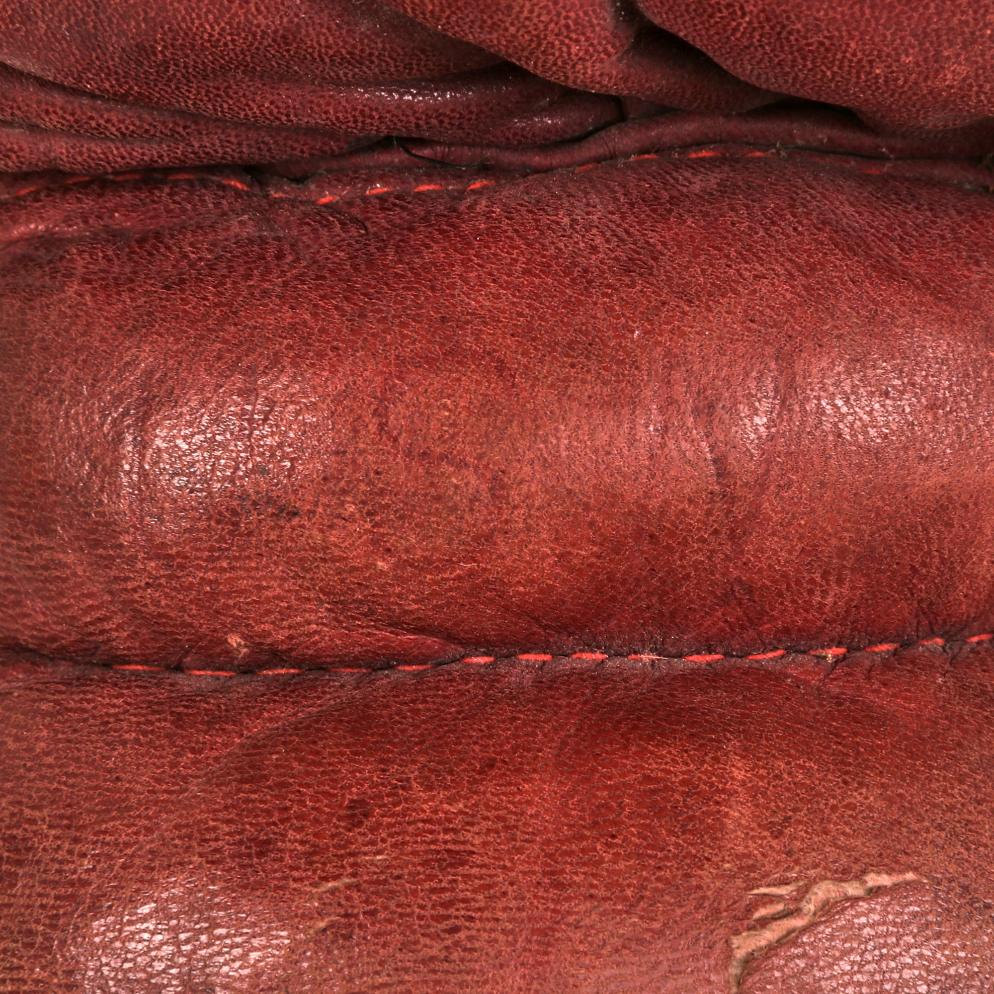 The gloves retain their red color well with some staining and wear to the material. The palms have five small holes which are still retained.