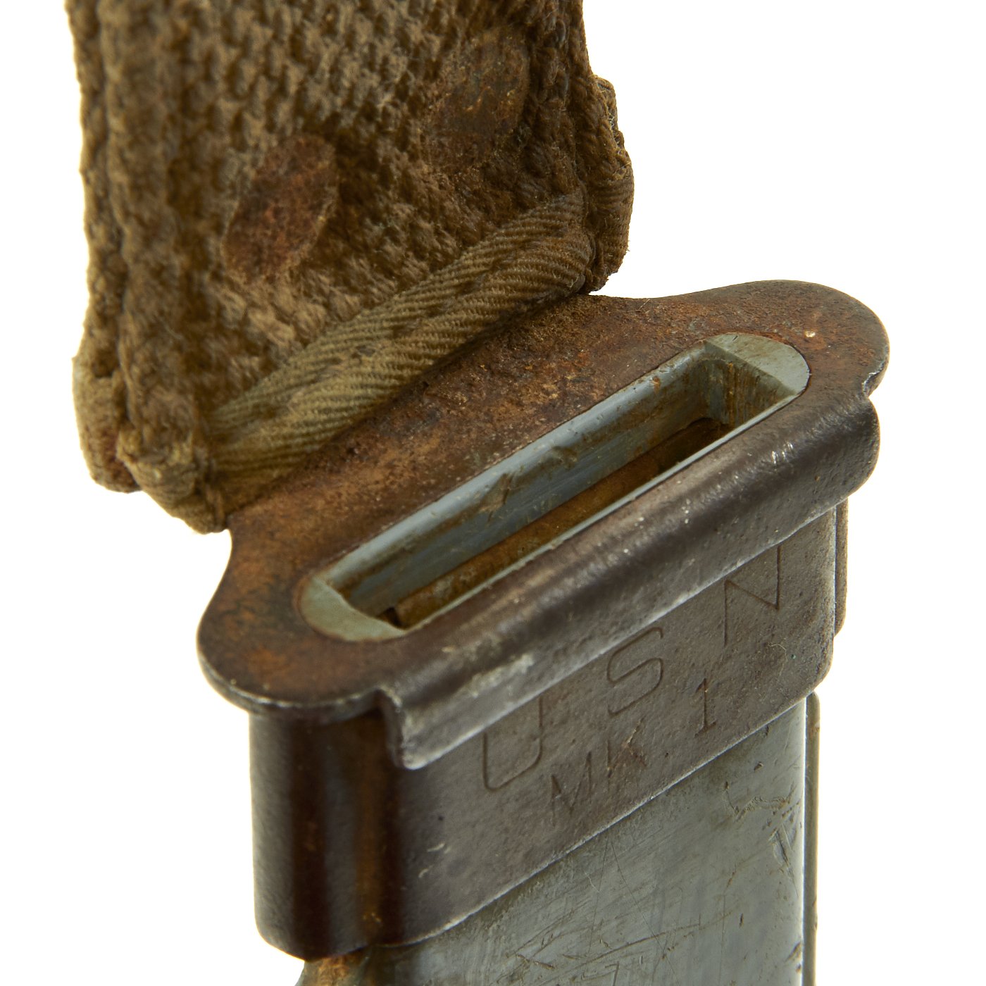 Original Item: Only One Available. The Navy MK1 knife was used as both a utility knife and a fighting weapon. While some undoubtedly saw combat, particularly with Naval Aviators, these blades were mostly used for everyday functions aboard ship and ashore. The Mark I knives were Navy issue throughout WWII and remained in inventory through the Vietnam war. They were purchased in huge quantities so replacements were not needed for many years.