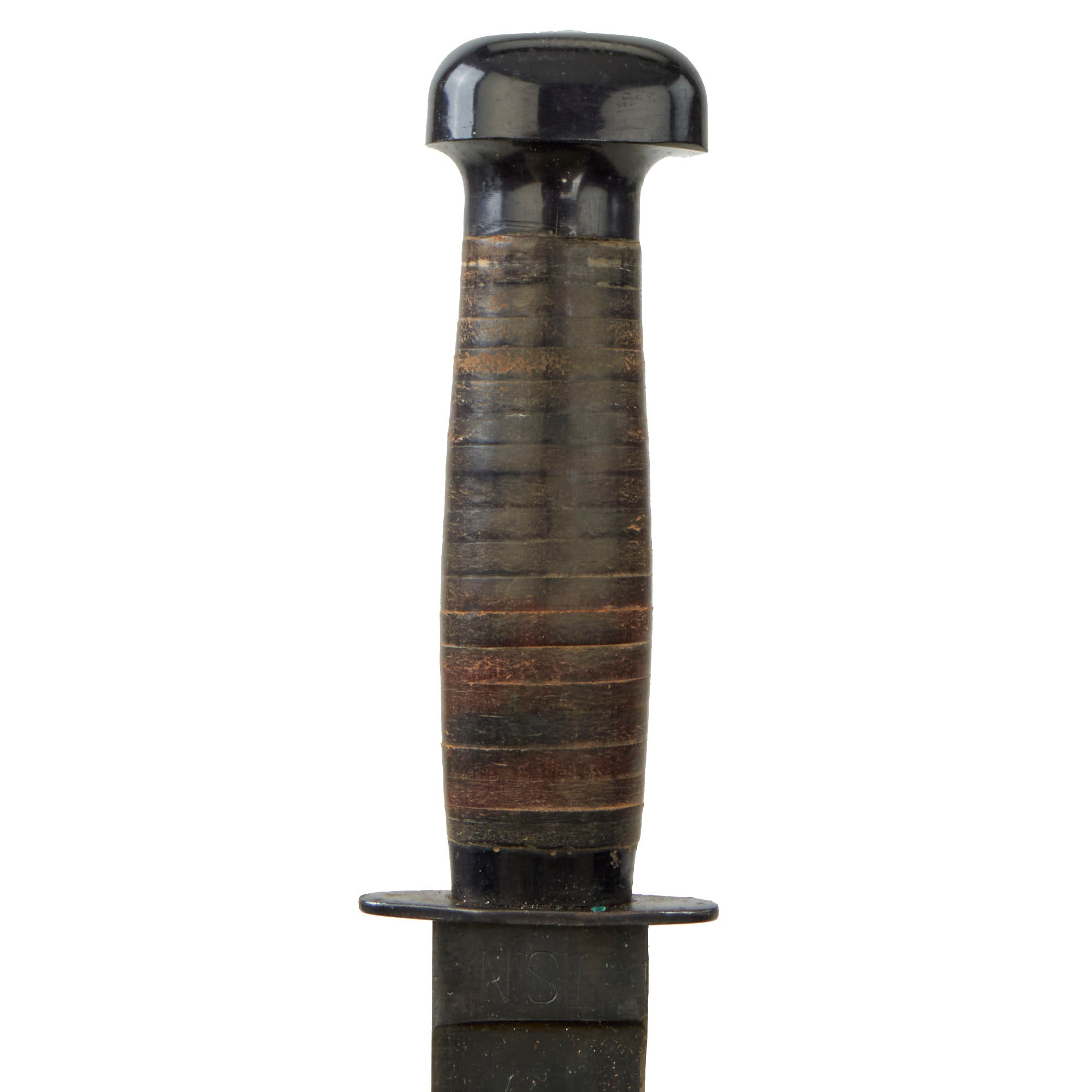Original Item: Only One Available. The Navy MK1 knife was used as both a utility knife and a fighting weapon. While some undoubtedly saw combat, particularly with Naval Aviators, these blades were mostly used for everyday functions aboard ship and ashore. The Mark I knives were Navy issued throughout WW2 and remained in inventory through the Vietnam war. They were purchased in huge quantities so replacements were not needed for many years.