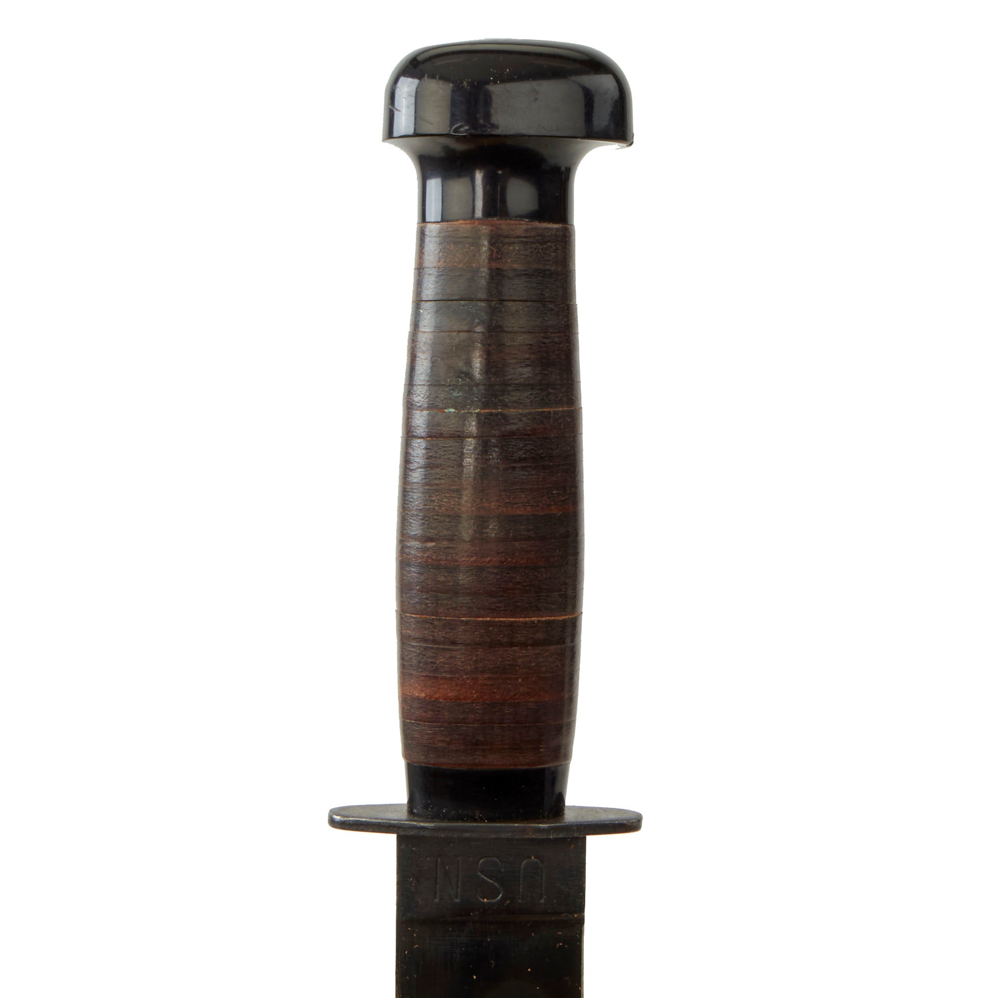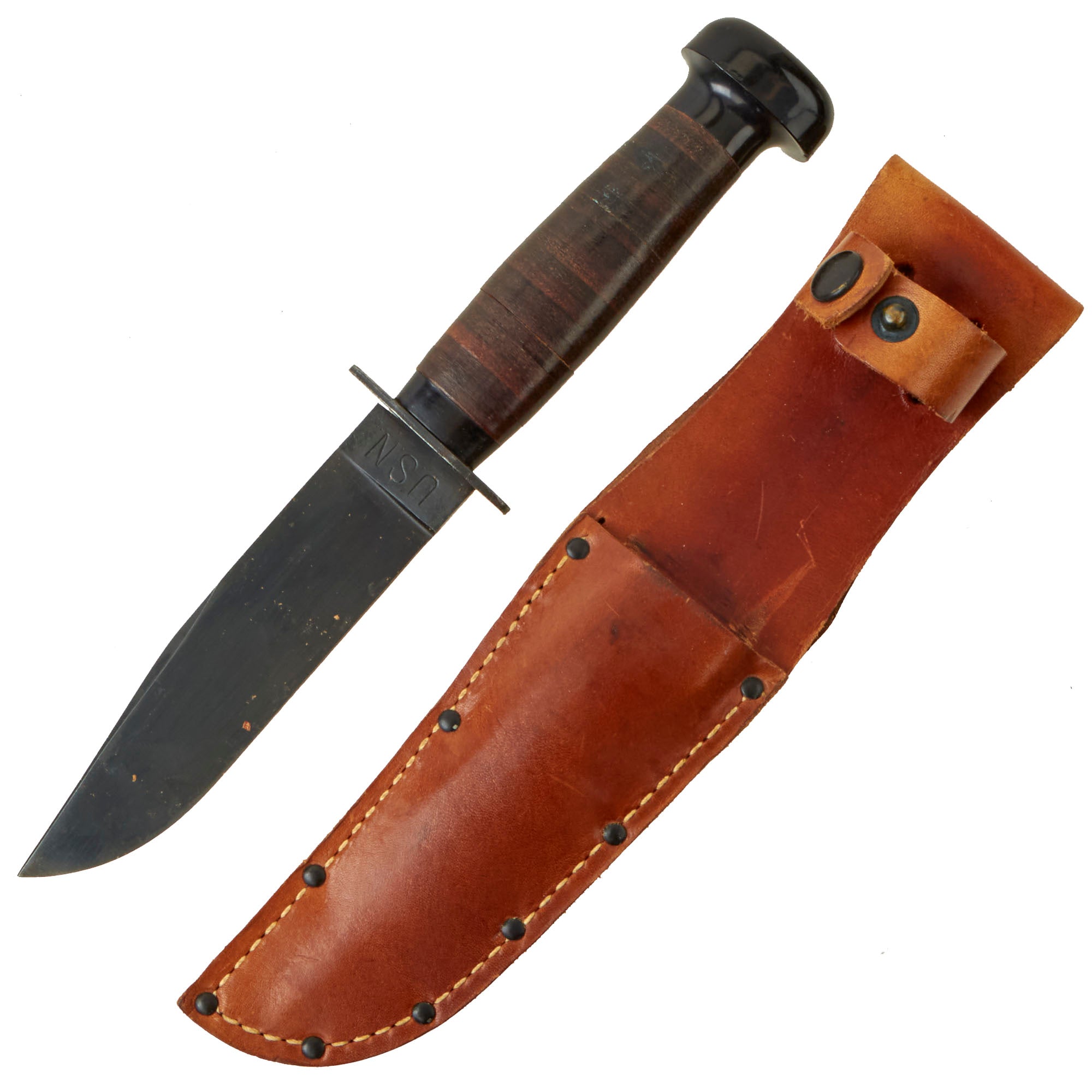Original Item: Only One Available. The Navy MK1 knife was used as both a utility knife and a fighting weapon. While some undoubtedly saw combat, particularly with Naval Aviators, these blades were mostly used for everyday functions aboard ship and ashore. The Mark I knives were Navy issued throughout WW2 and remained in inventory through the Vietnam war. They were purchased in huge quantities so replacements were not needed for many years.
