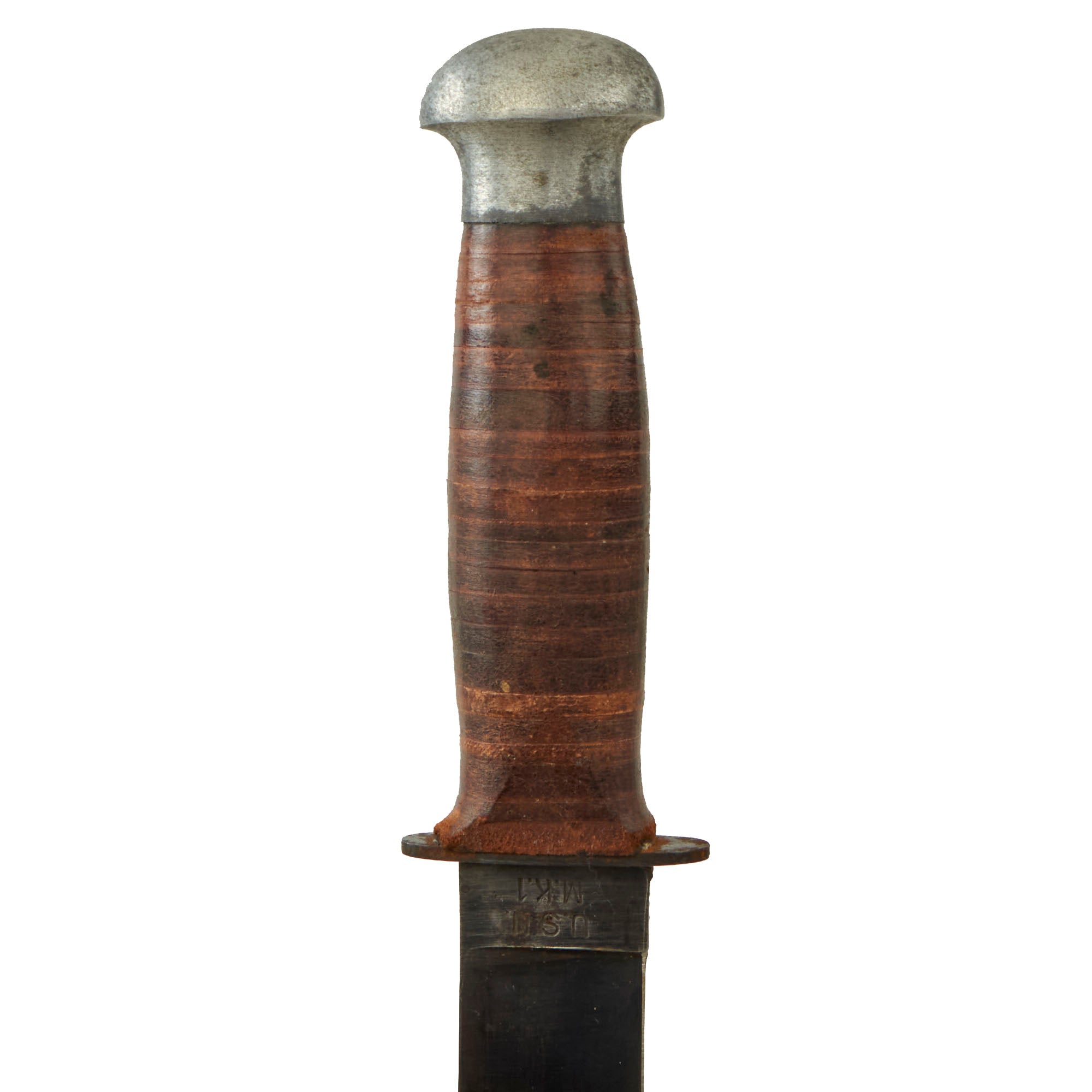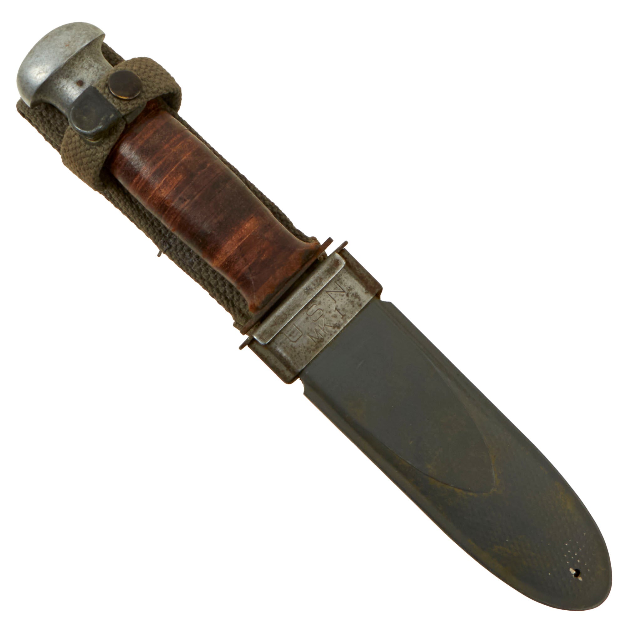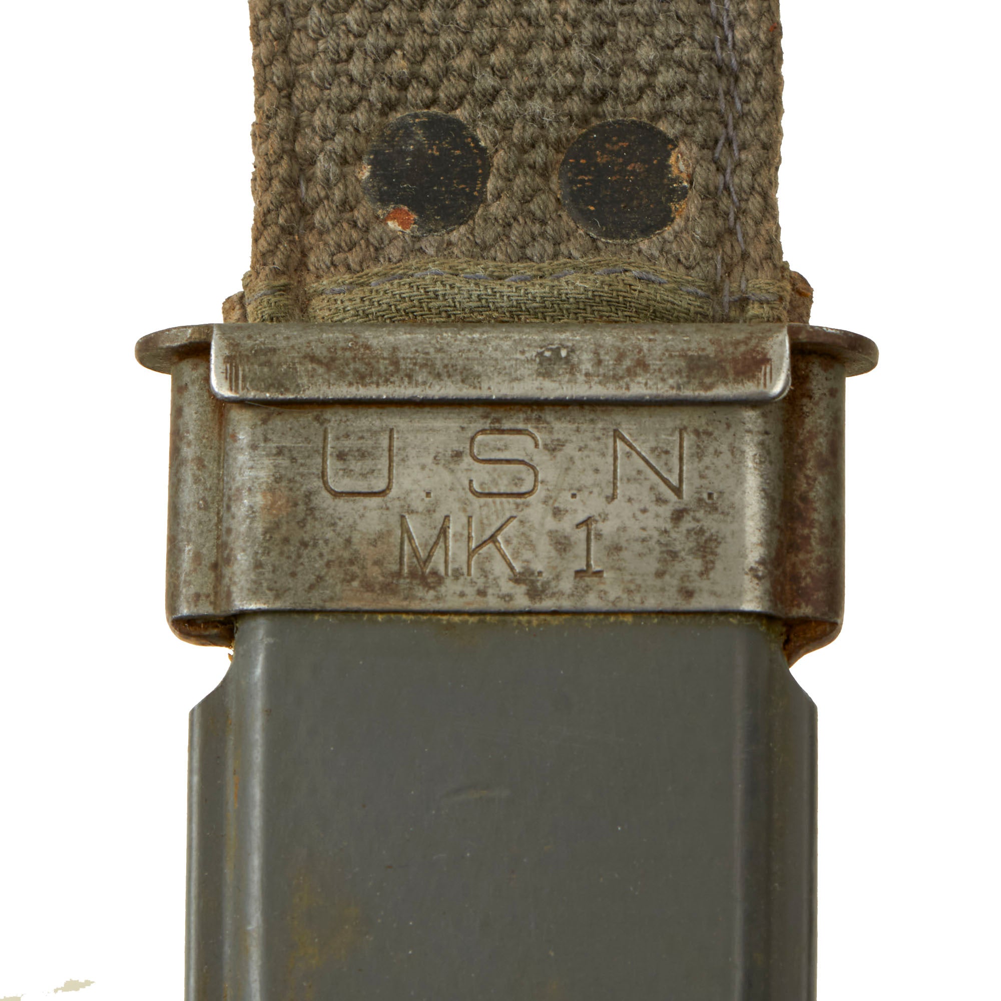Original Item: Only One Available. The Navy MK1 knife was used as both a utility knife and a fighting weapon. While some undoubtedly saw combat, particularly with Naval Aviators, these blades were mostly used for everyday functions aboard ship and ashore. The Mark I knives were Navy issue throughout WW2 and remained in inventory through the Vietnam war. They were purchased in huge quantities so replacements were not needed for many years.