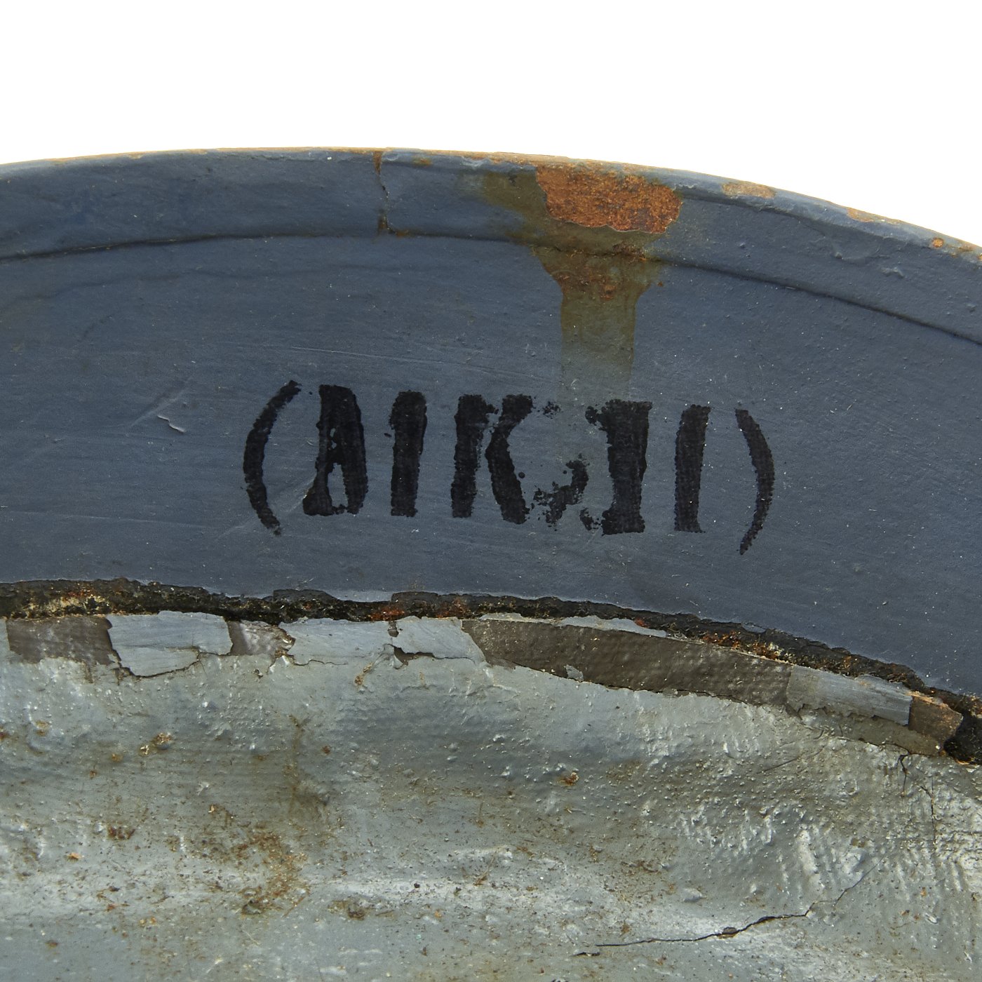 The Mk-2 was manufactured by the McCord Radiator Company in Detroit Michigan; the "Arsenal of Democracy". Its composition is non-magnetic Hadfield manganese steel. In addition to accommodating headphones, it also provided a great deal of protection to the wearer. The bowl is so wide it even provided some coverage to the shoulders of the sailor who was underneath it.
