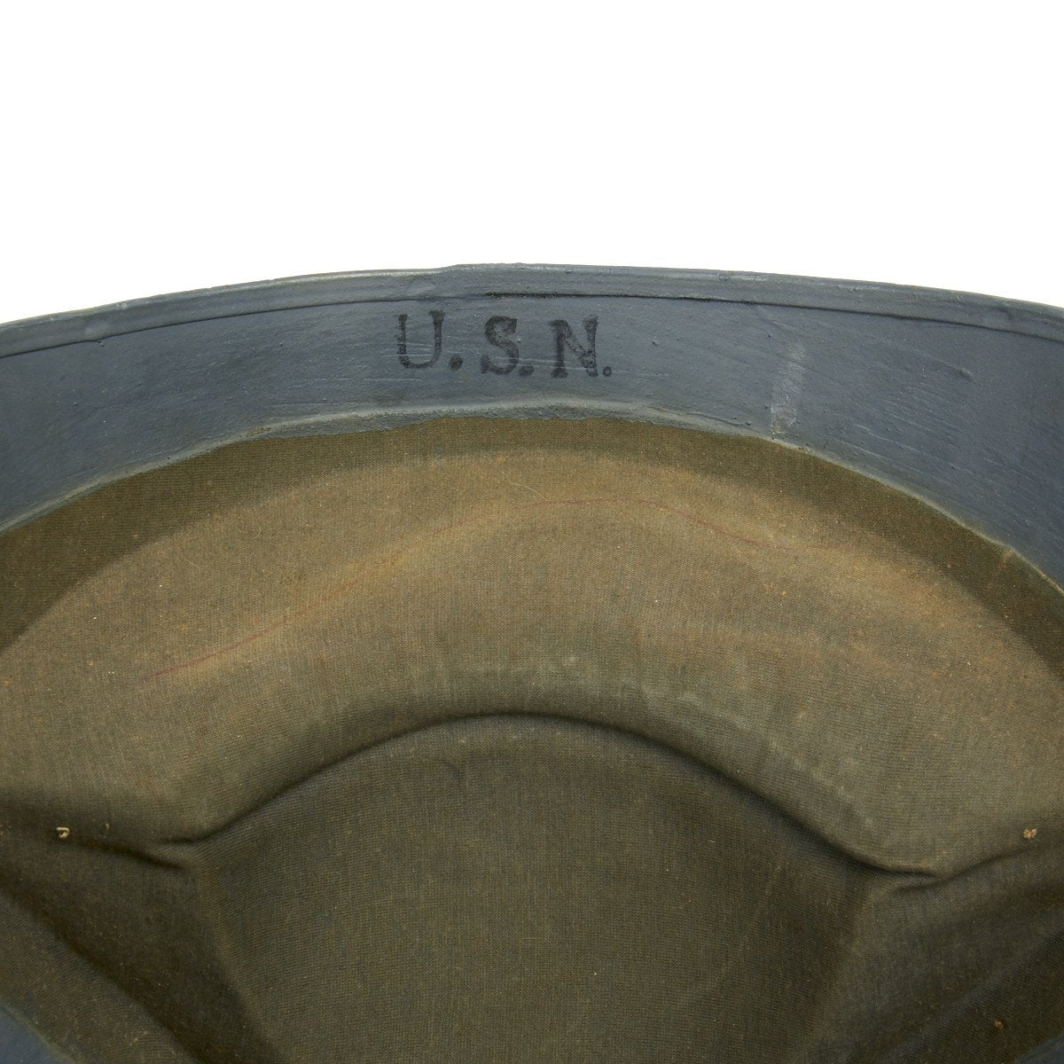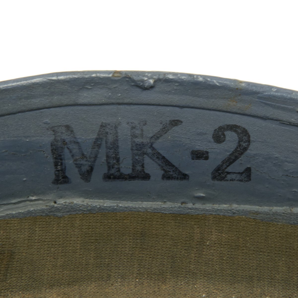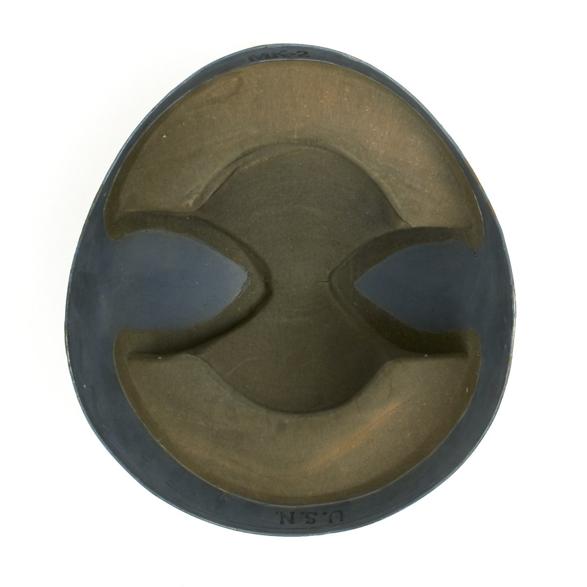 The Mk-2 was manufactured by the McCord Radiator Company in Detroit Michigan; the "Arsenal of Democracy. Its composition is non-magnetic Hadfield manganese steel. In addition to accommodating headphones, it also provided a great deal of protection to the wearer. The bowl is so wide it even provided some coverage to the shoulders of the sailor who was underneath it.