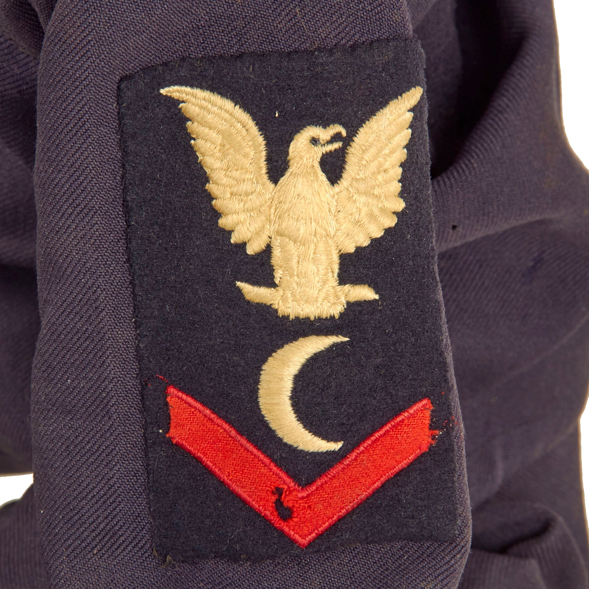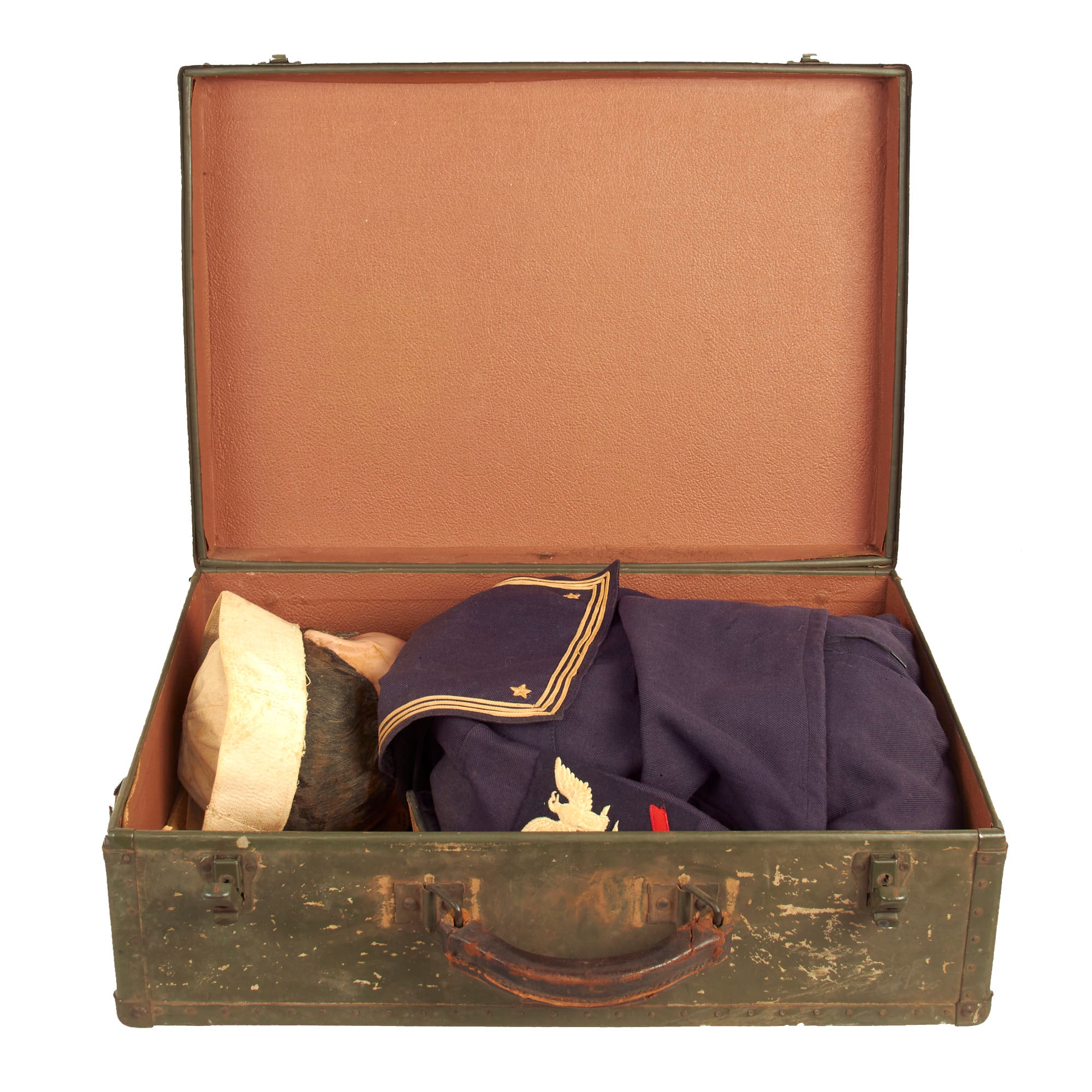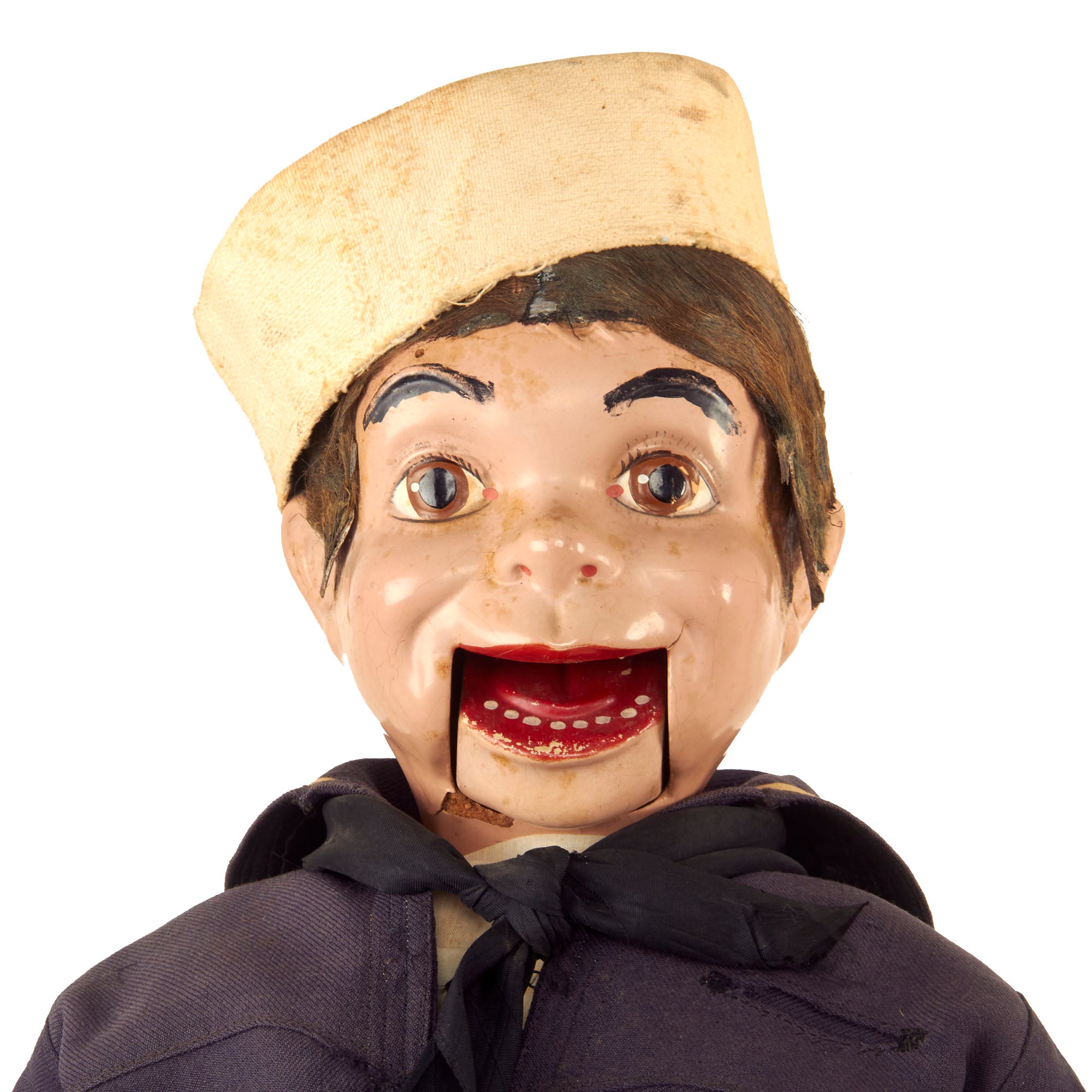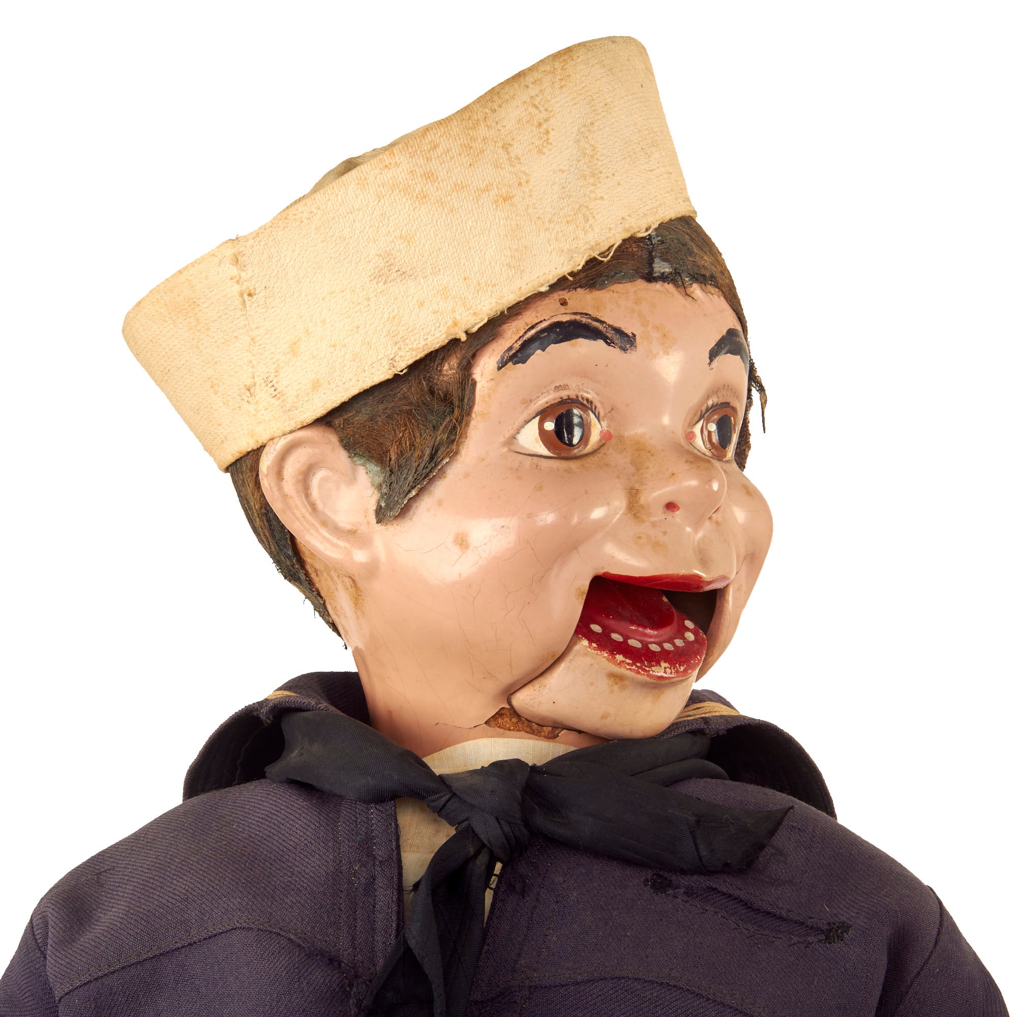 Original item: One-of-a-kind. William E. Schackelford served as Chief Steward aboard the USS Teton (AGC-14) during World War Two. He was a writer, poet, lyricist, singer and a Ventriloquist. Included in this set is his original WWII manufactured Ventriloquist Dummy who is dressed in a Navy uniform with the rank of Steward 3rd Grade. The dummy or "Ventriloquist figure" is fully operational with a moving moth and head. It is constructed of mostly of wood with stuffed fabric legs and arms. It measures approximately 34 inches tall and comes in the original carry case which measures 20" x 14 1/2" x 7" and was manufactured by Hartmann as the U.S. Navy Seapack. Of particular interest is that one of the large photographs included in the photo album is of Schackelford performing on stage with this very dummy.