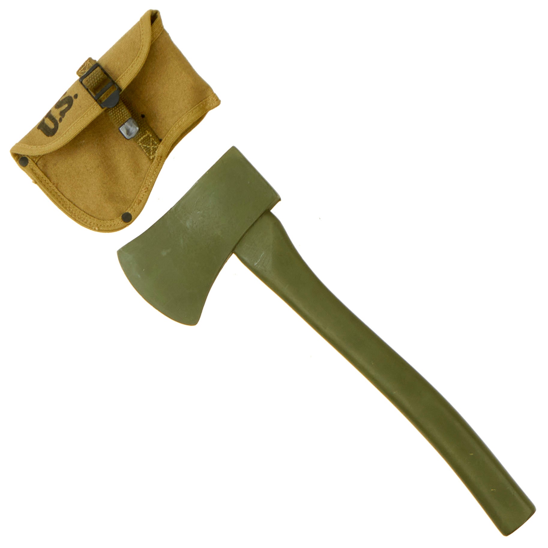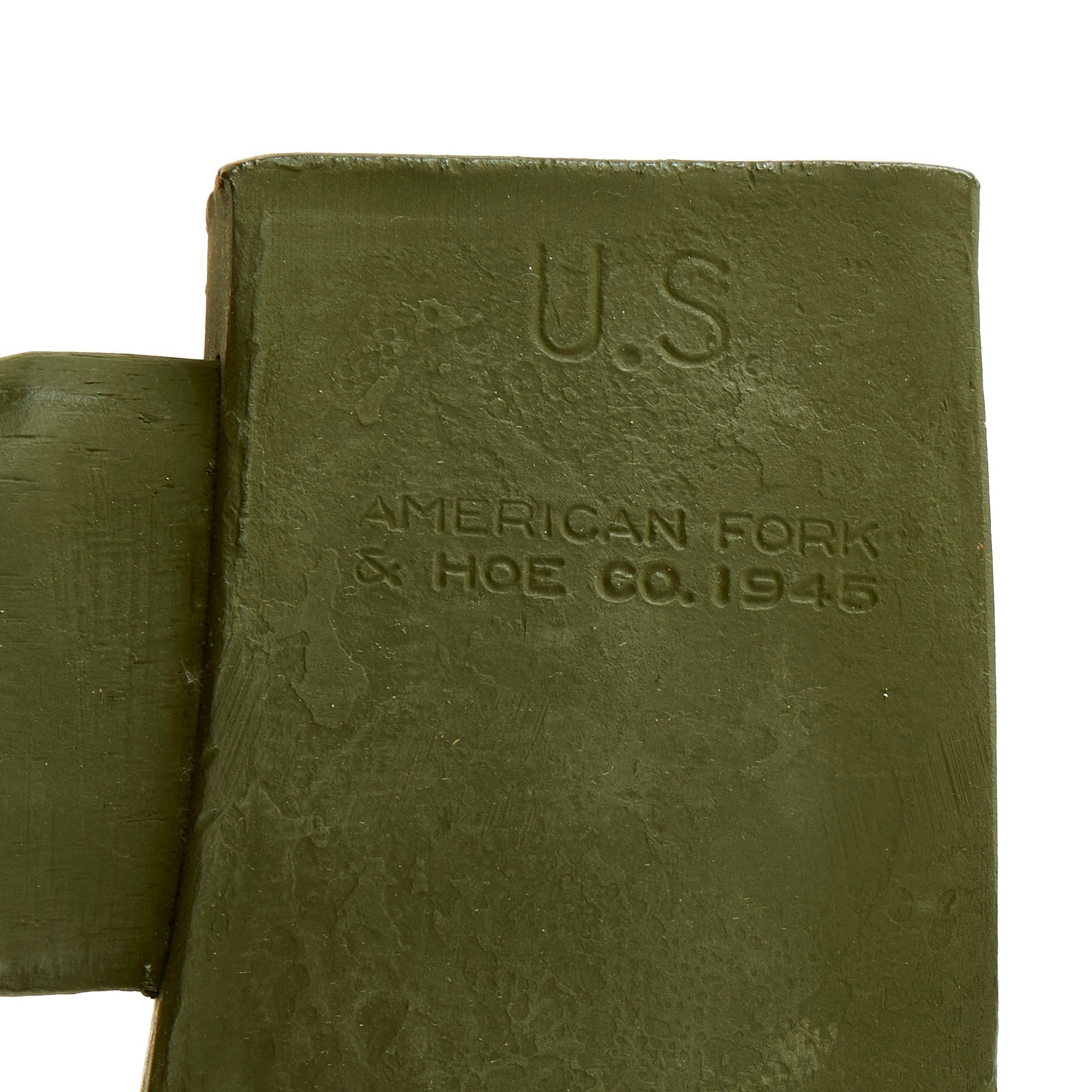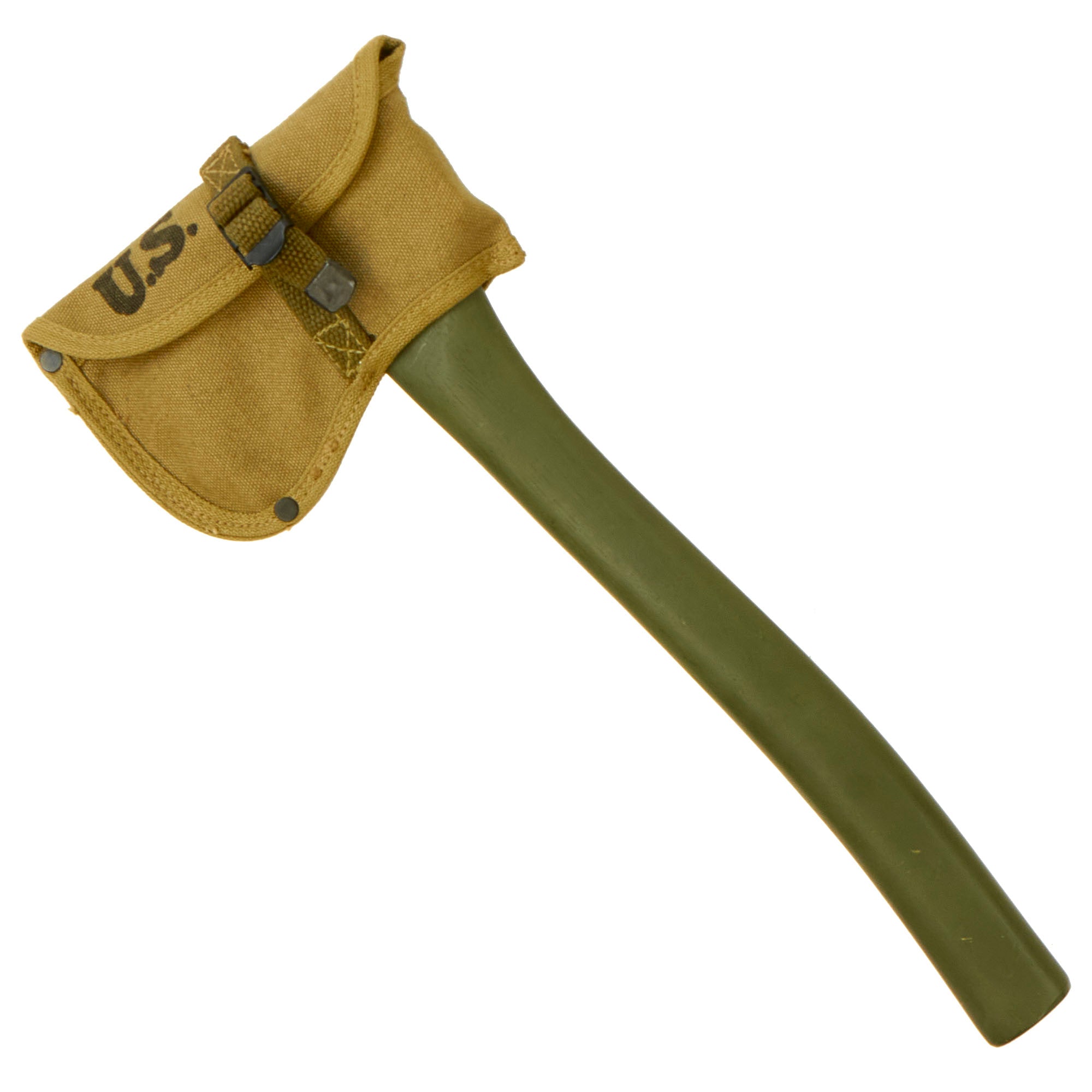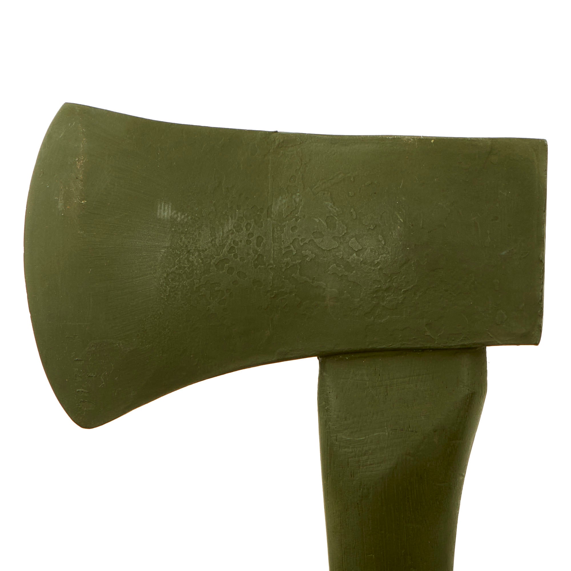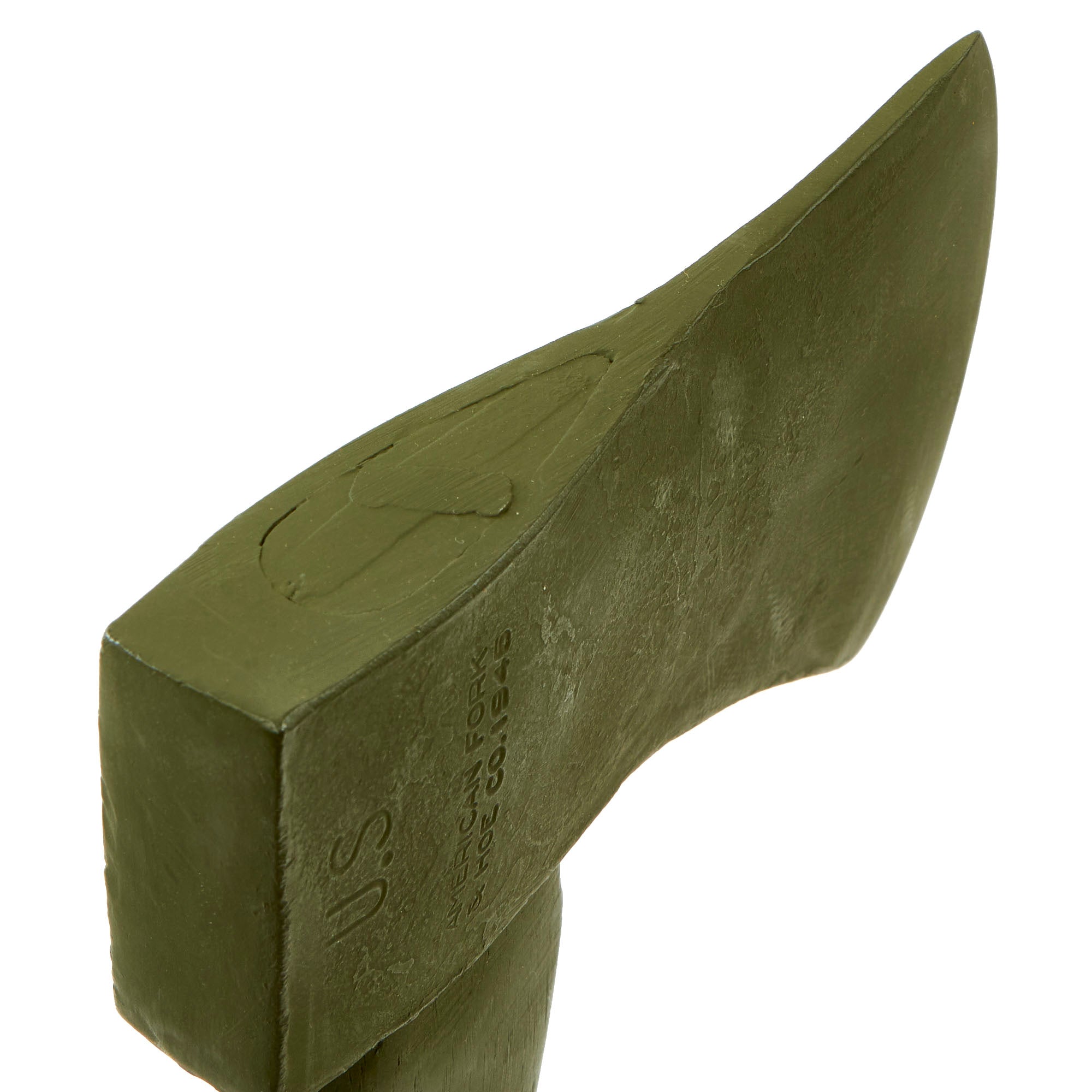 The axe is in wonderful condition and shows no signs of use. It still retains the original green paint on both the head and the wood handle which presents itself without any cracks. The cheek of the head is still clearly marked with U.S. / AMERICAN FORK & HOE CO. 1945.