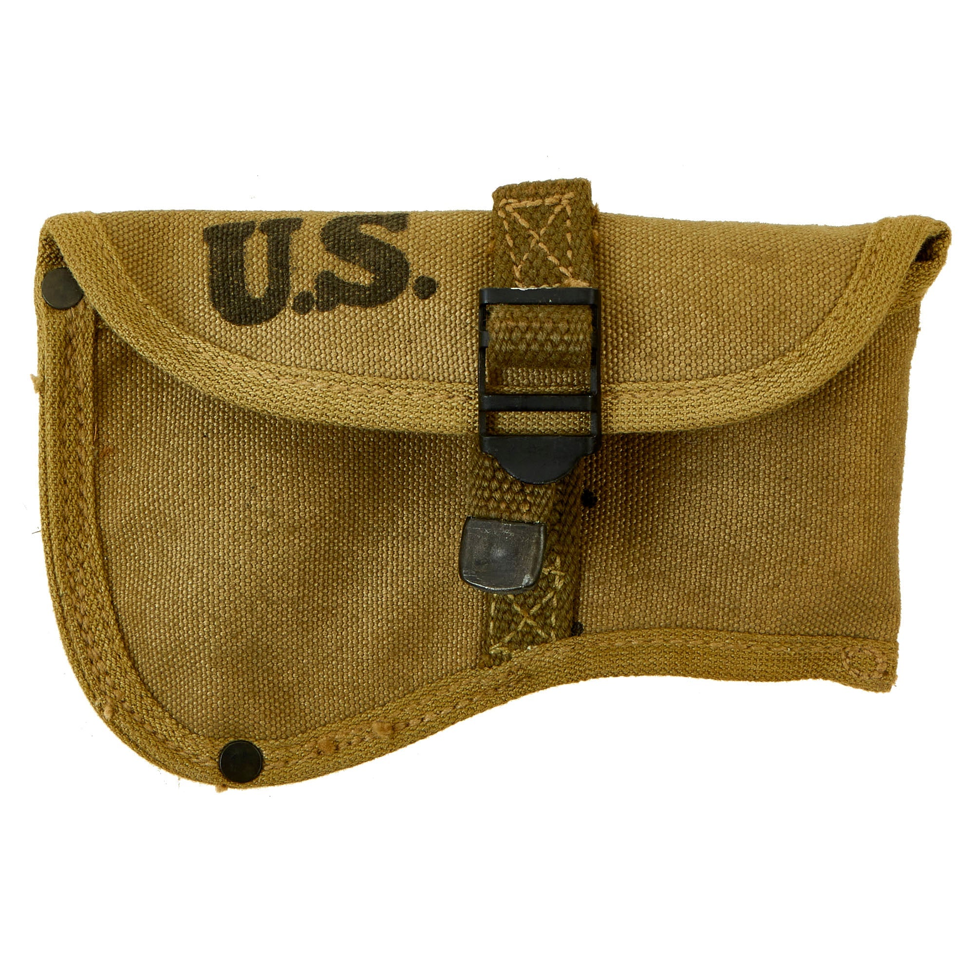 Original Item: Only One Available. This is an excellent example of an unissued M1910 hand axe that would be considered “new old stock”. These light duty axes were issued to each and every field medic and one per infantry squad. They were issued with an OD green cover and worn on the web belt. The most common encountered examples were made by the well known Plumb, while this one is the scarcer American Fork & Hoe made.