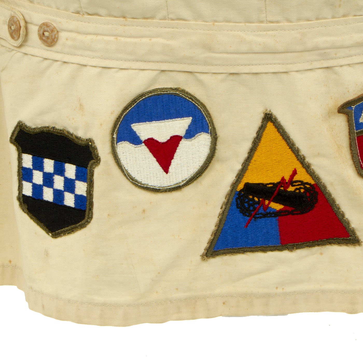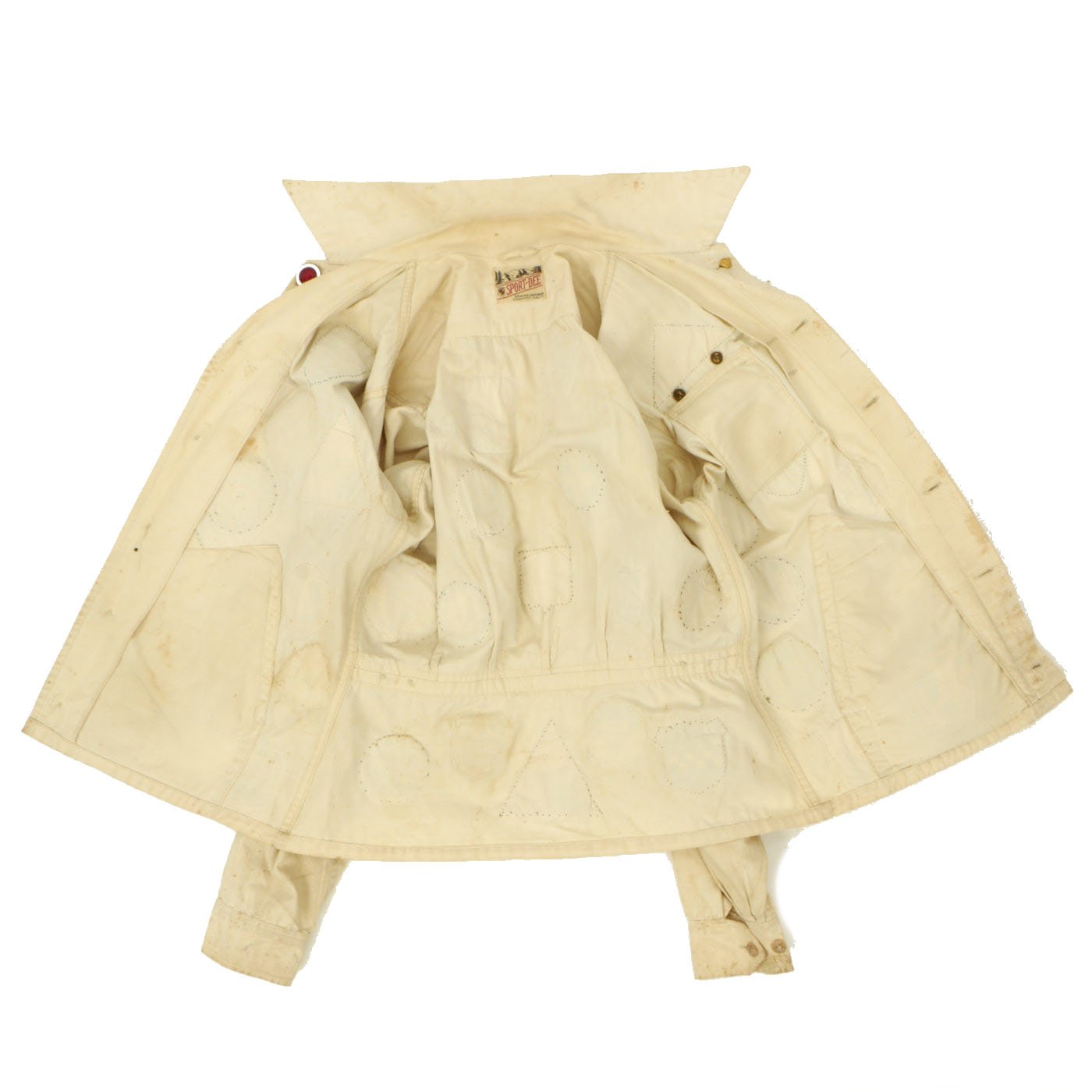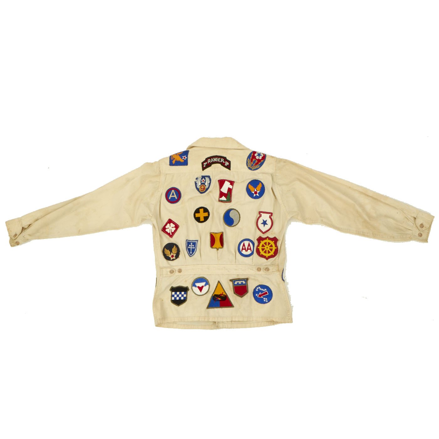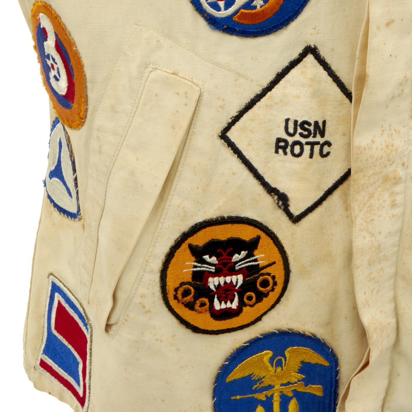 Original Item: One-of-a-kind. This is a civilian made "Sport-dee" M41 style white cotton jacket which came to us third party from the family of a World War Two Army nurse veteran who hailed from Kentucky. It has over 40 original patches stitched to it as well original pins and insignia. There are also 14 unattached patches which were stuffed into the pocket.