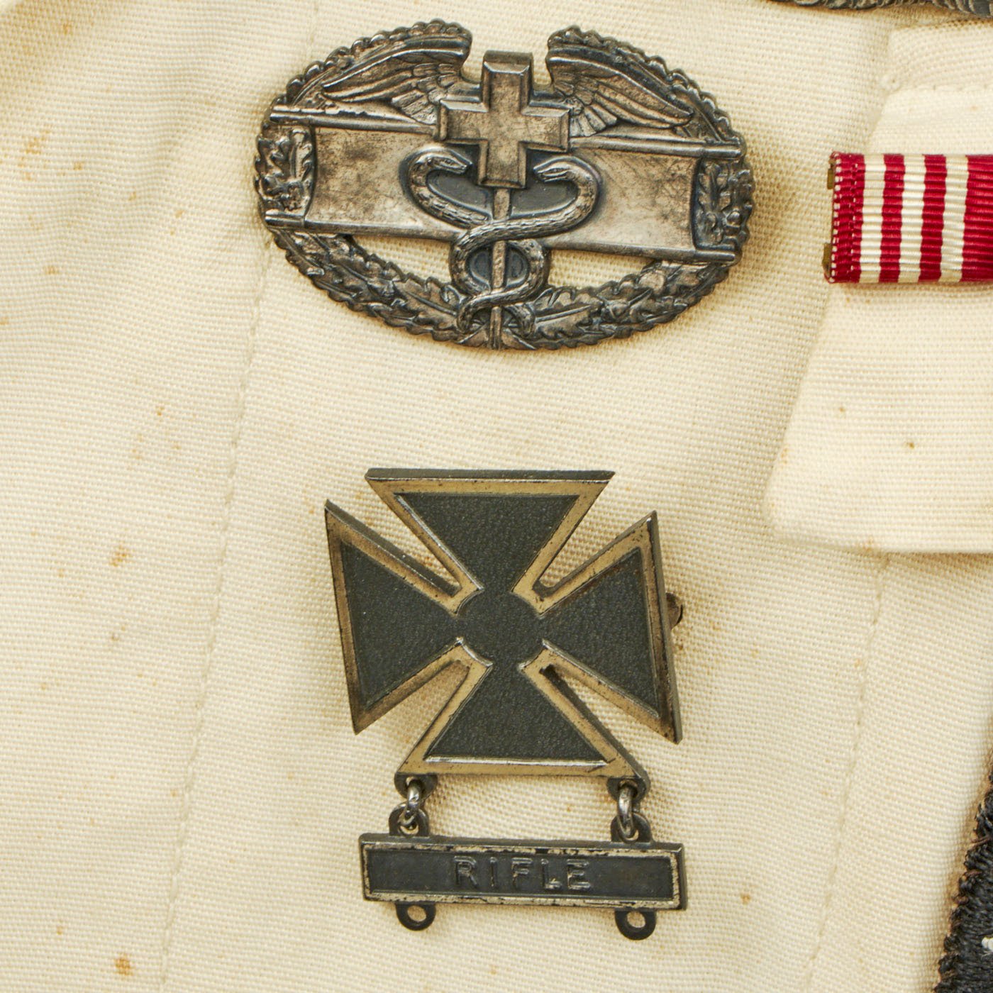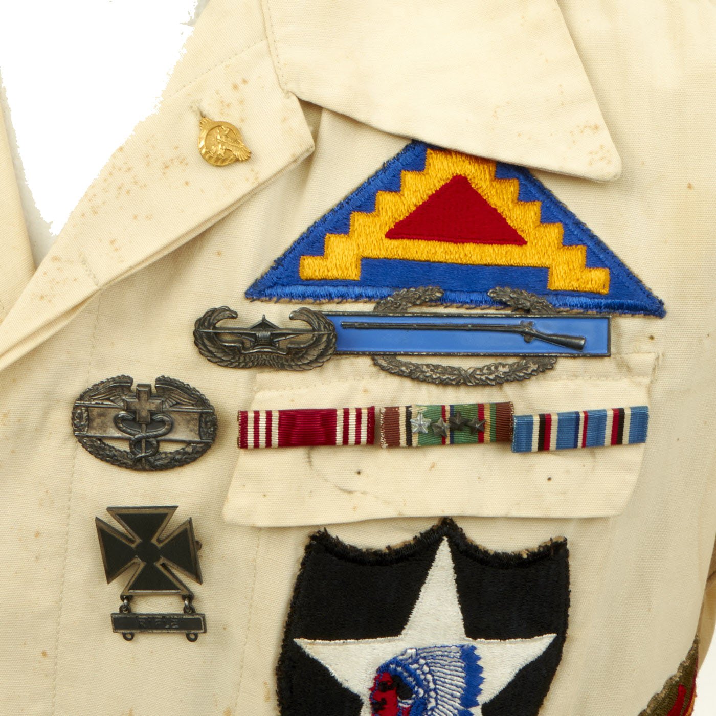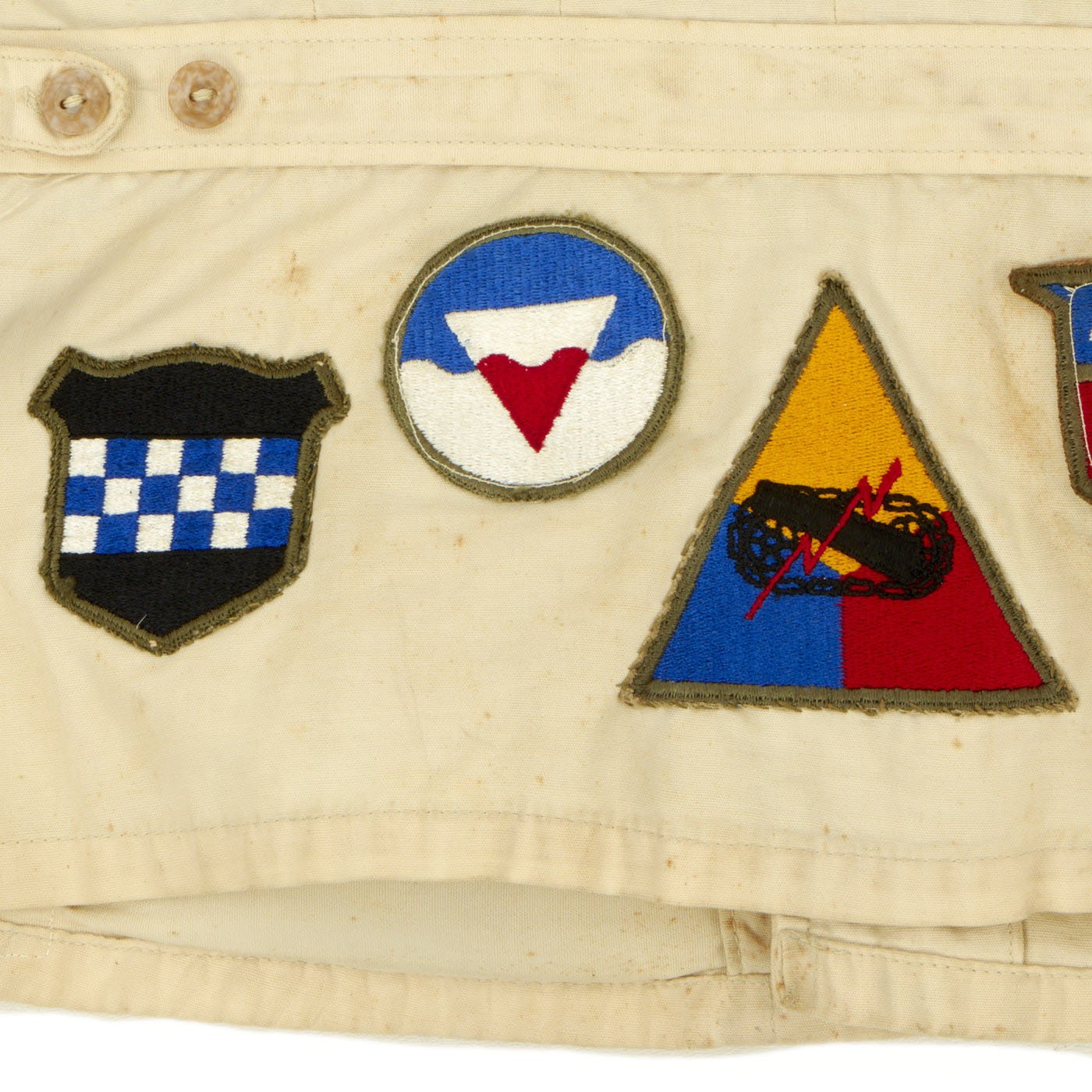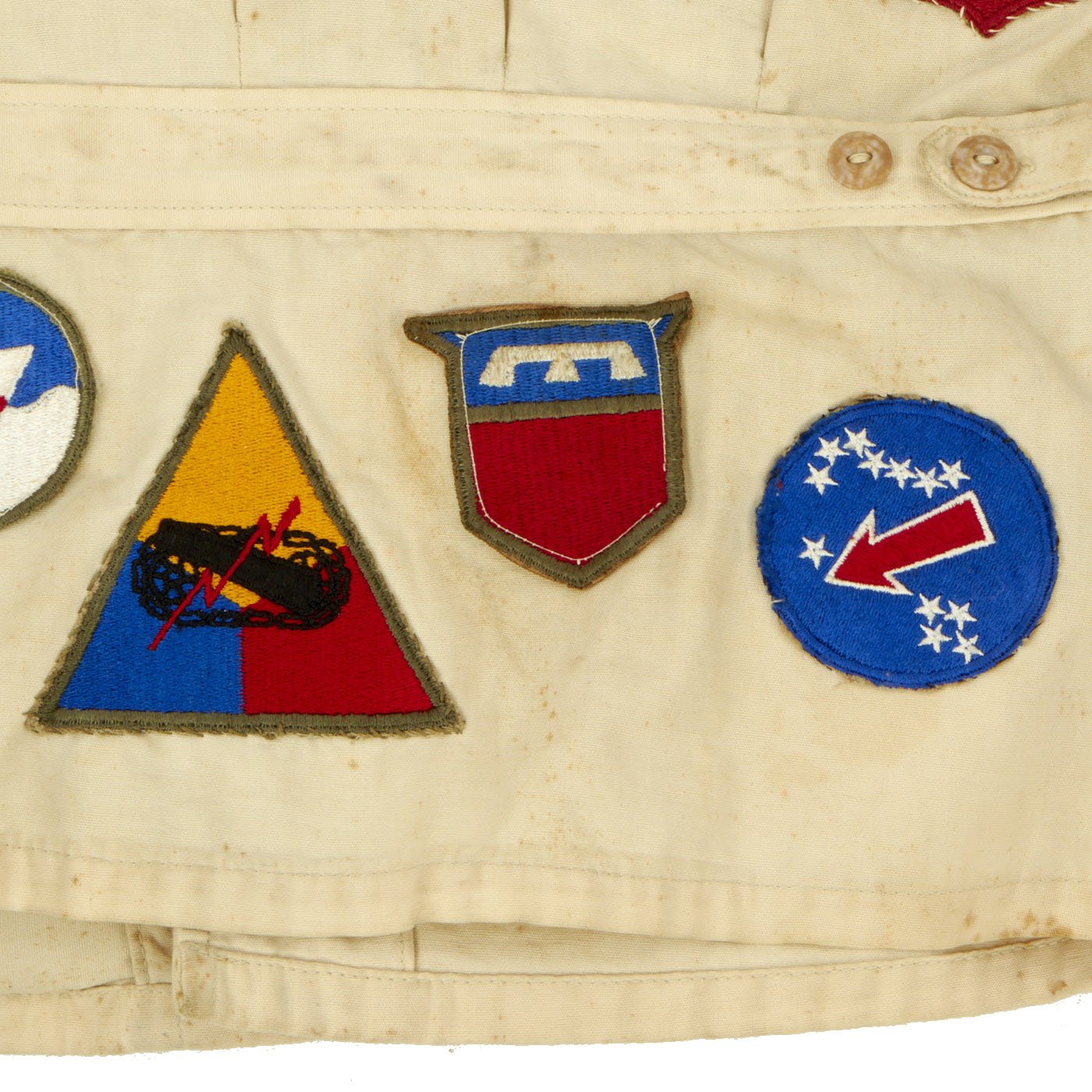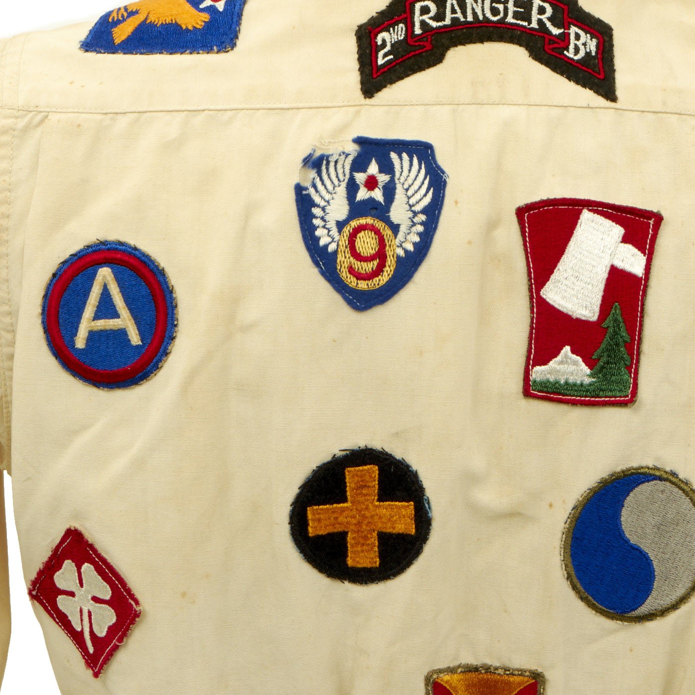 Original Item: One-of-a-kind. This is a civilian made "Sport-dee" M41 style white cotton jacket which came to us third party from the family of a World War Two Army nurse veteran who hailed from Kentucky. It has over 40 original patches stitched to it as well original pins and insignia. There are also 14 unattached patches which were stuffed into the pocket.