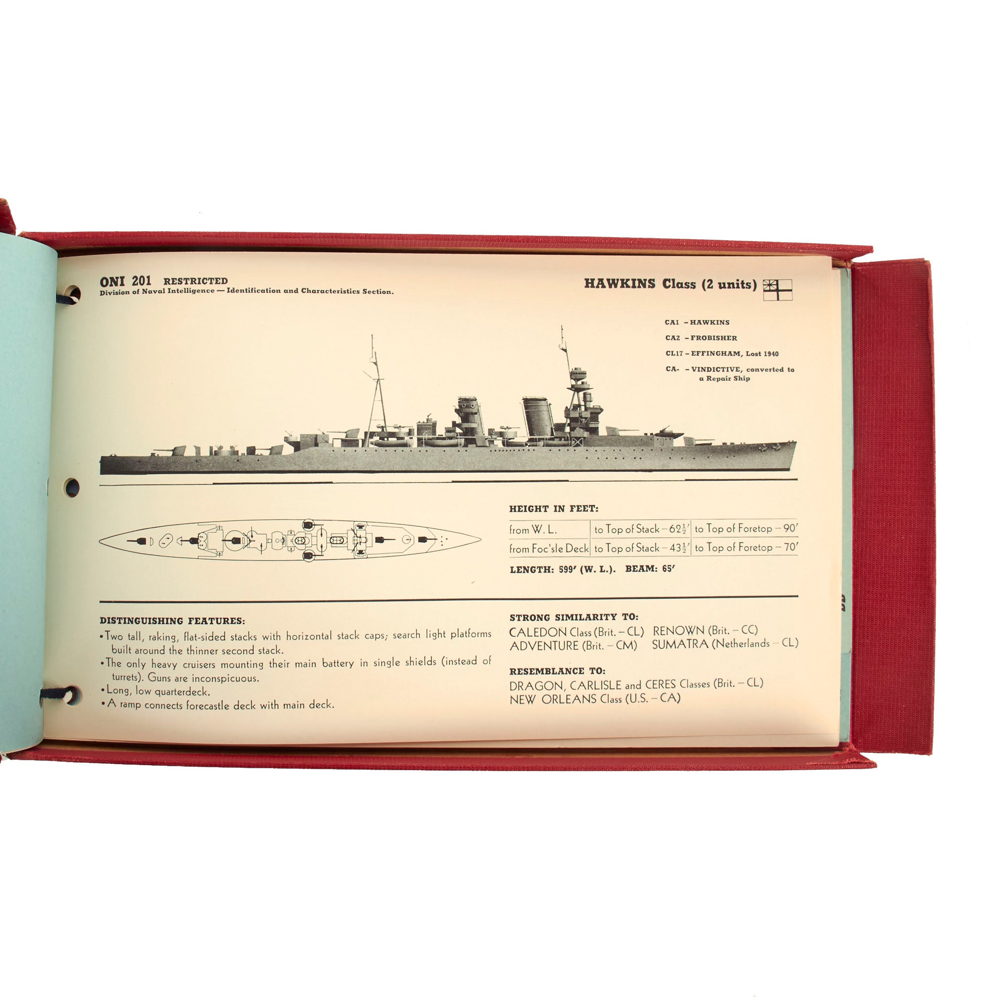 Original Item: Only One Available. Now this is a fantastic condition Office of Naval Intelligence identification book for British Naval Vessels. The book is in wonderful condition and does not appear to have ever been used, or was just very lightly used. This type of knowledge is very important when it comes to large scale warfare. The battlefield, seas and airspace get heavily clouded with friendly and enemy vehicles, so it is important to be able to discern them.