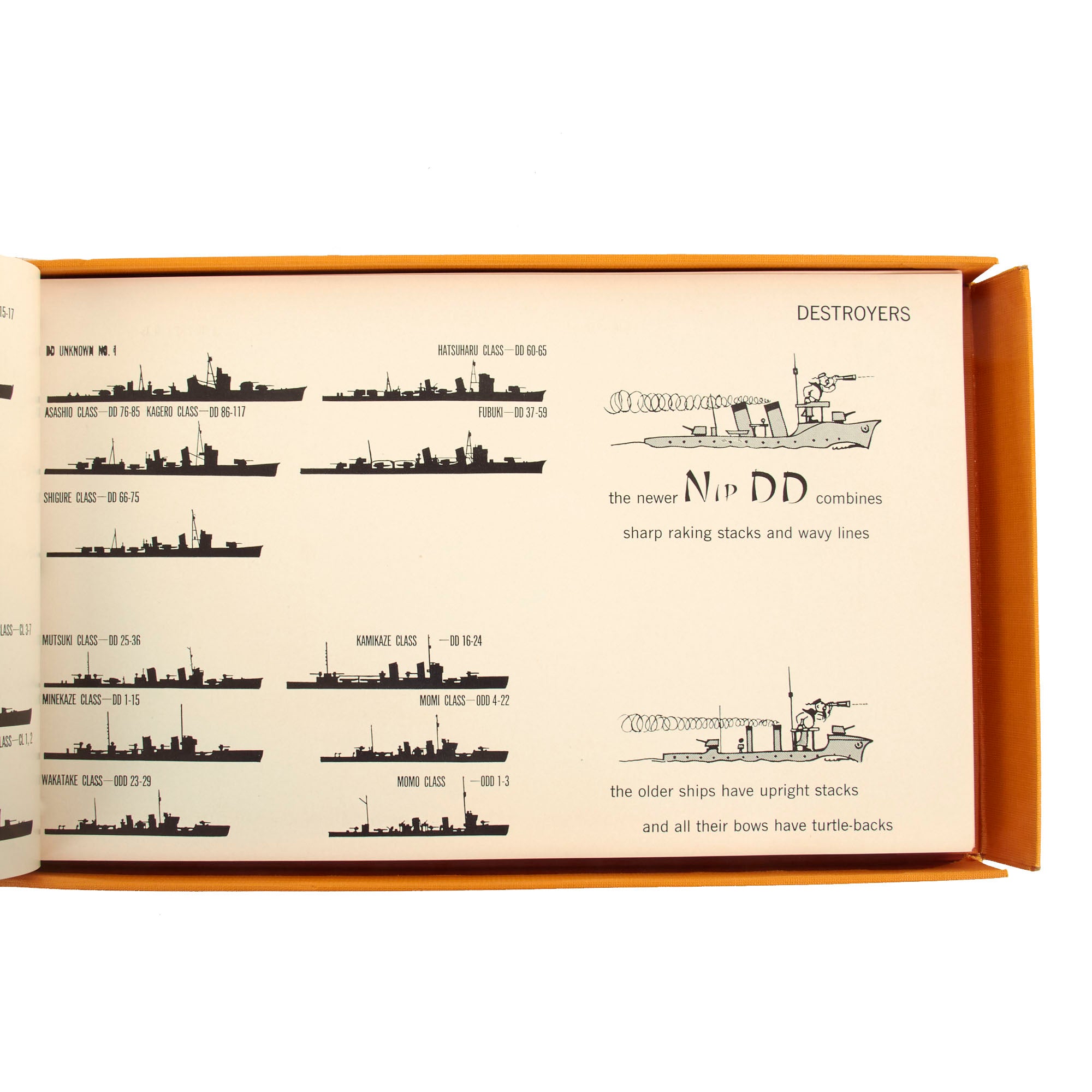 Original Item: Only One Available. Now this is a fantastic condition Office of Naval Intelligence identification book for Japanese Naval Vessels. The book is in wonderful condition and does not appear to have ever been used, or was just very lightly used. This type of knowledge is very important when it comes to large scale warfare. The battlefield, seas and airspace get heavily clouded with friendly and enemy vehicles, so it is important to be able to discern them.