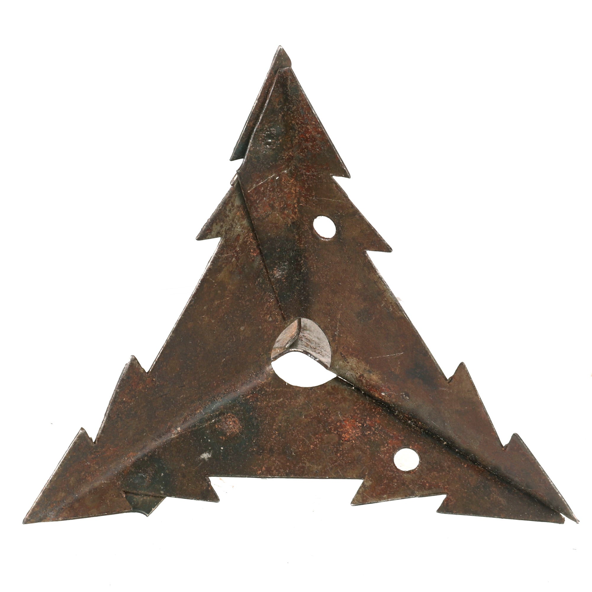 Original Item: Only One Available. This is a wonderful example of a “Christmas Tree” shaped caltrop as used by the Office of Strategic Services, the predecessors of the now Central Intelligence Agency. The caltrop shows heavy oxidation but has a lovely patina. This is an American made, used and issued example and is not to be mistaken for being of German or Dutch origin.