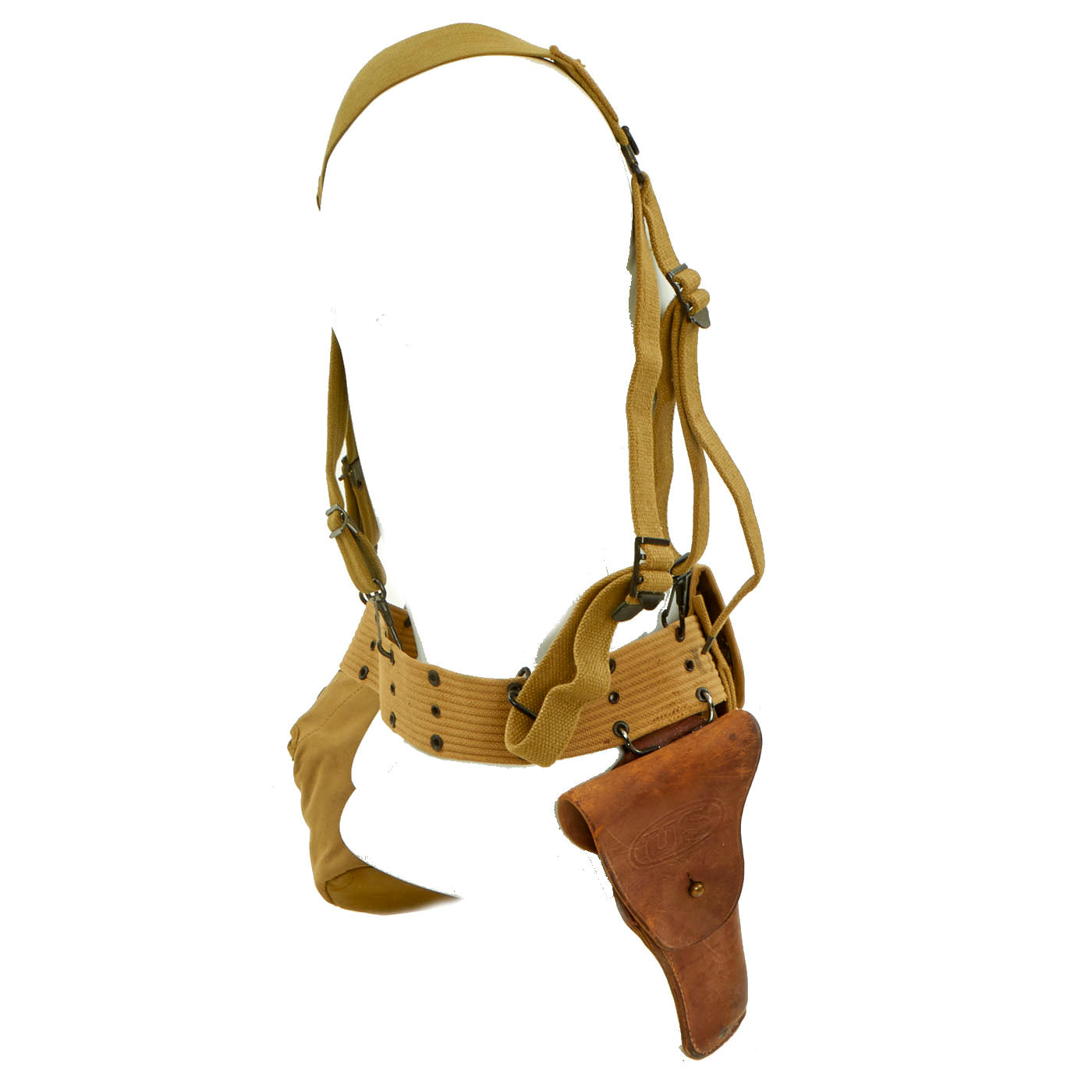 Original Items: Only Ones Available. A set of WWII M-1936 Field Equipment, as issued to officer’s or any soldier armed with a 1911 Pistol or M1 Carbine during WWII. All pieces are in very good condition. This is the standard issue “Rig” as issued to the U.S. Officers, Vehicle Crewman, Paratroops, etc during WWII. All pieces are in =very good condition, especially considering their age.