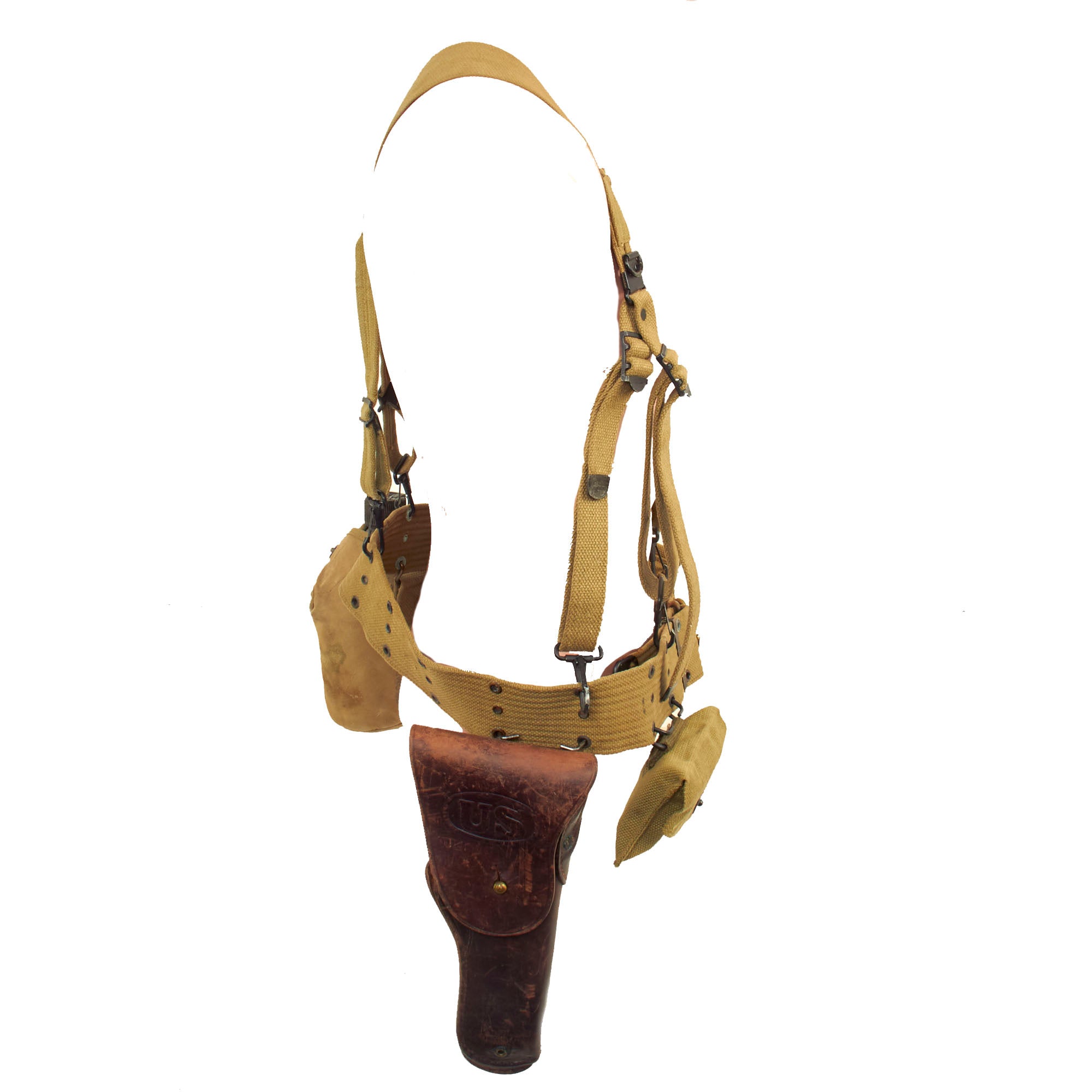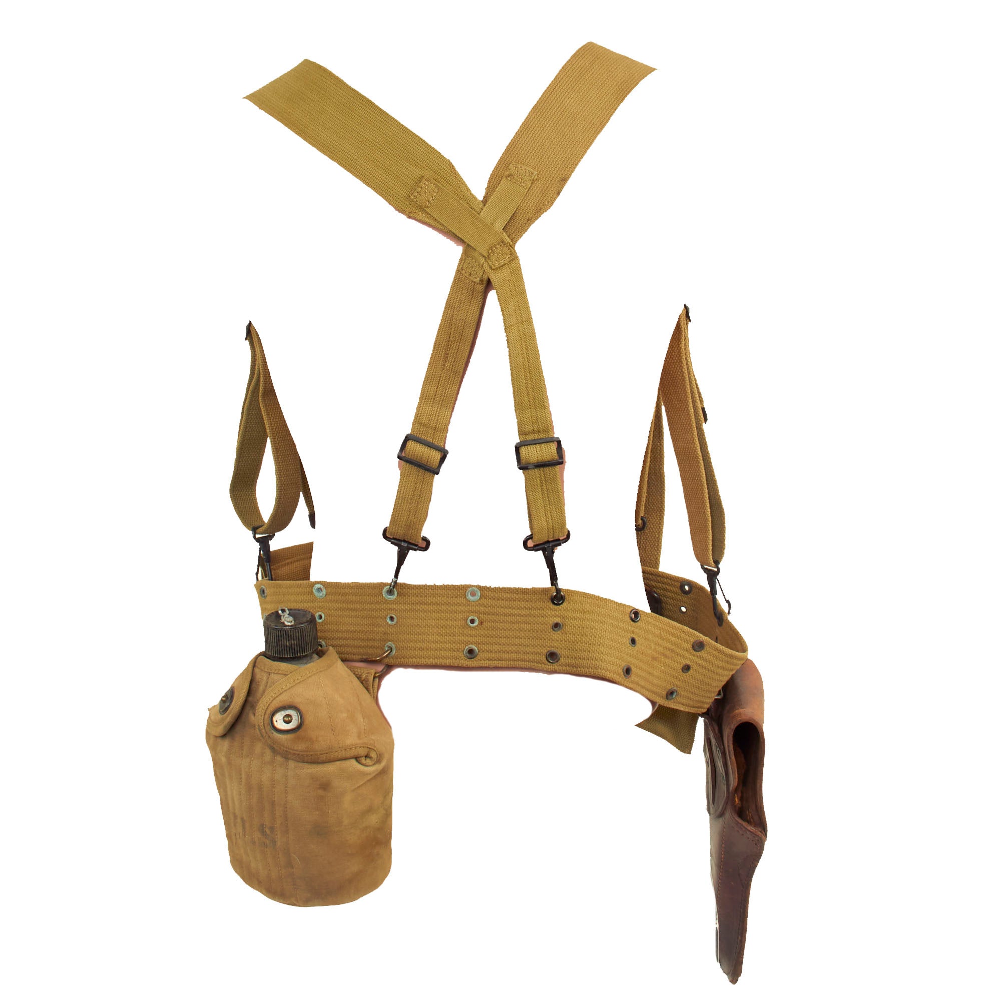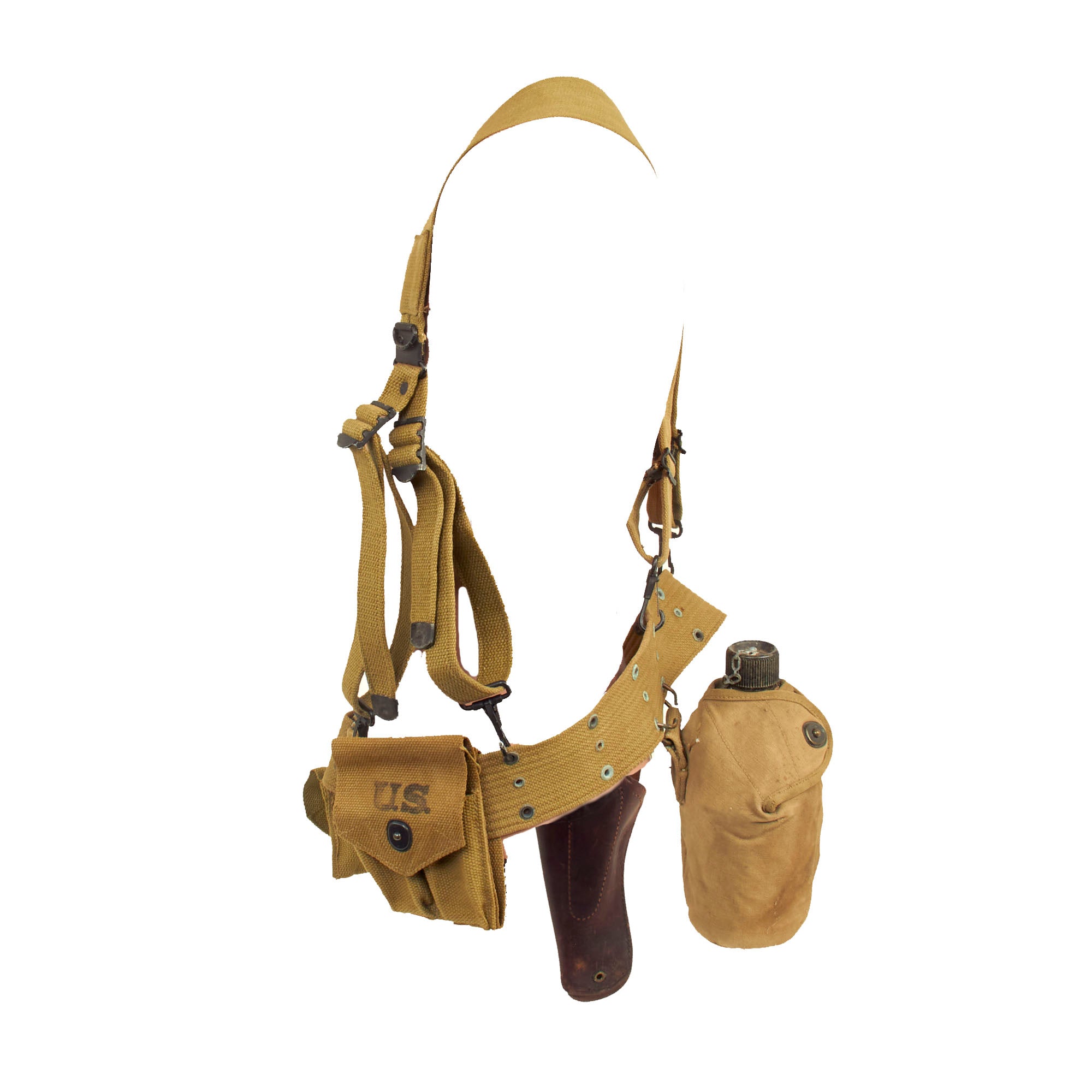 - Original WWII issue M1936 pistol belt stamped U.S.: The US stamp is really faint and the belt itself is free of damage.