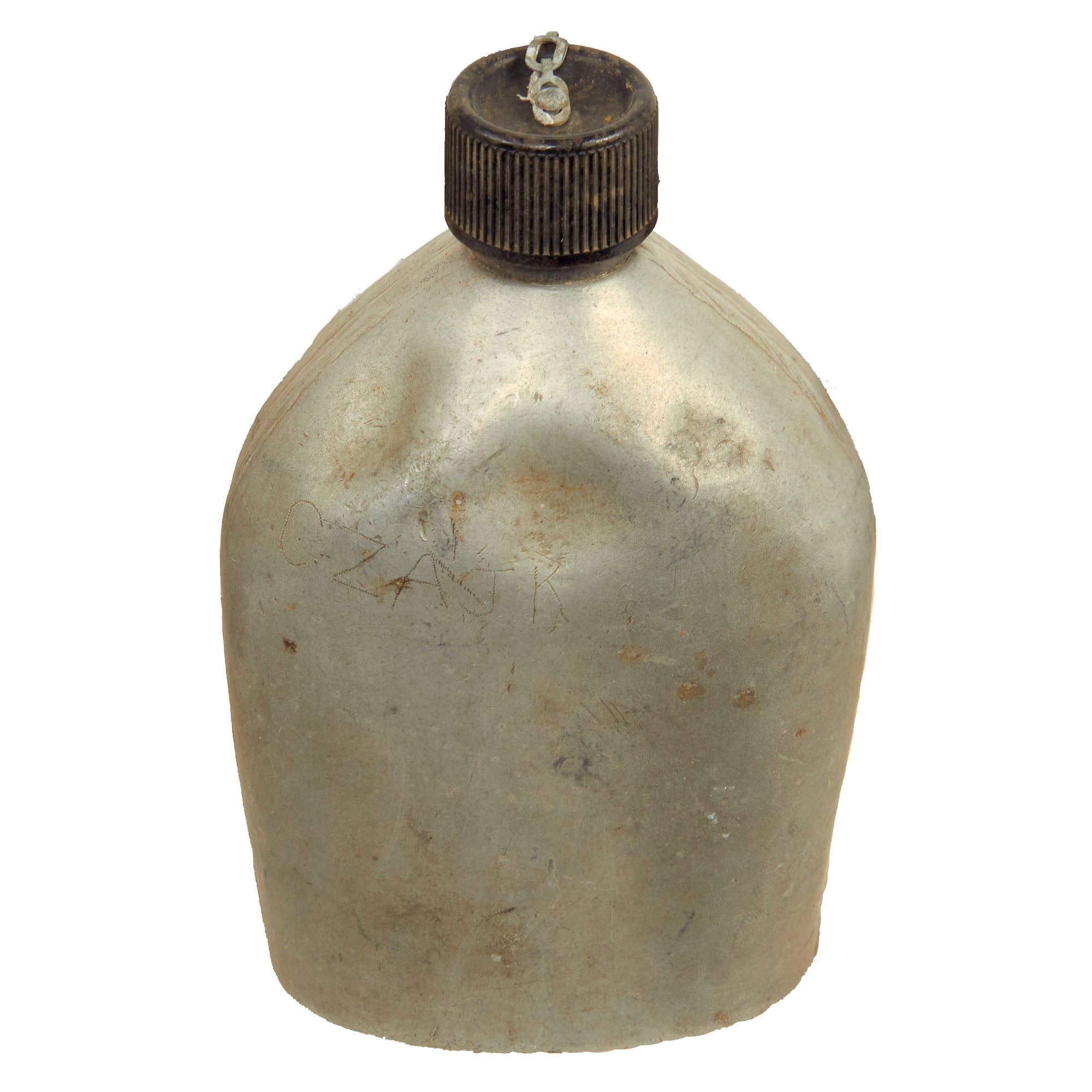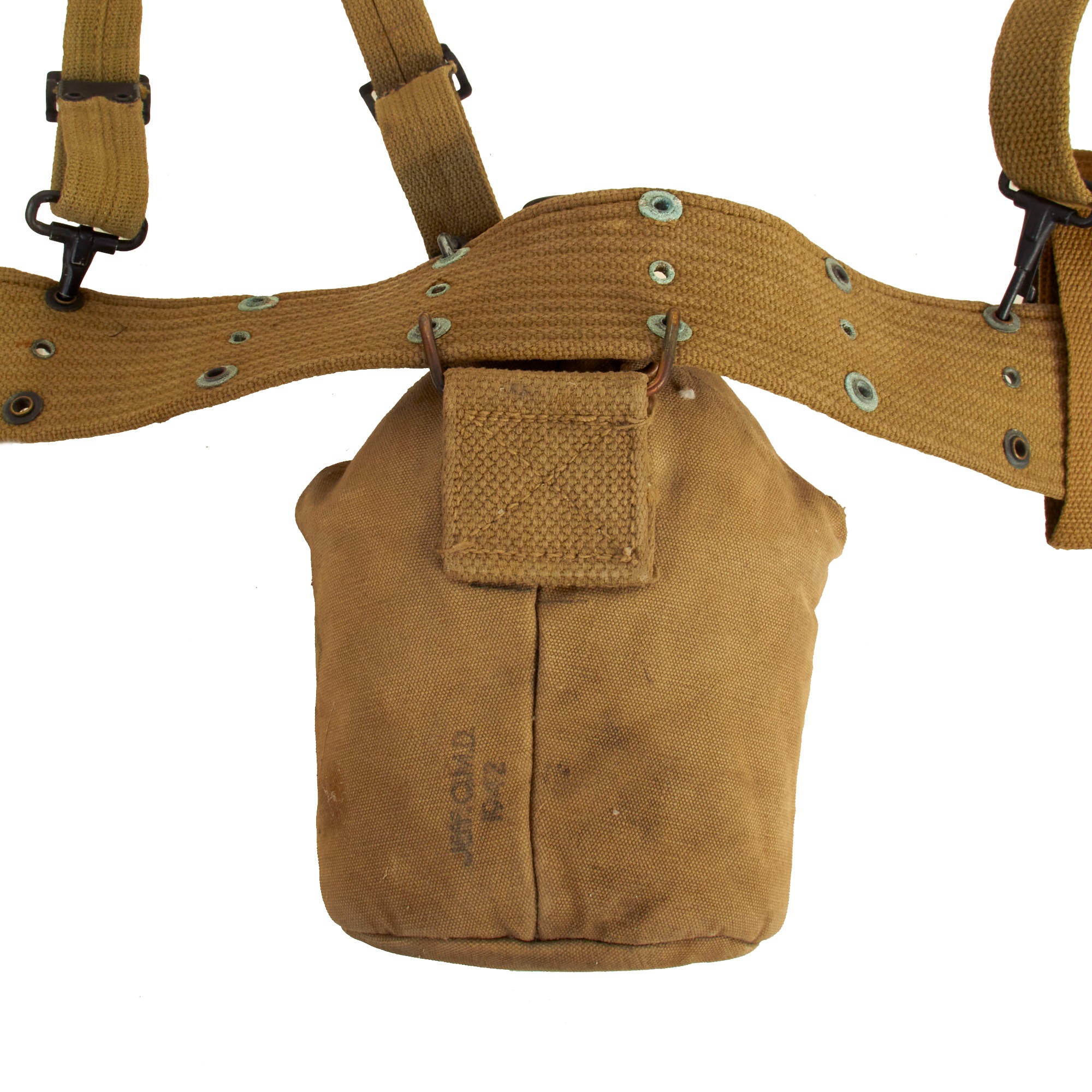 - Original WWII issue M1910 Canteen Set With Pouch by Jeff QMD dated 1942: The set is free of any damage and the canteen is named. Perfect for research!