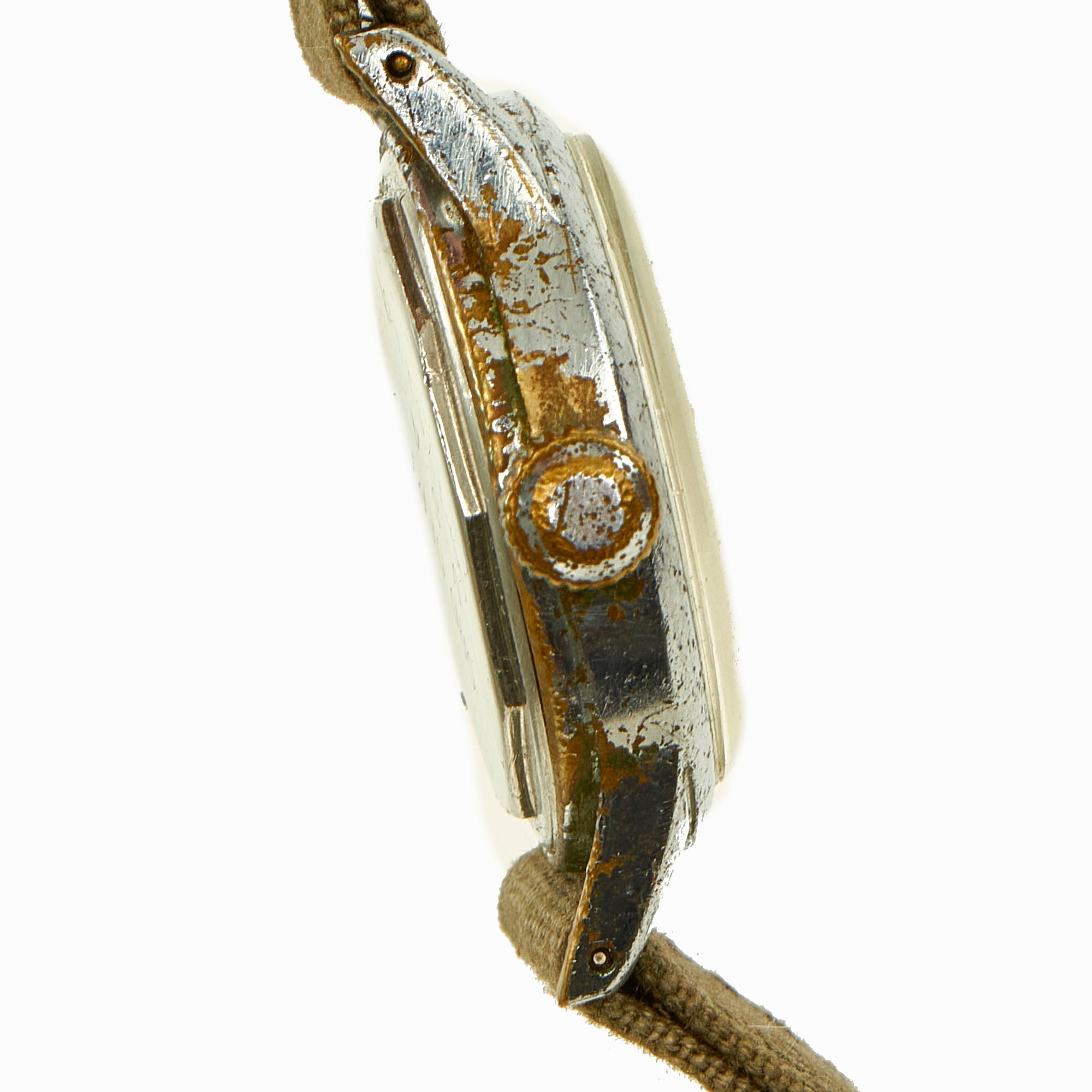This watch is definitely in very good shape. The metal components are nice, with most of the scratching present towards the bottom of the case. The watch runs smoothly, and appears to keep good time, though it is important to remember that the specification for wrist watches in WWII could be off by several seconds a day. The watch crystal is a modern plastic replacement made to original specifications.
