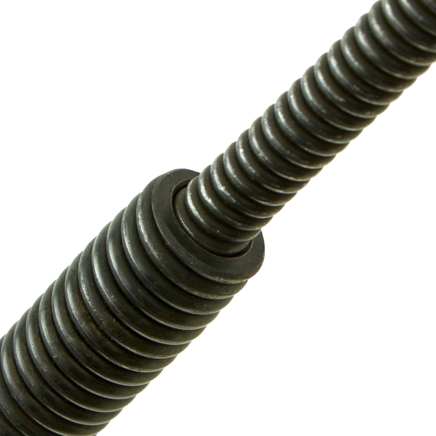 The spring cosh is constructed of two heavy concentric springs enclosed in a tubular steel handle with a diamond pattern grip and a hole at the skull crusher pommel for a leather thong. At the end of the smaller spring is a heavy metal knob which is the main striking element. When closed the cosh is 7” in length with a length of 17 ½” when extended.