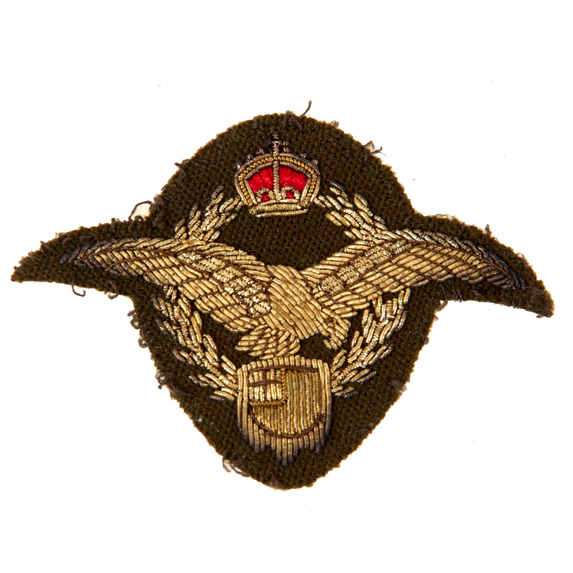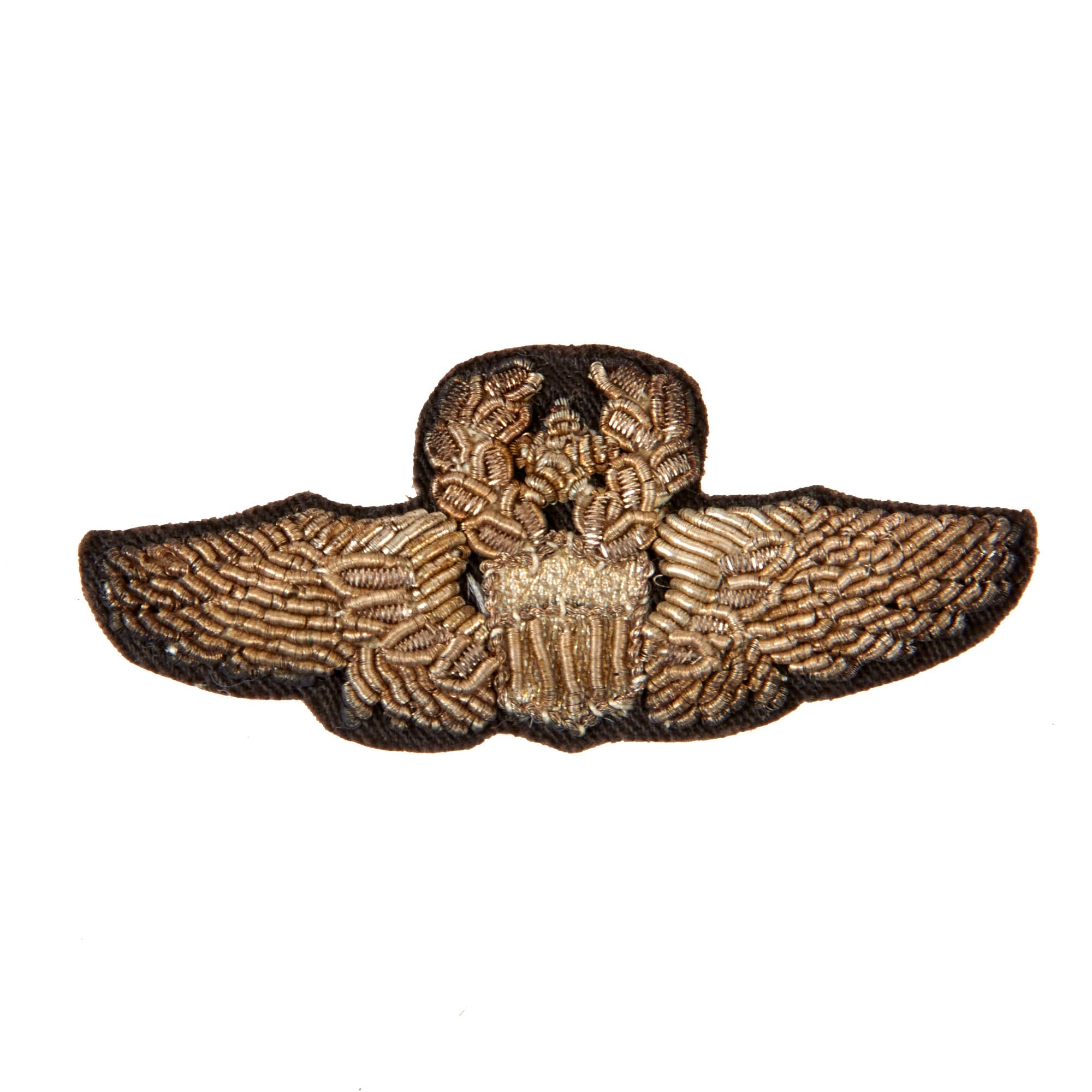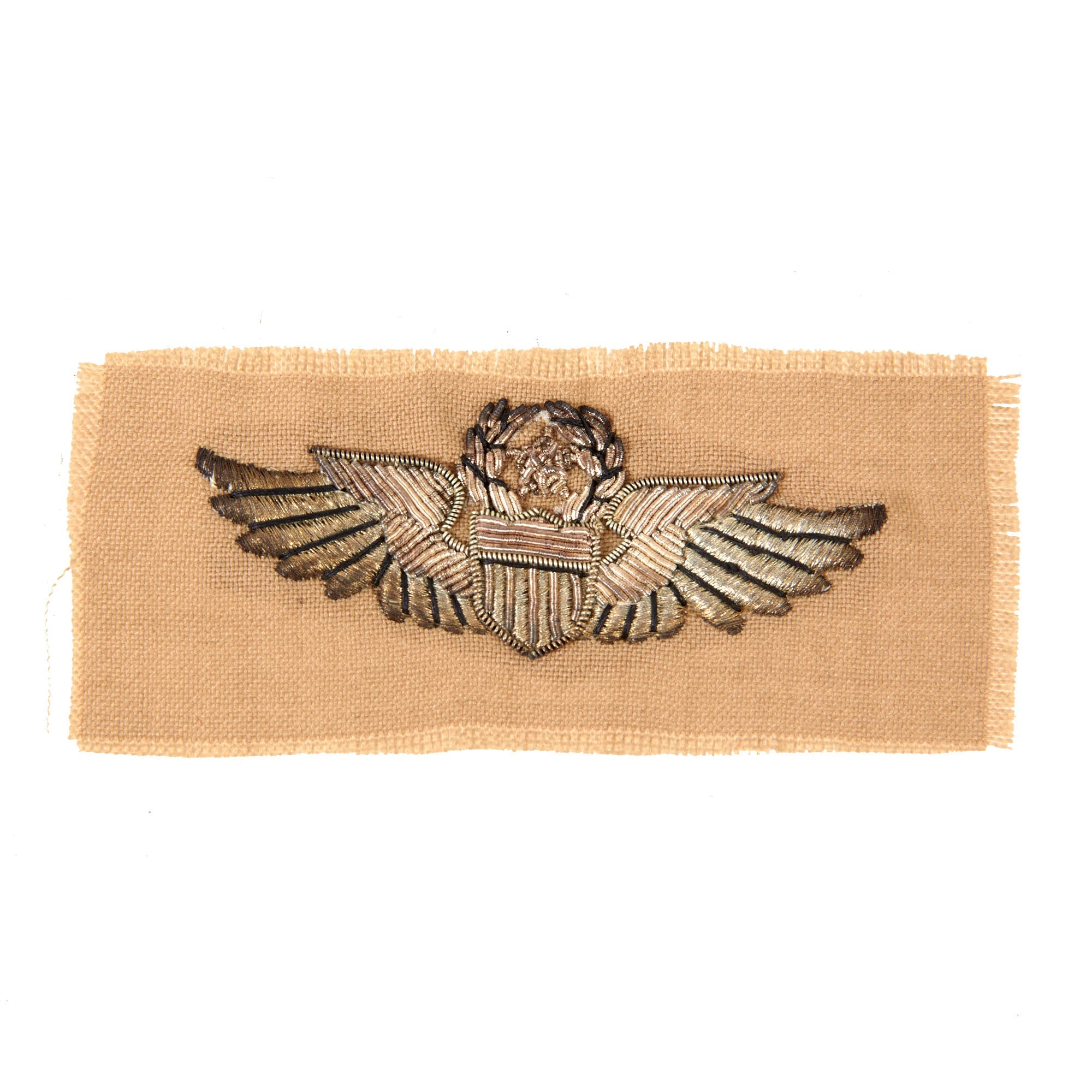 - Born’s two bullion Command Pilot wings on tan cloth backing.