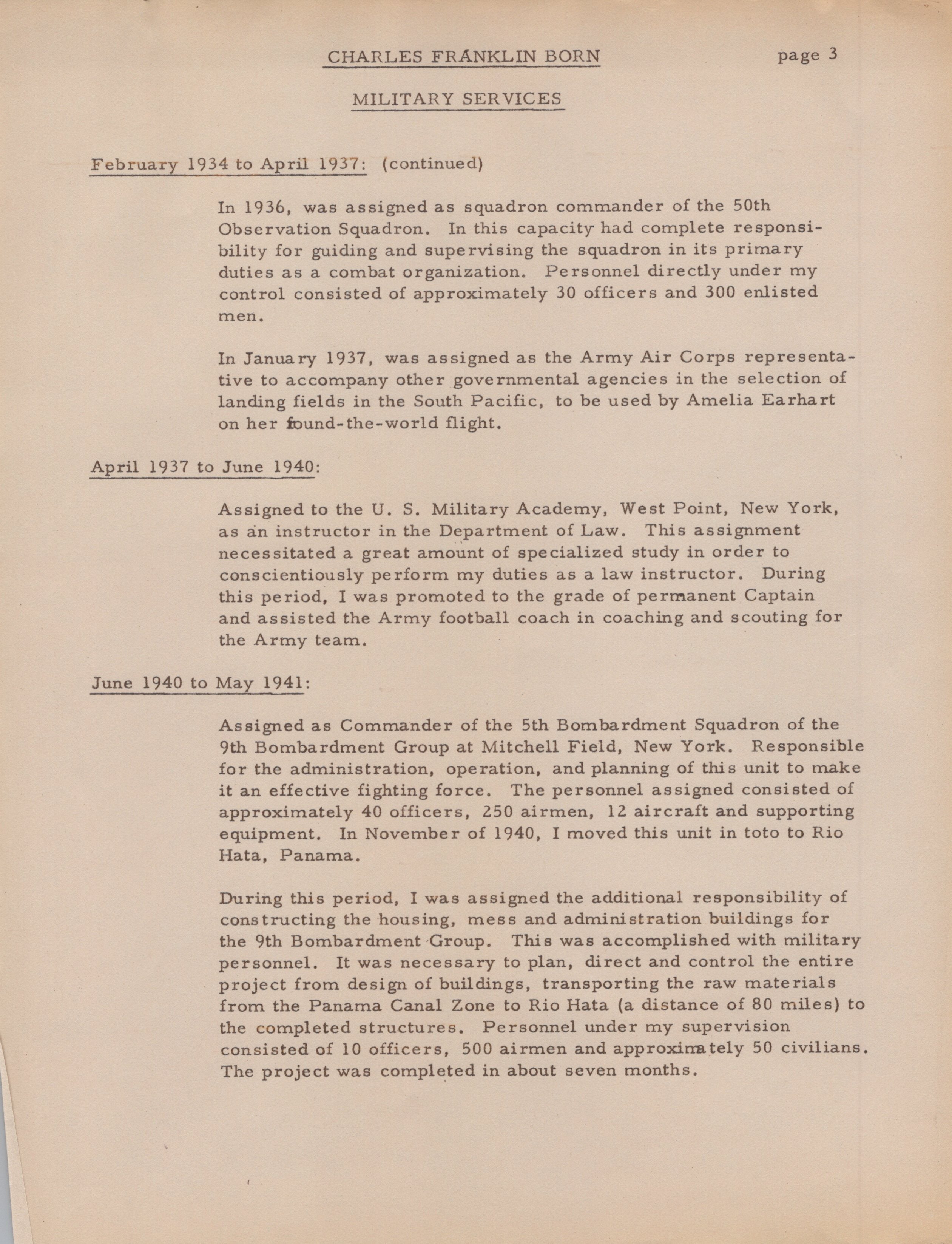 - Born’s Original 1934-dated Air Corps ID Card, at the rank of 1st Lieutenant. Rare document to find!