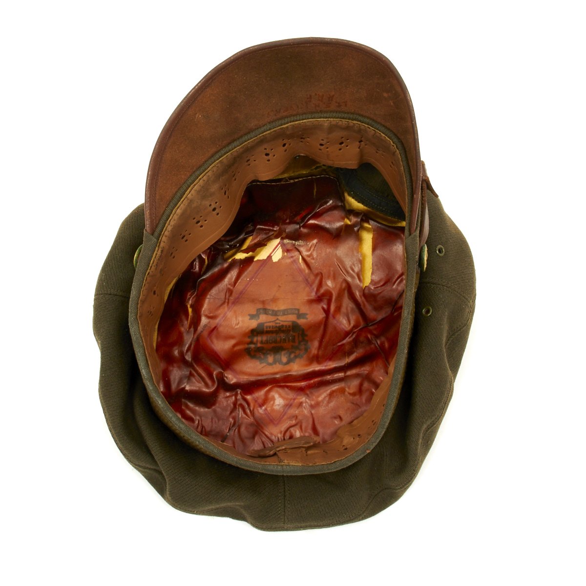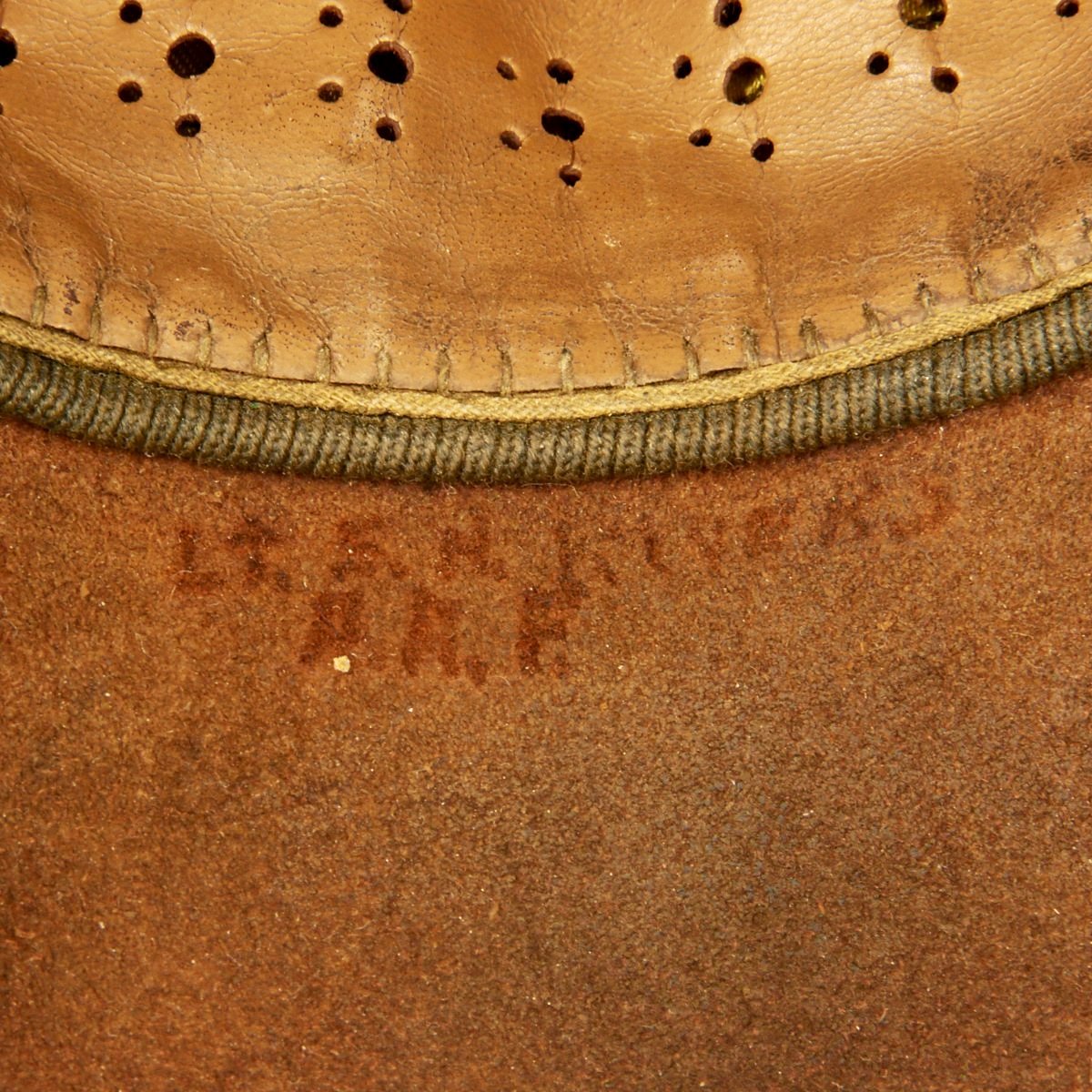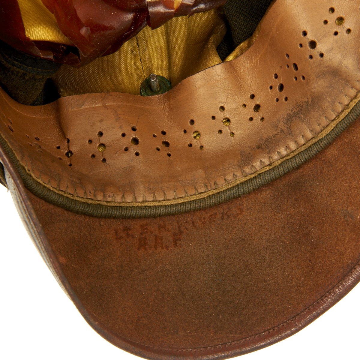 Lt. E.H. Rivers A.A.F Overall condition is good. Cap is still soft and supple, stitches intact and leather has not dried out.The lining has a few areas of damage but the sweatband is perfectly intact.