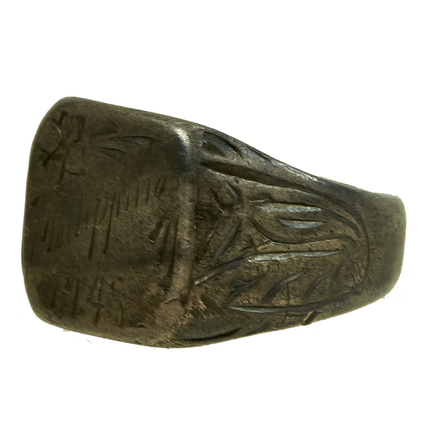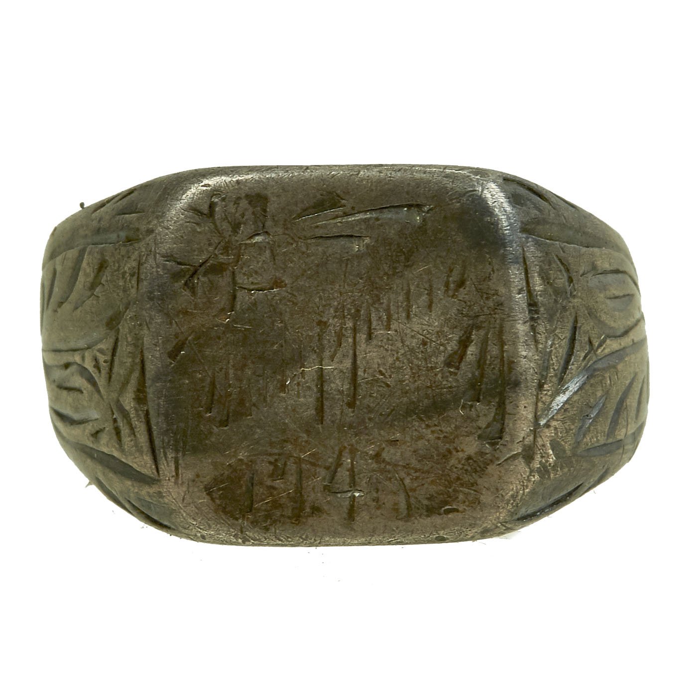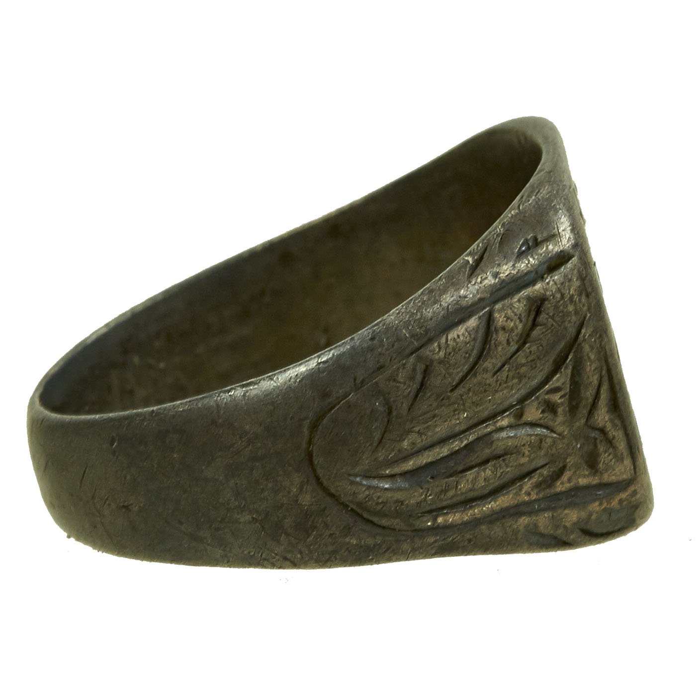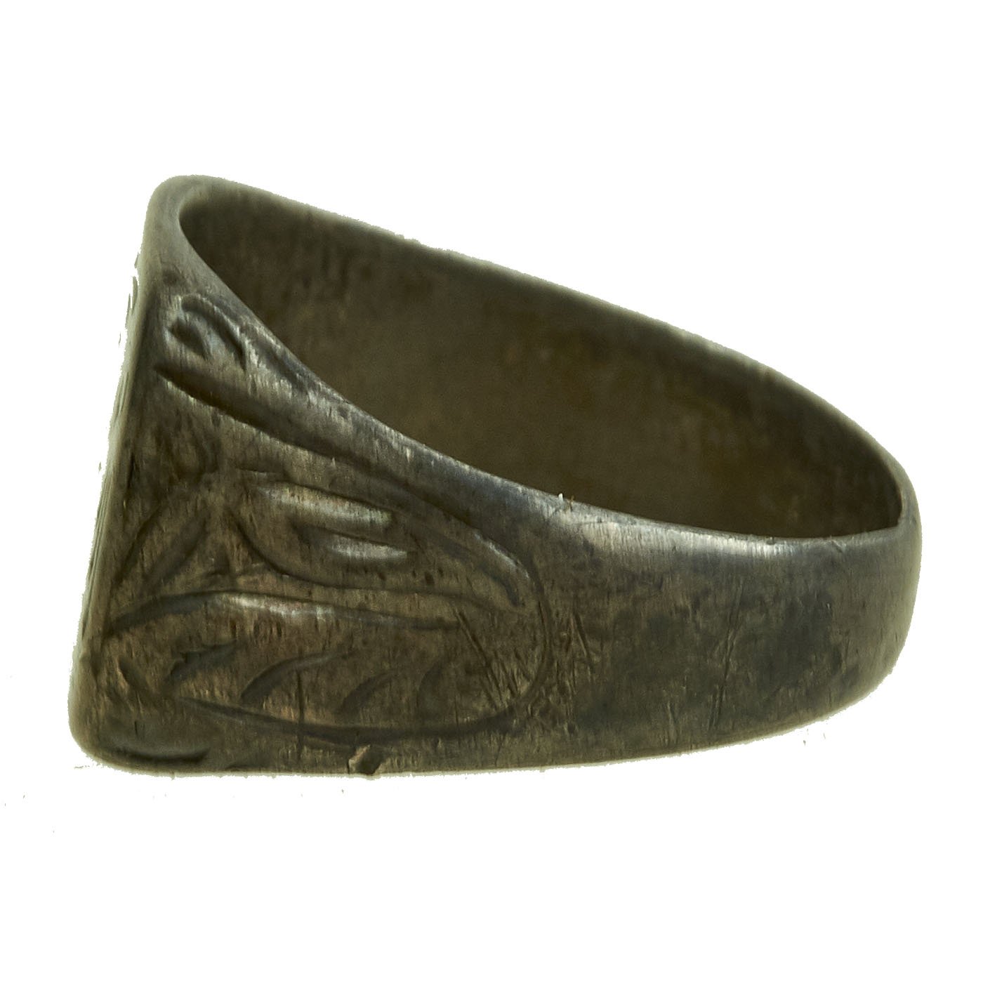 - White metal ring with BW initial to the front and a name in script inside and 1942 date. Approximately 20mm in diameter