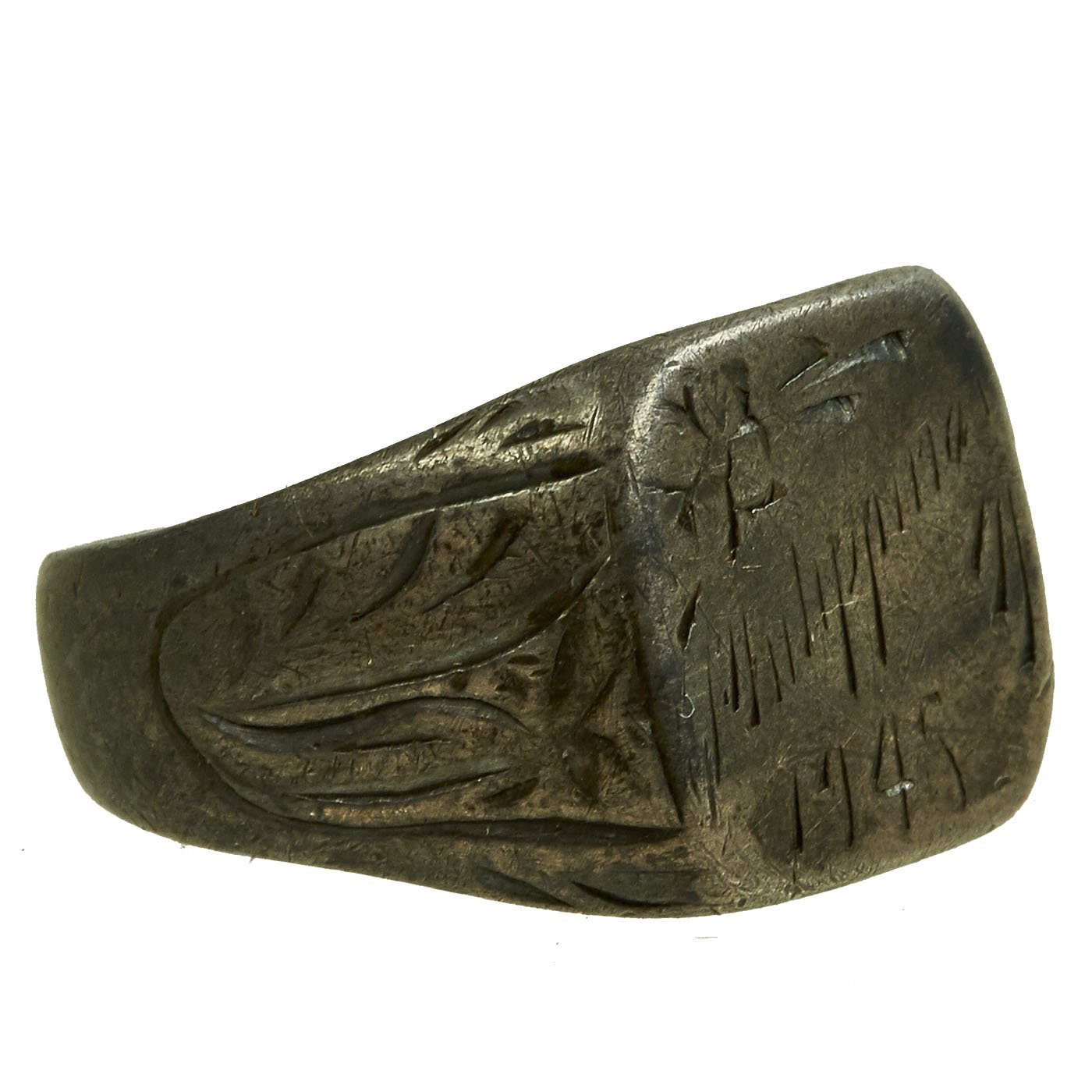 - Sterling silver ring with Philippines 1945 engraved across the center. Approximately 20mm in diameter