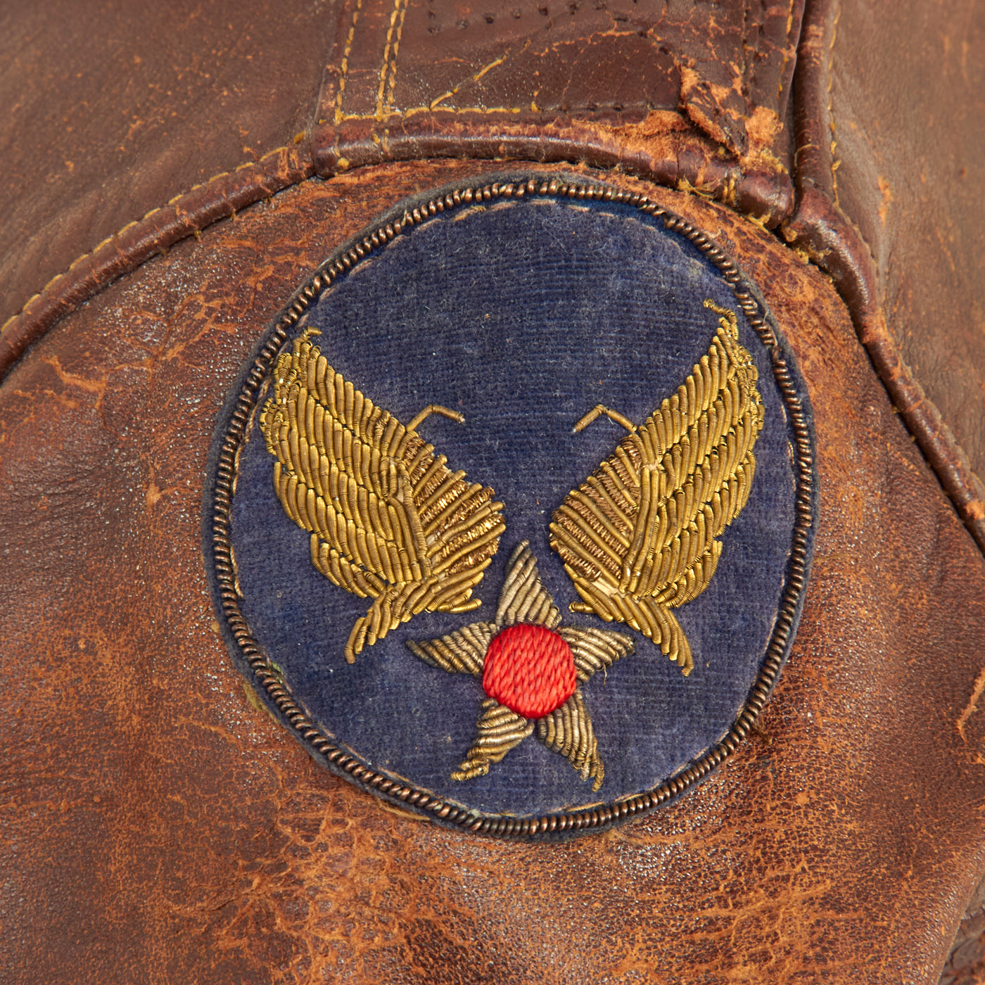The left shoulder features a beautiful British made, felt and bullion US Army Air Forces insignia with the 8th Army Air Forces insignia on the right. The inside rear lining still retains a full manufacturer’s label: