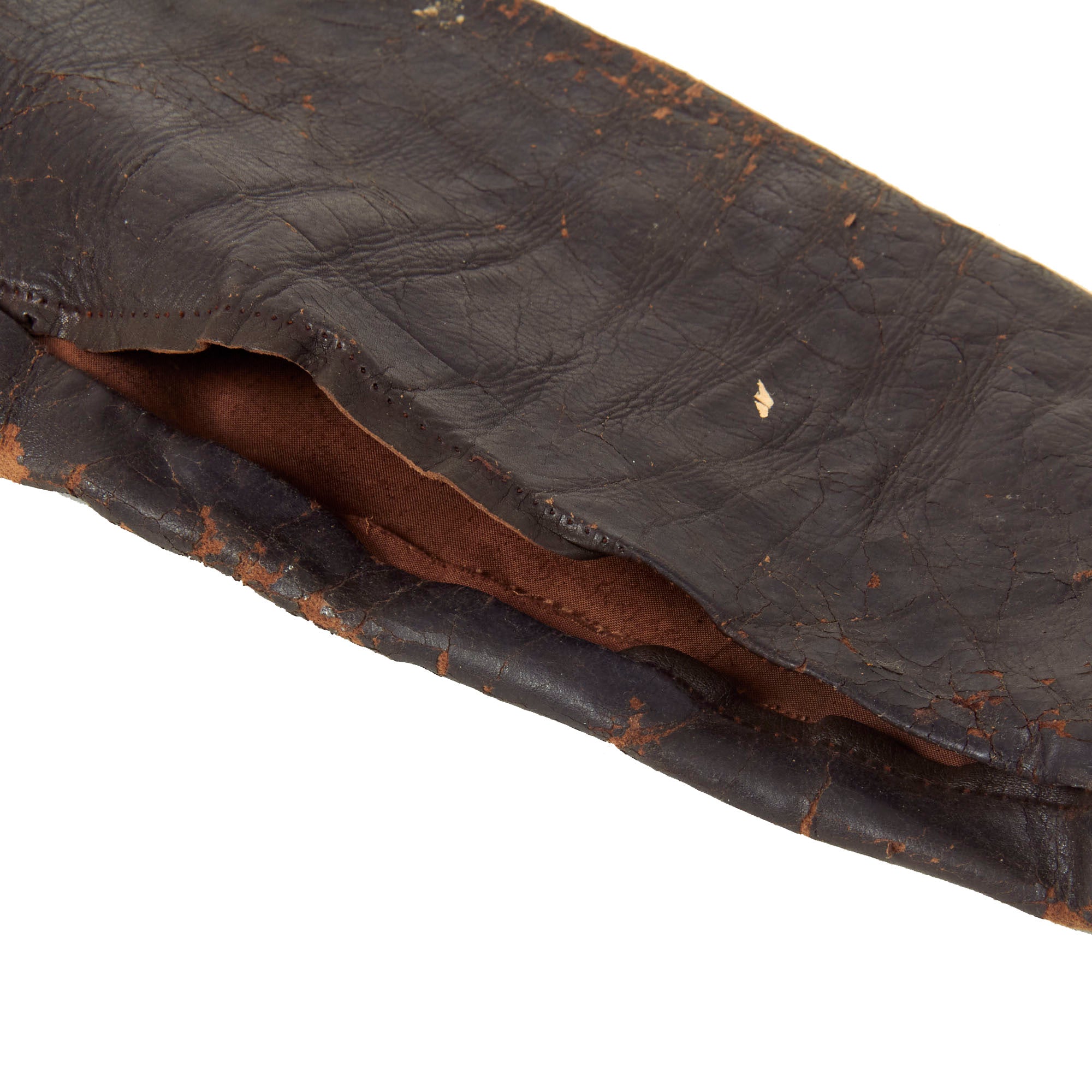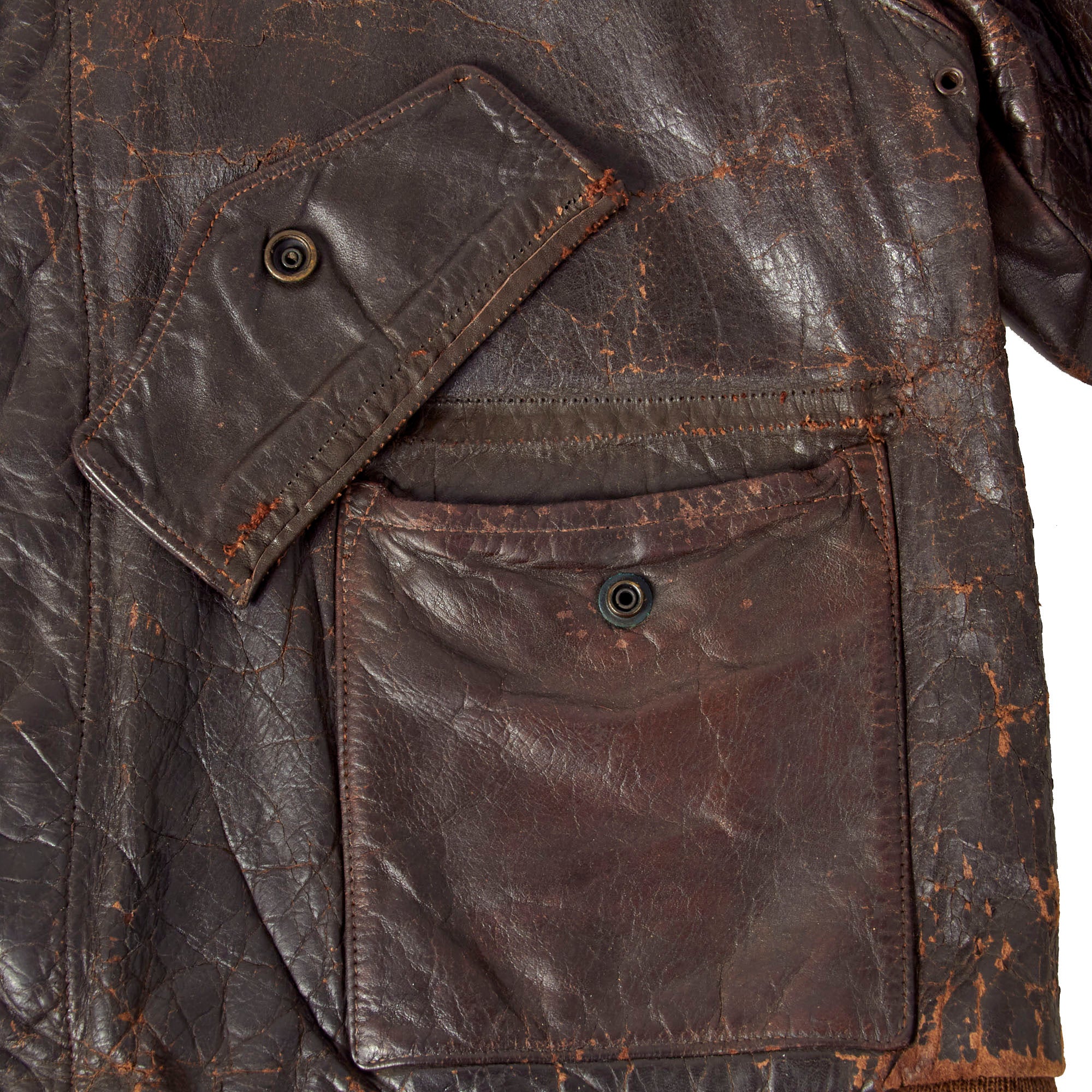 The interior lining does have extensive tearing and stitching loss present, so do handle it with care. The top rear back portion of the liner does not have the original tag. This was a jacket that saw a very long service life and most likely post war usage as well. There is cracking in the leather, holes, extensive stitching loss and more.