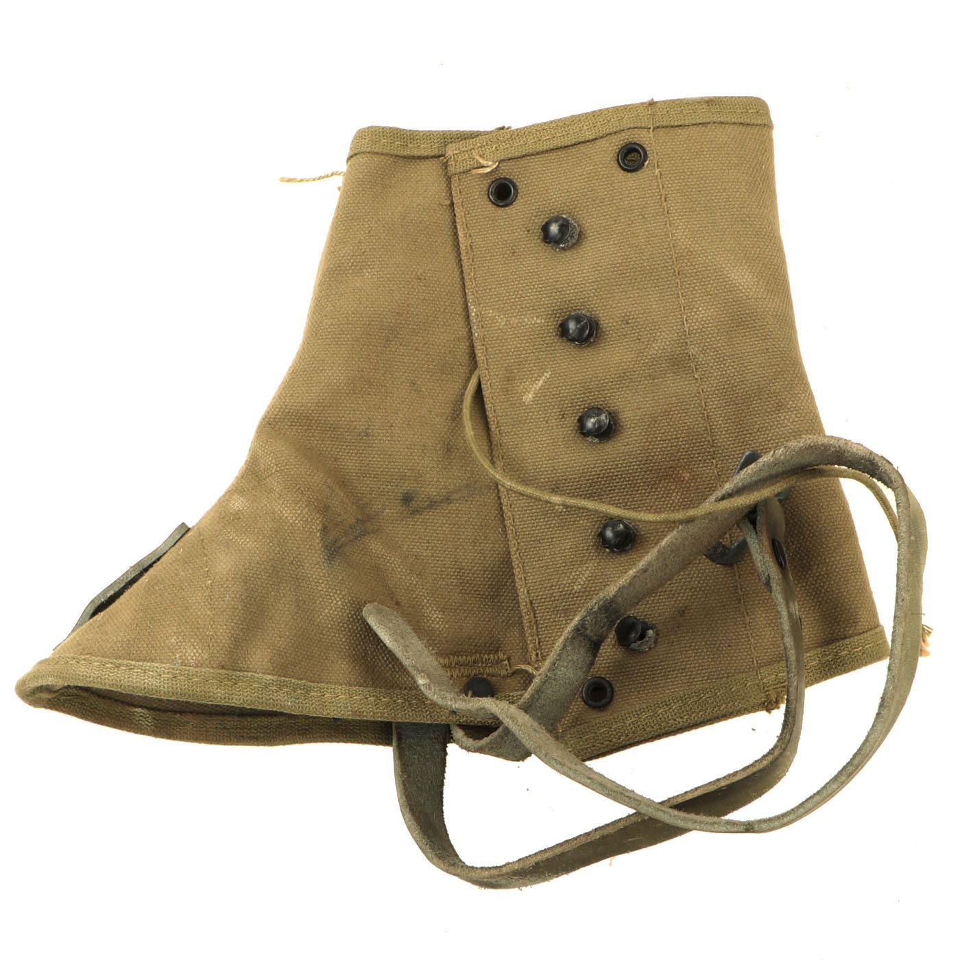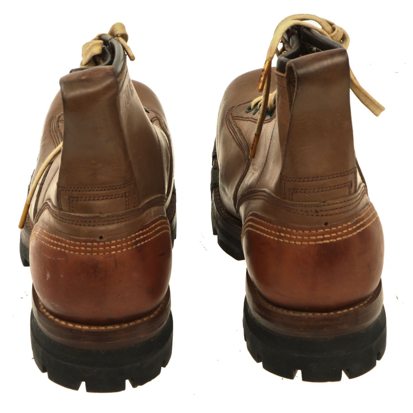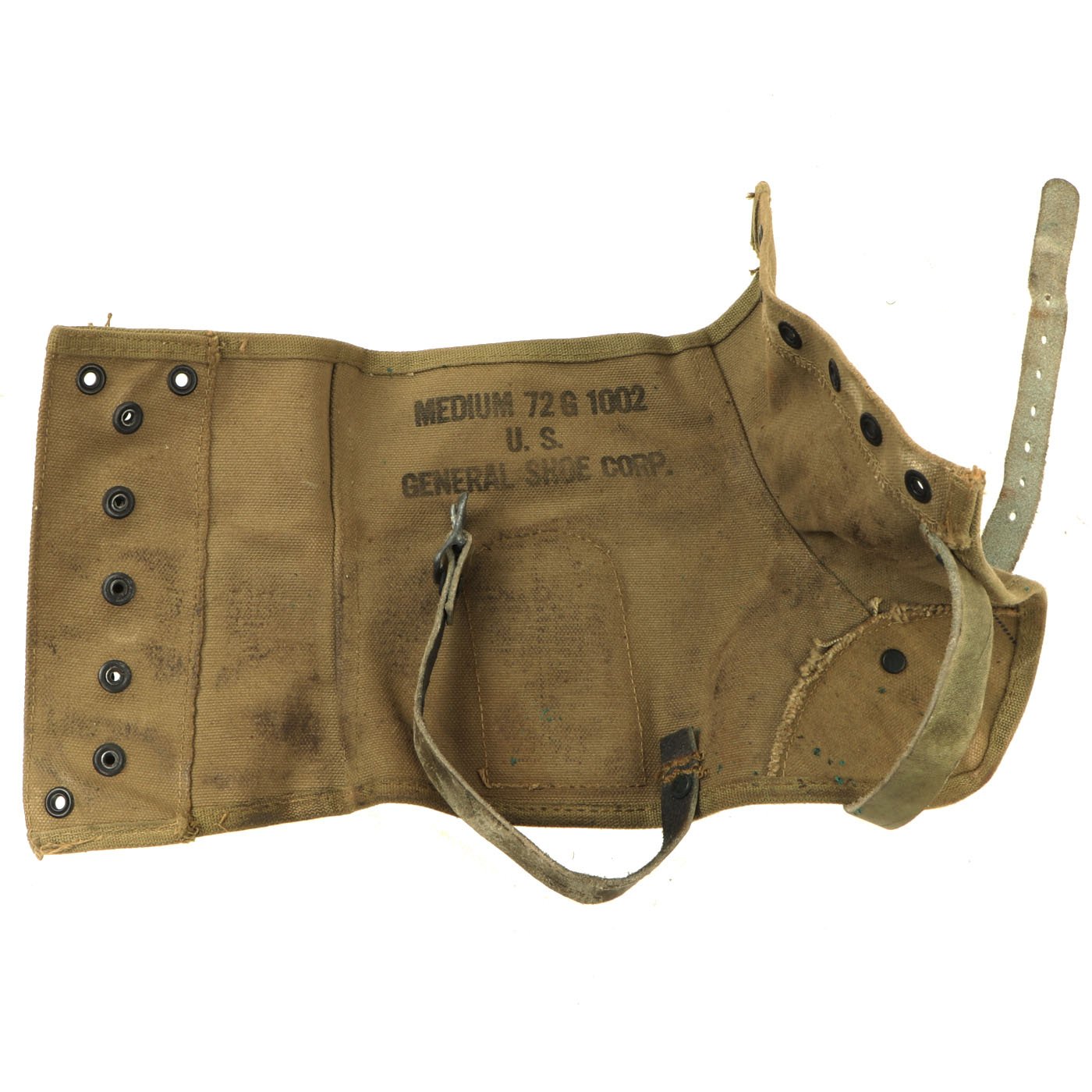 Original Item: Only One Pair Available. This is an excellent condition, nearly unissued matched pair of 1943 dated Army Ski-Mountain Boots in size 7 1/2 D, as marked on the inside and top exterior. The come complete with a matched set of OD Green Canvas Gaiters, used to increase protection and insulation of the boots.