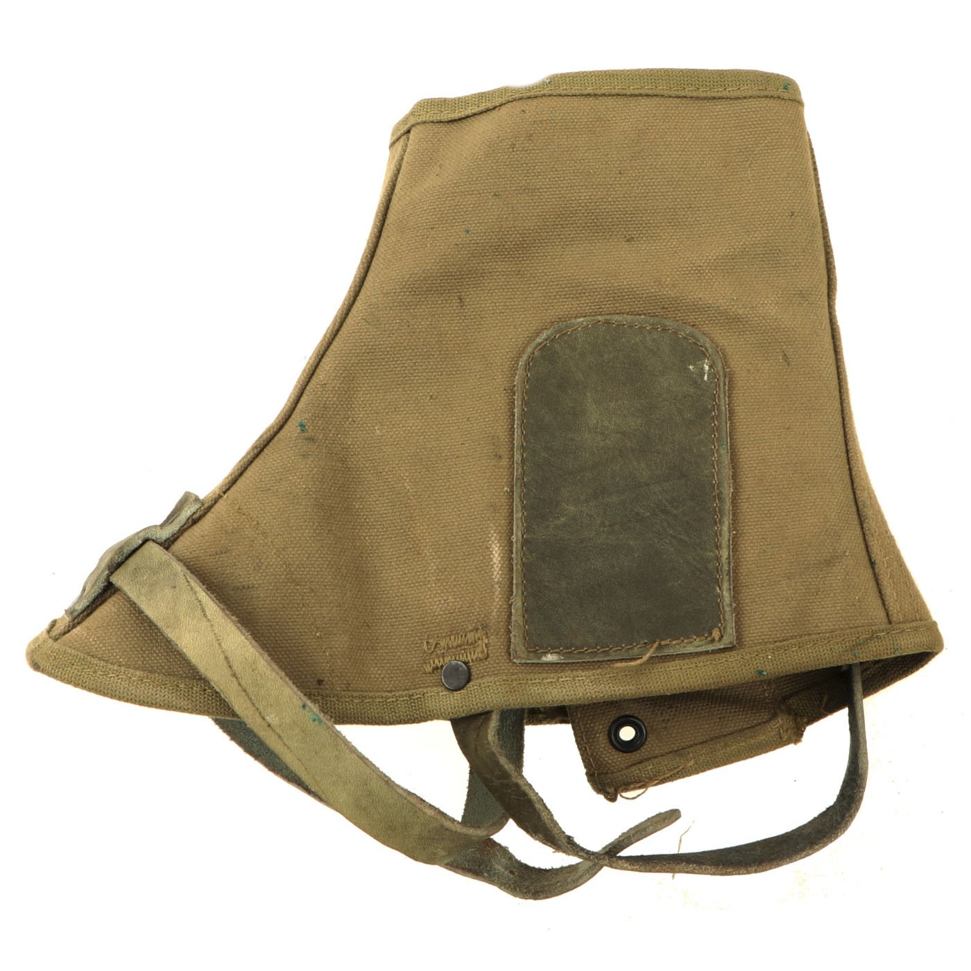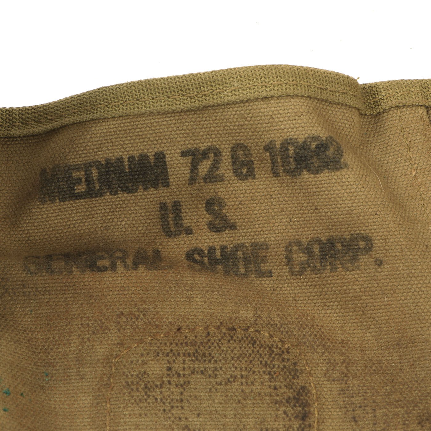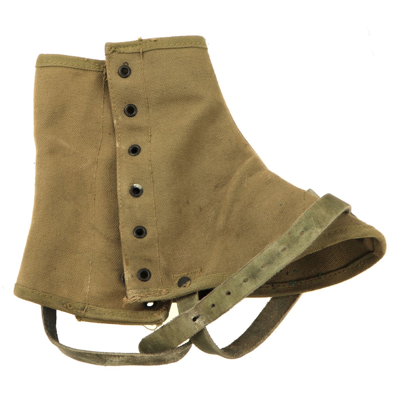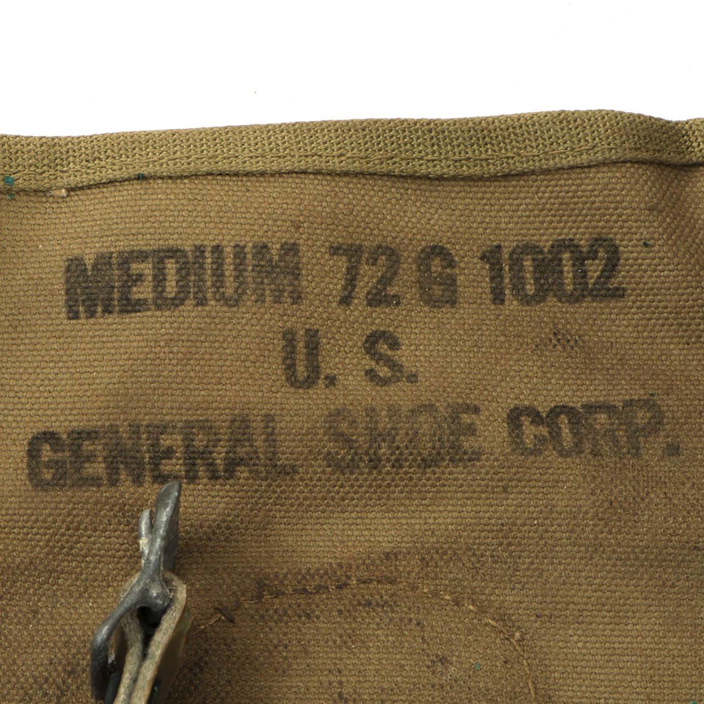 Original Item: Only One Pair Available. This is an excellent condition, nearly unissued matched pair of 1943 dated Army Ski-Mountain Boots in size 7 1/2 D, as marked on the inside and top exterior. The come complete with a matched set of OD Green Canvas Gaiters, used to increase protection and insulation of the boots.