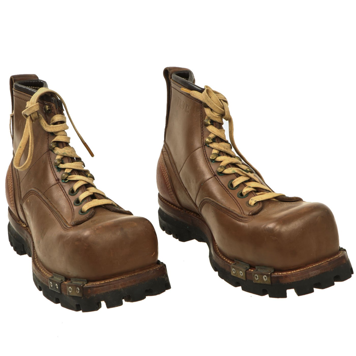 Officially known as "Boot, Ski-Mountain with Rubber Cleated Sole" by the Quartermaster Depot, these were the last of approximately 6 different versions of these boots issued during WWII. Over the course of two years the U.S. Army ski and mountain boot evolved from a cloned civilian ski boot unsuitable for military use to a multipurpose boot that could be used for skiing, climbing, and hiking. Some of the changes were very minor, so there were more correctly 4 versions, the last of which had two variations. The only difference between this type and it's predecessor is the presence of the size marking on the exterior.