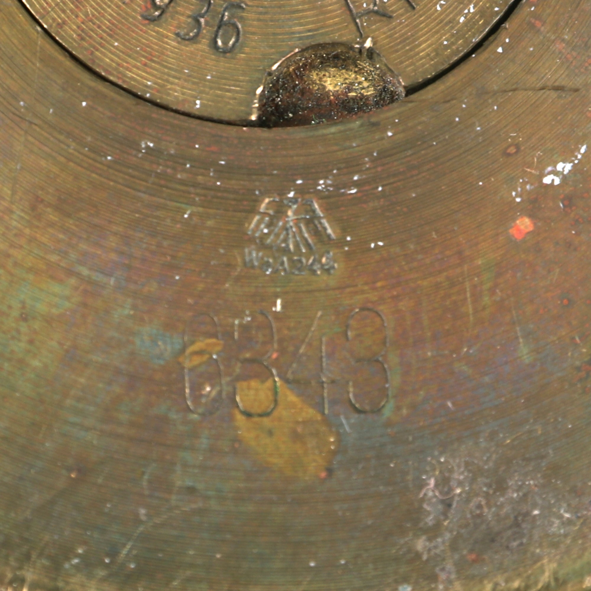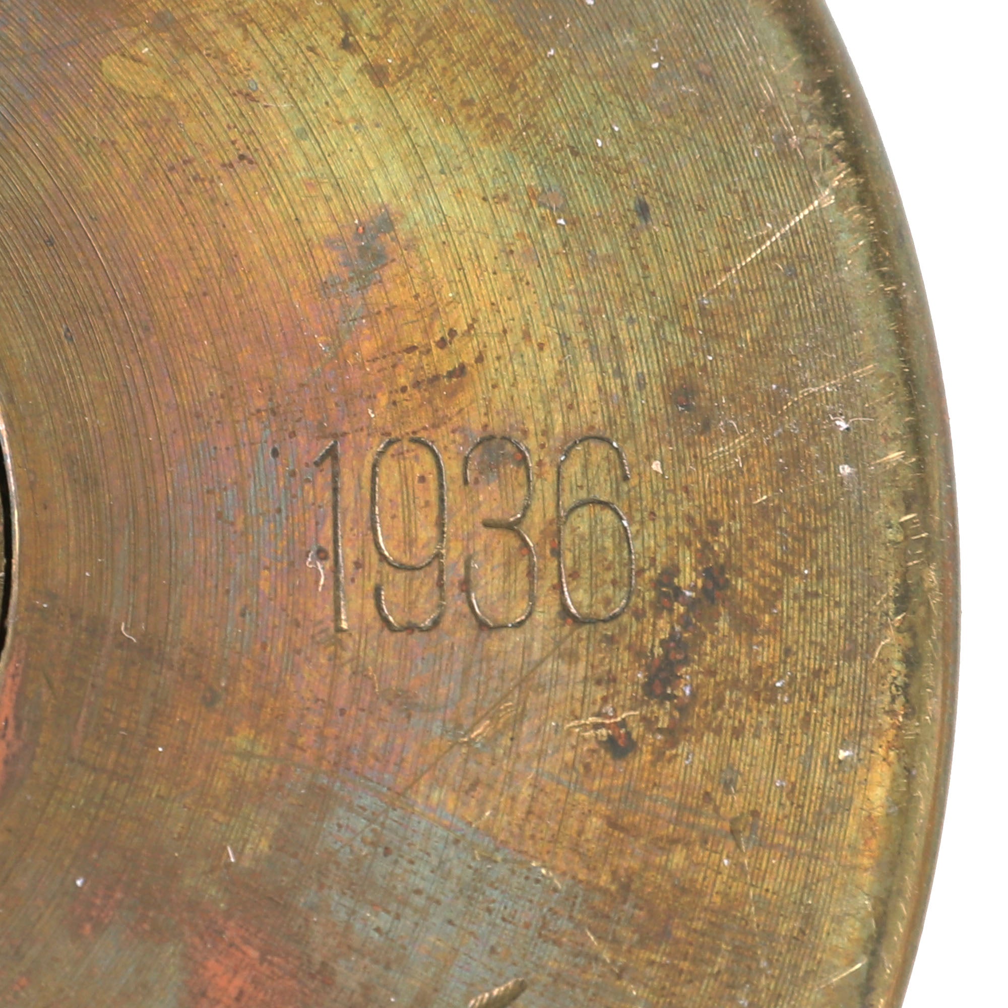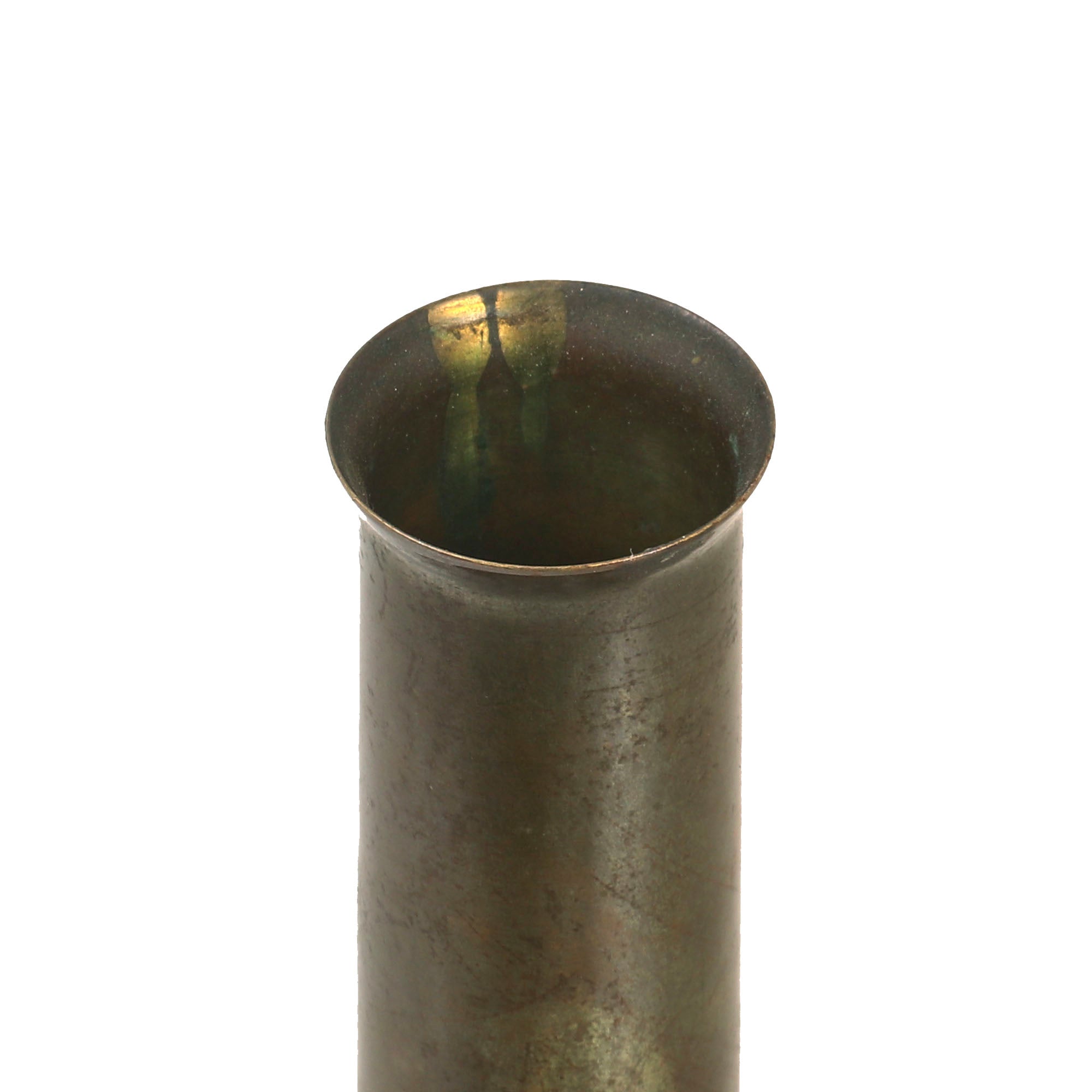 This is a great pair of candlesticks made from captured German artillery shells, both dated 1936. They measure 5” tall with a 3⅝” base diameter. They retain their patina and display gorgeously.