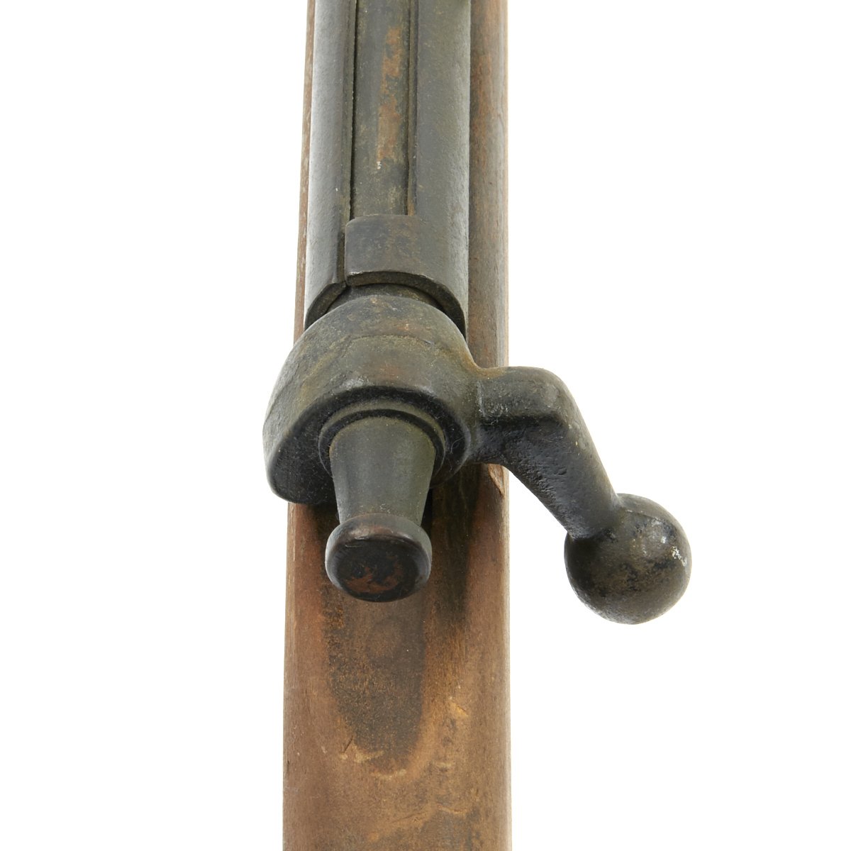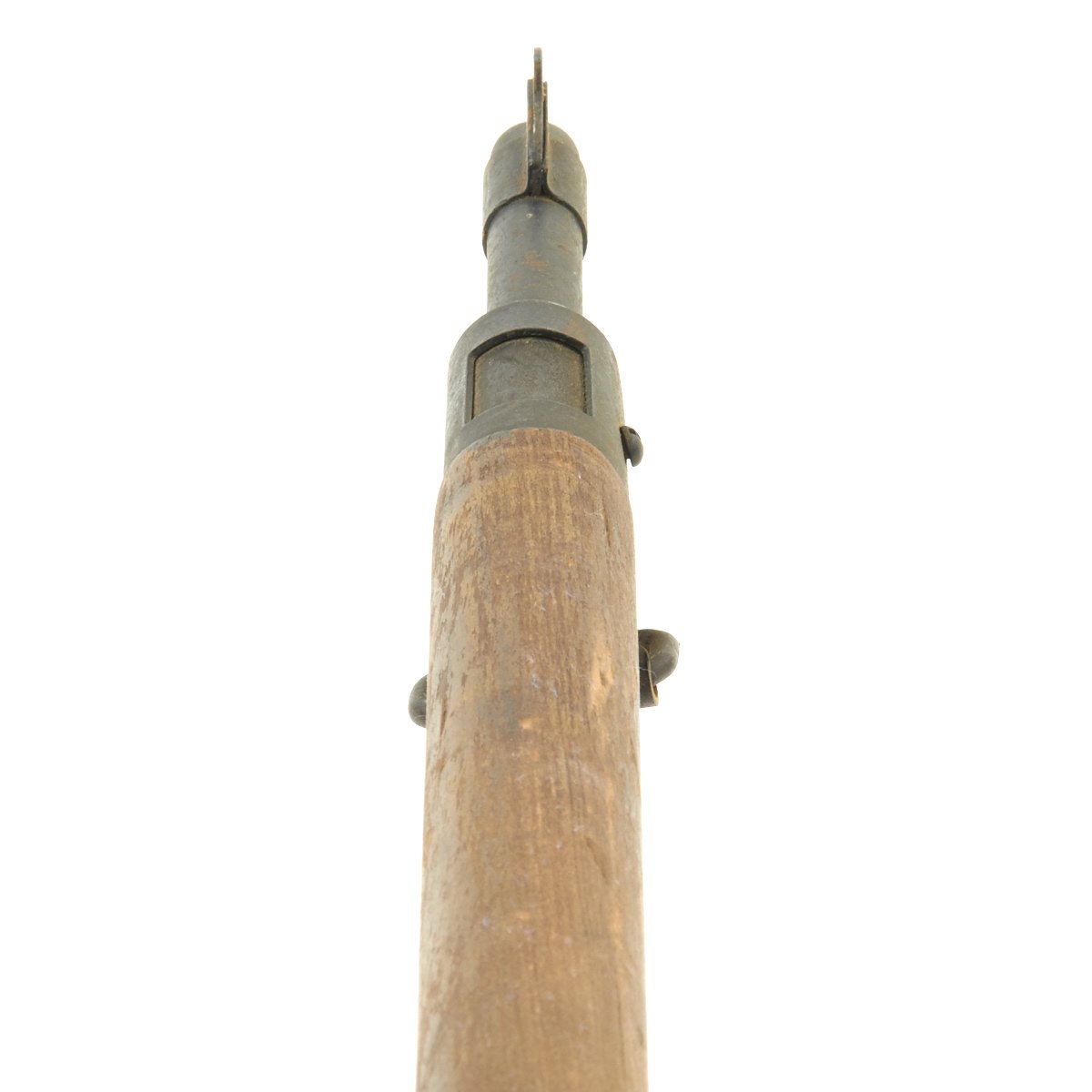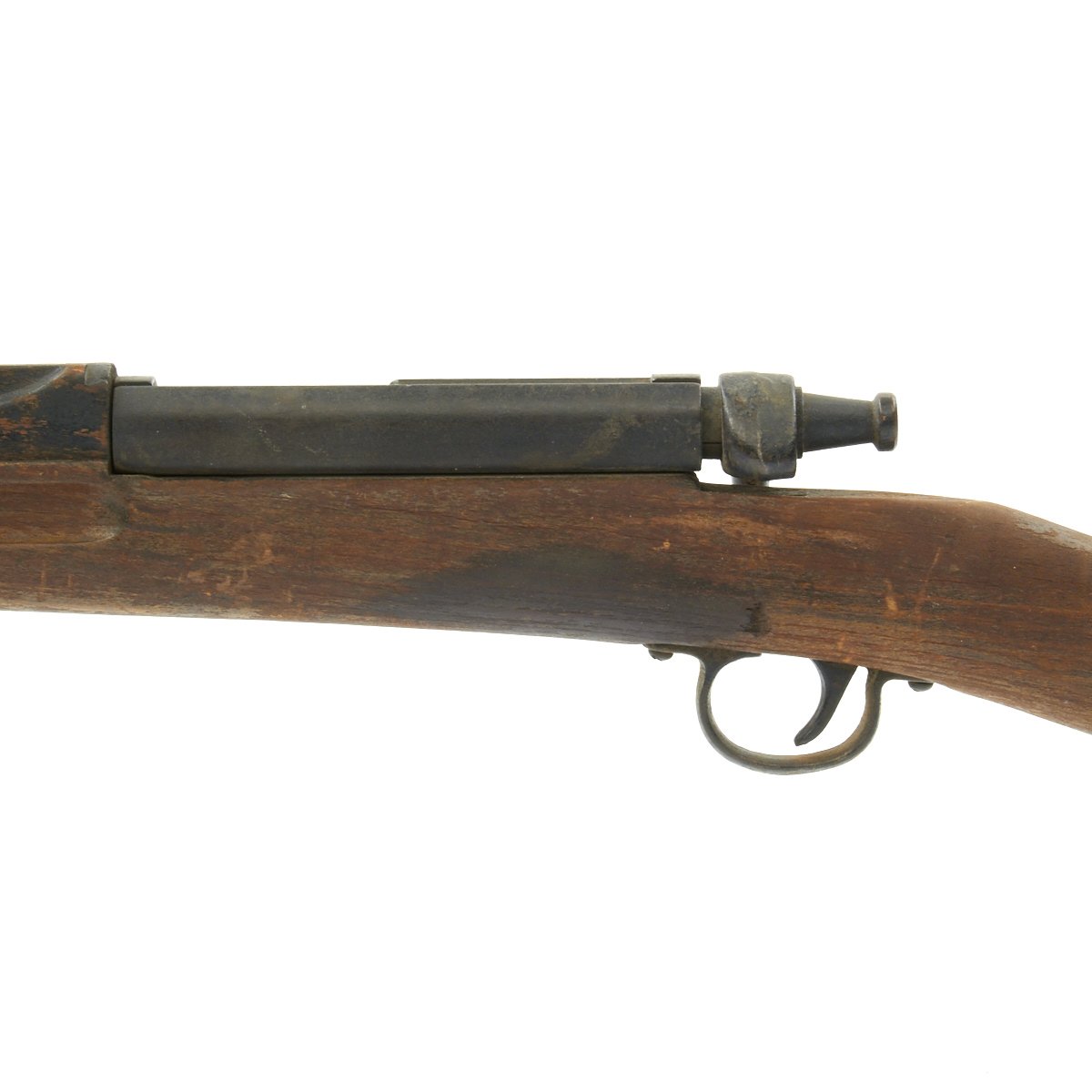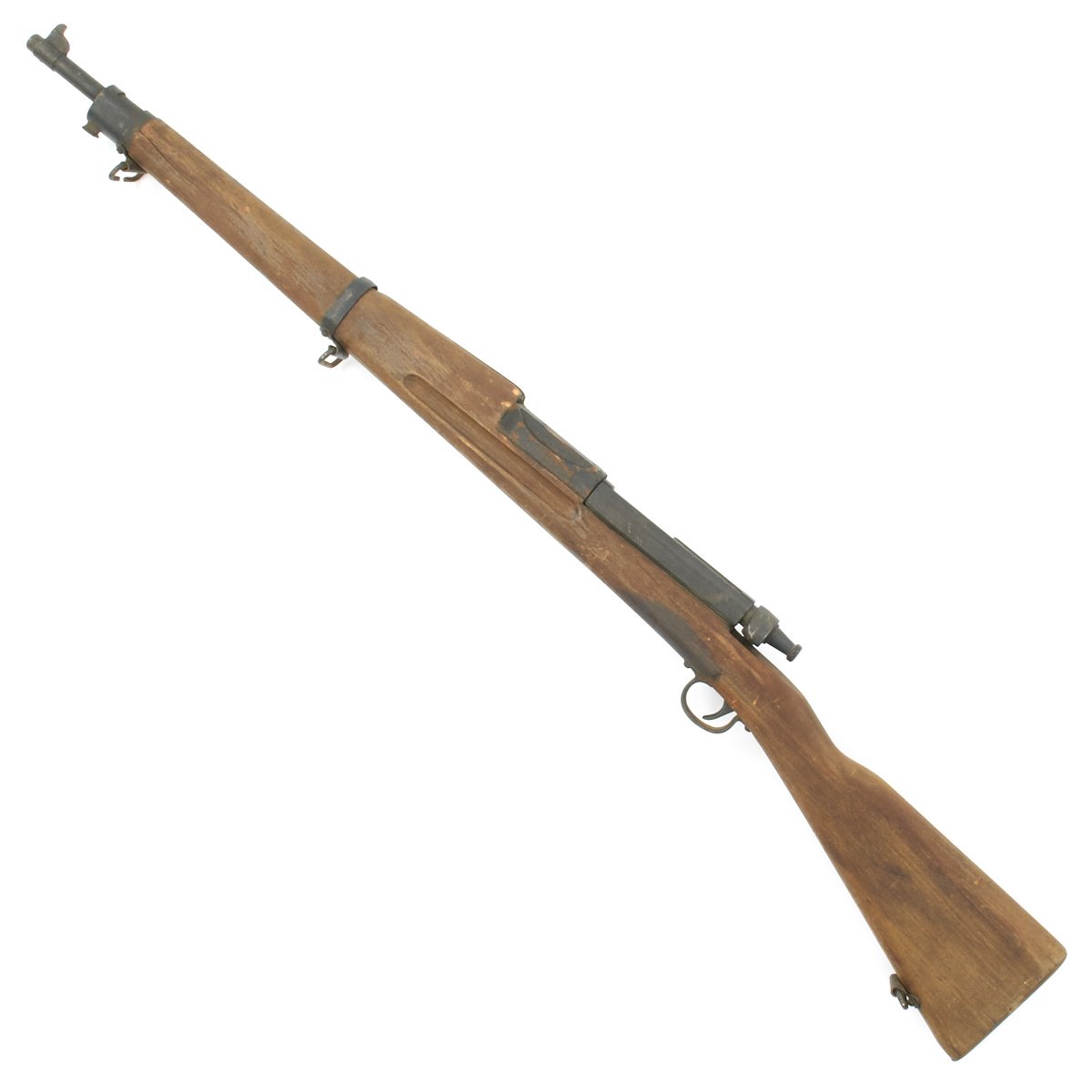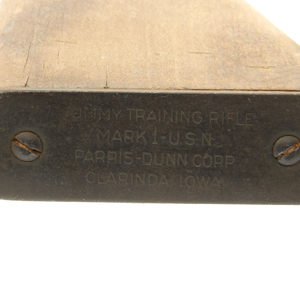 Original Item: Only One Available. This is a very nice example of WWII production Paris-Dunn Corp U.S. Navy drill rifle. The wood stock is in very good condition, the replica bolt cycles correctly, and the trigger dry fires. This example has both sling swivels and the stacking swivel intact. The only missing piece is the rear sight, probably removed to repair another drill rifle, or to use on a functional weapon, as they did in fact work. Still, it makes a great display and historical piece.