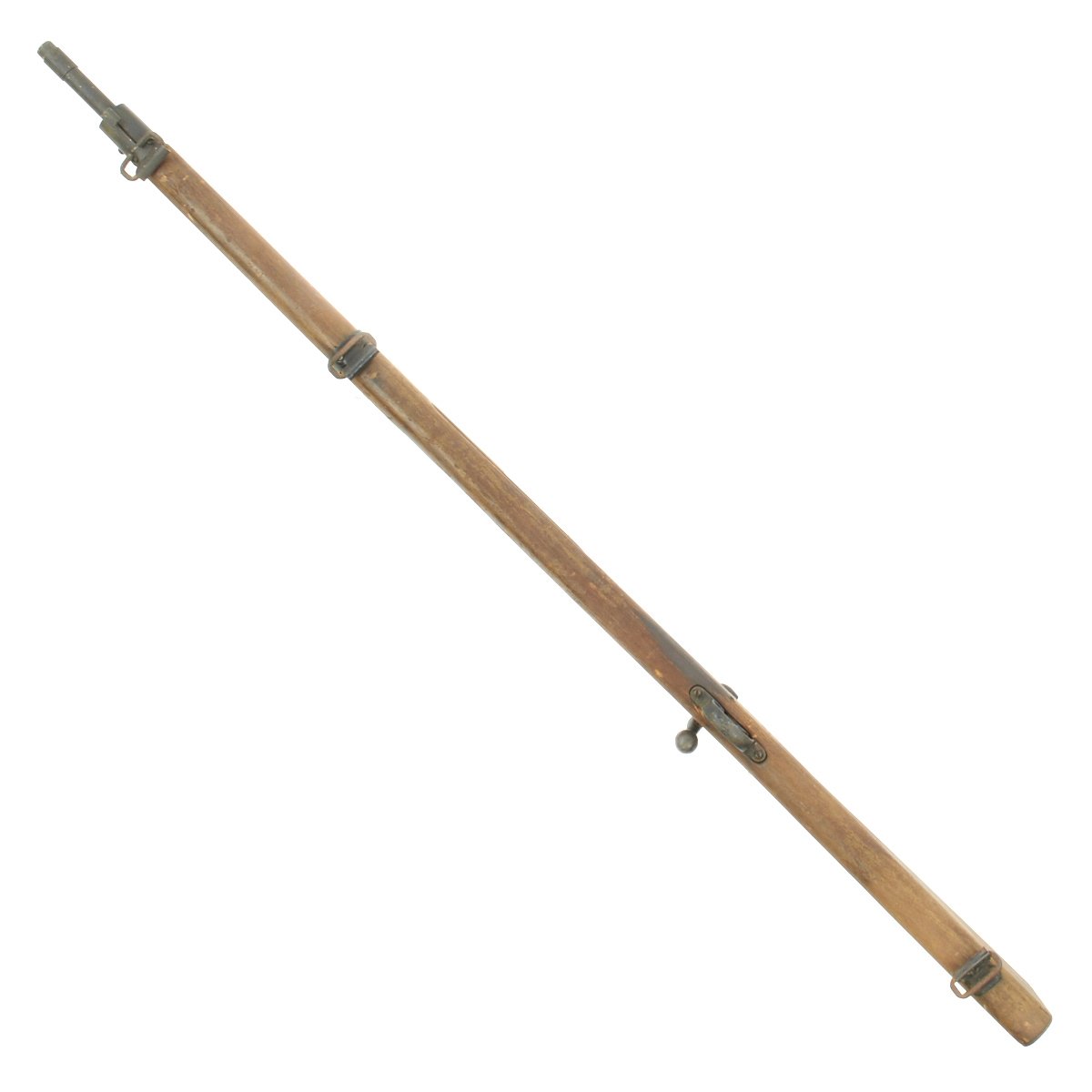 All of the Navy contract training rifles were supplied with a plastic bayonet and scabbard. One of the changes specified prior to the start of the first Navy contract was to attach a bayonet lug on the forward band. This probably indicates that no bayonet lug was planned on the Army model. However, there known specimens of the Army model that have a bayonet lug. This may have something to do with the Army and Navy production overlapping and that it was more economical to use one style of front band. Early in WWII there was a critical shortage of steel. As little steel as possible was used in the manufacture of the training rifles and plastic was substituted for the blade of the bayonet. The bayonet was designed to fit the training rifle and they would not fit on any of the standard U.S. military arms. Pro-phy-lac-tic Brush Co. and Beckwith Manufacturing Co. each had military contracts to supply the plastic bayonets. Victory Plastics had a contract to produce scabbards for the bayonet. All of the bayonets are marked U.S.N Mk. I. on one face near the hilt and on the other side either B.M. or P.B.C. The scabbards are also marked U.S.N. Mk.I. The contract price of the bayonet varied but it ranged from $1.50 and $1.70 and the price of the scabbard was $0.75.