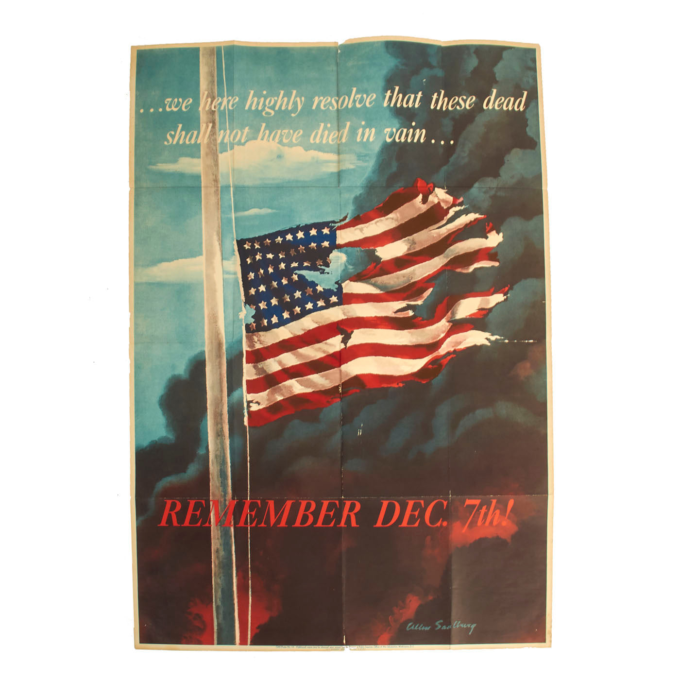 This was definitely a poster that was not misunderstood by the people who viewed it. This poster features artwork by Allen Saalberg for the Office of War Information in January 1942. One of the first propaganda posters to be issued after the start of the war, it was commonly seen in factories and military bases around the United States. As the war progressed, instead of "Remember December 7th!" the slogan "Remember Pearl Harbor!" became more common in American propaganda.