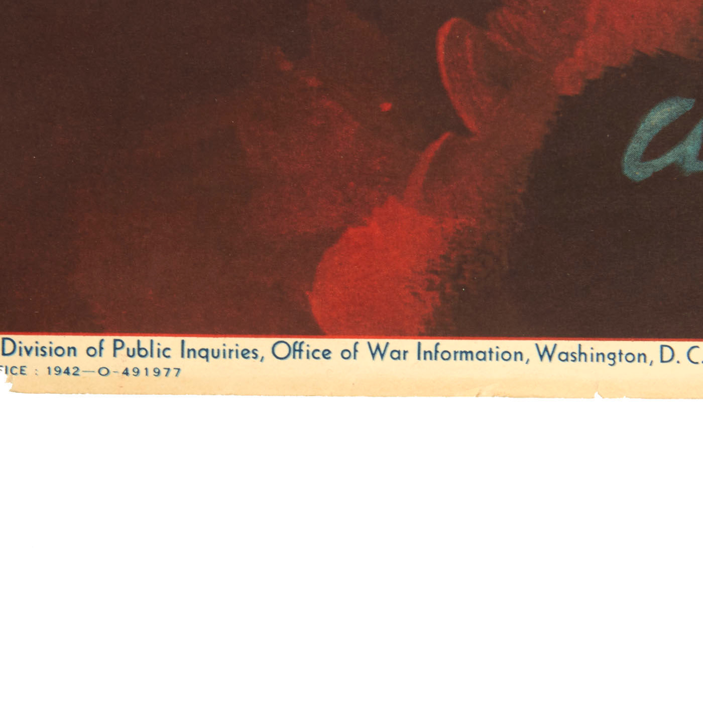 The poster is in lovely condition and is slightly worn on the edges but without extensive damage. The creases present are from the original fold marks made during the distribution process in 1942. There is minor separation and tearing present. Comes ready to be mounted, framed and displayed!