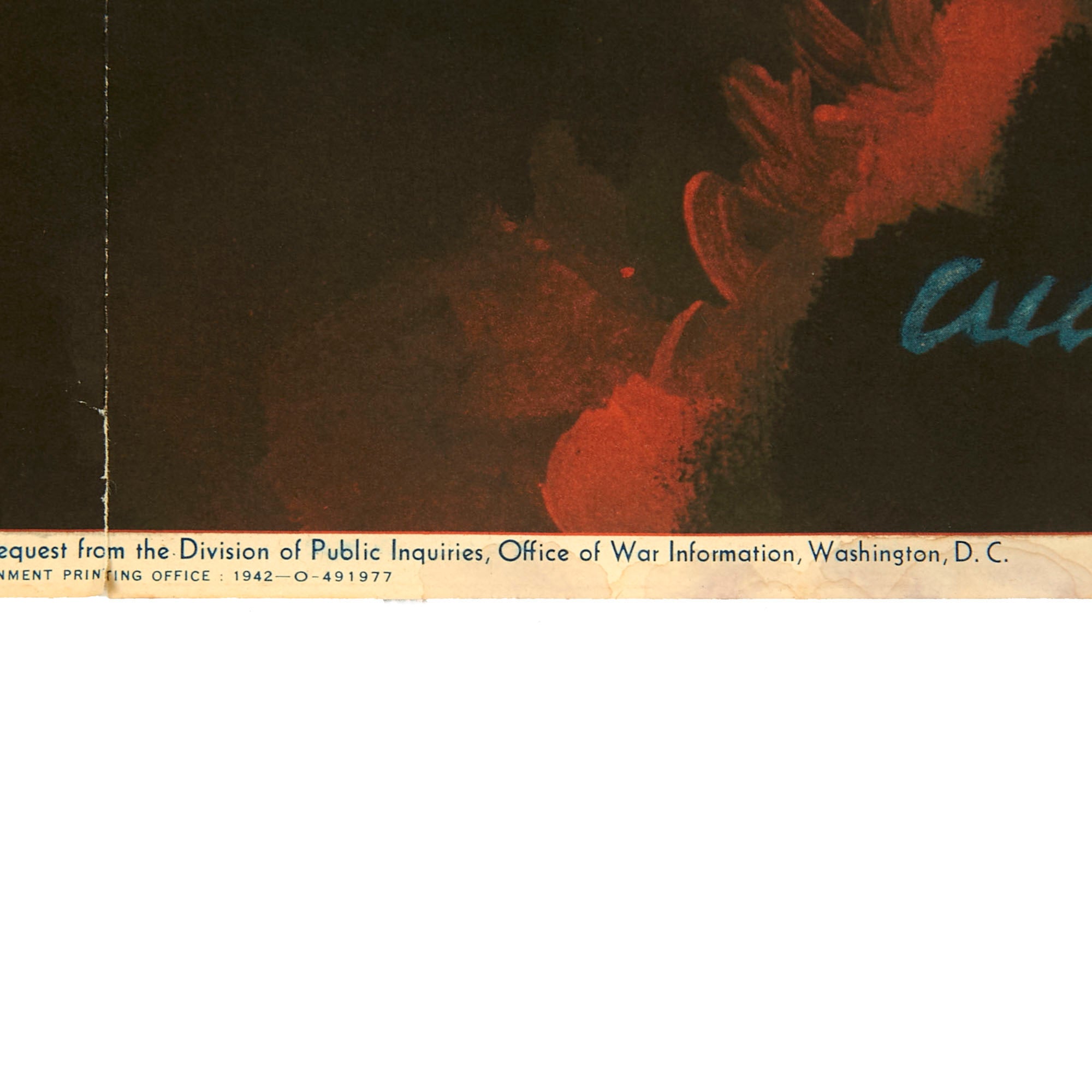 The poster is dated at the bottom OWI Poster No. 14. Additional copies may be obtained upon request from the Division of Public Inquiries, Office of War Information, Washington, D.C. U.S. Government Printing Office: 1942 -O-491977.