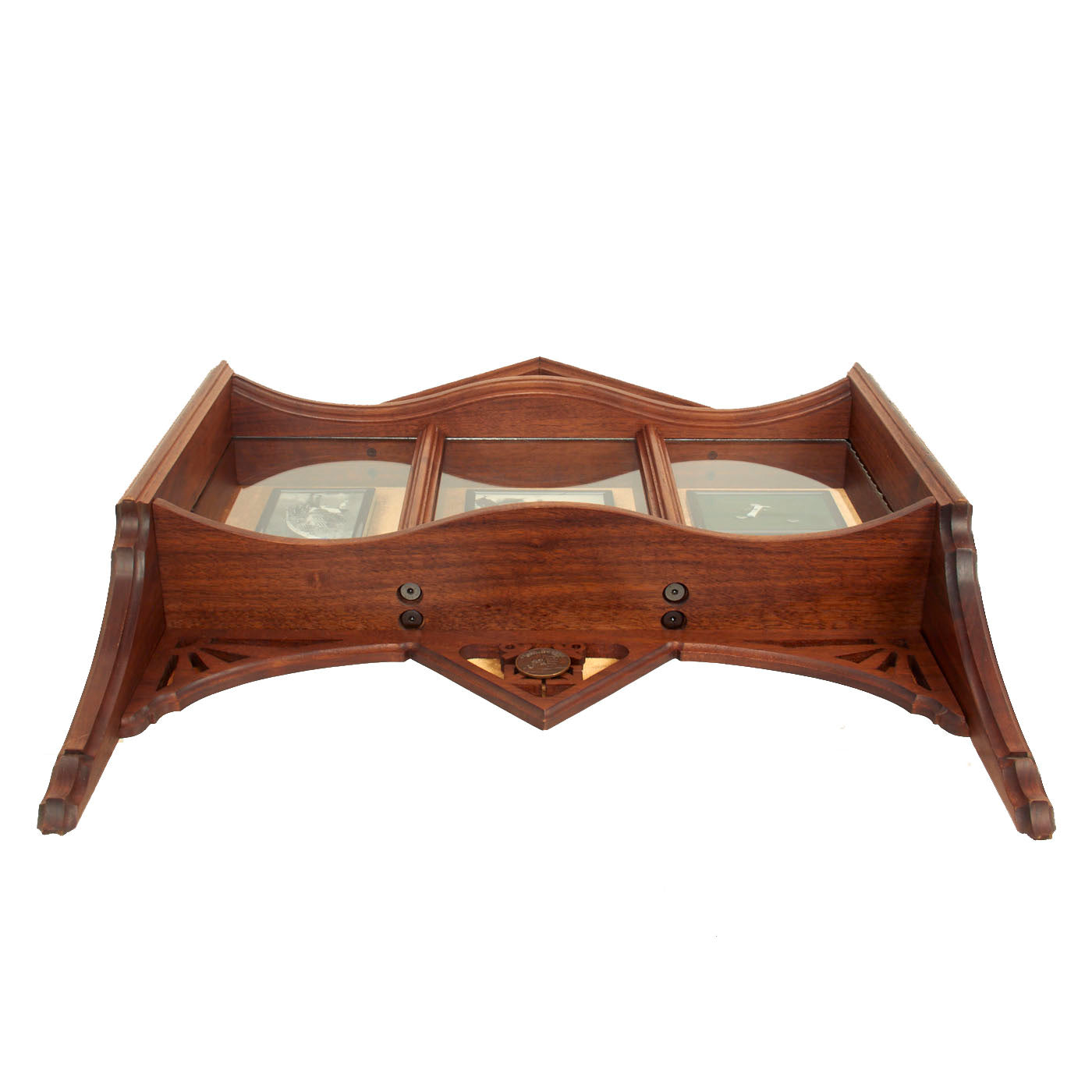 The condition of the case and all the items inside is excellent. This was an item that was displayed proudly and cared for. It measures approximately 24”H x 31”W x 5" and was measured at the widest points.