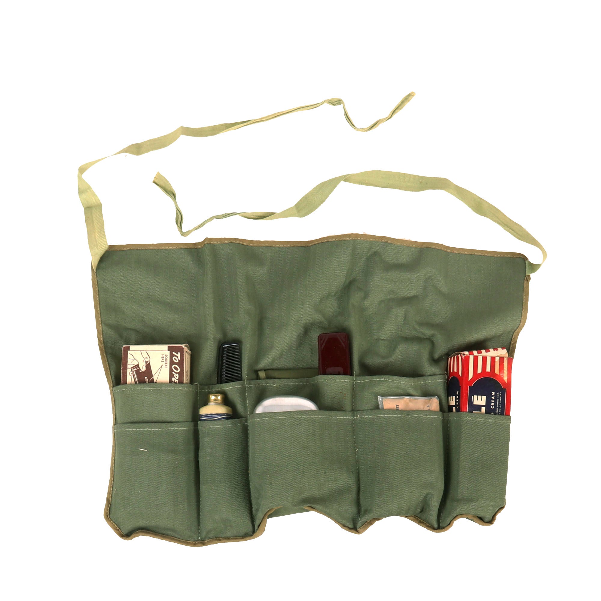 -Soldier’s personal effects rollup carrying bag with tightening straps.