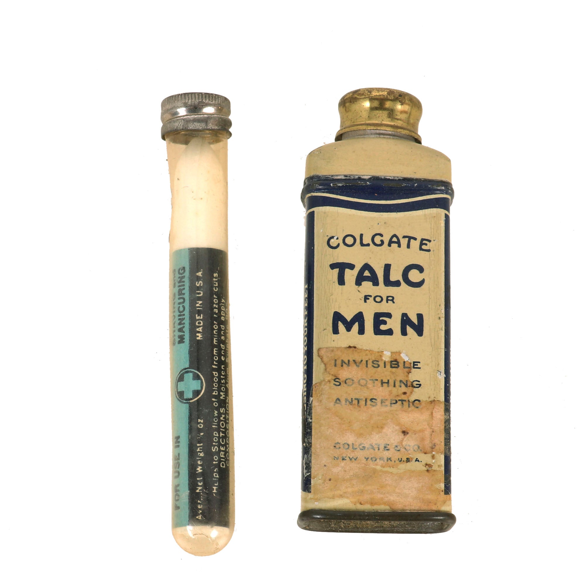 -Colgate Talc for men, antiseptic in a tin. Good shape.